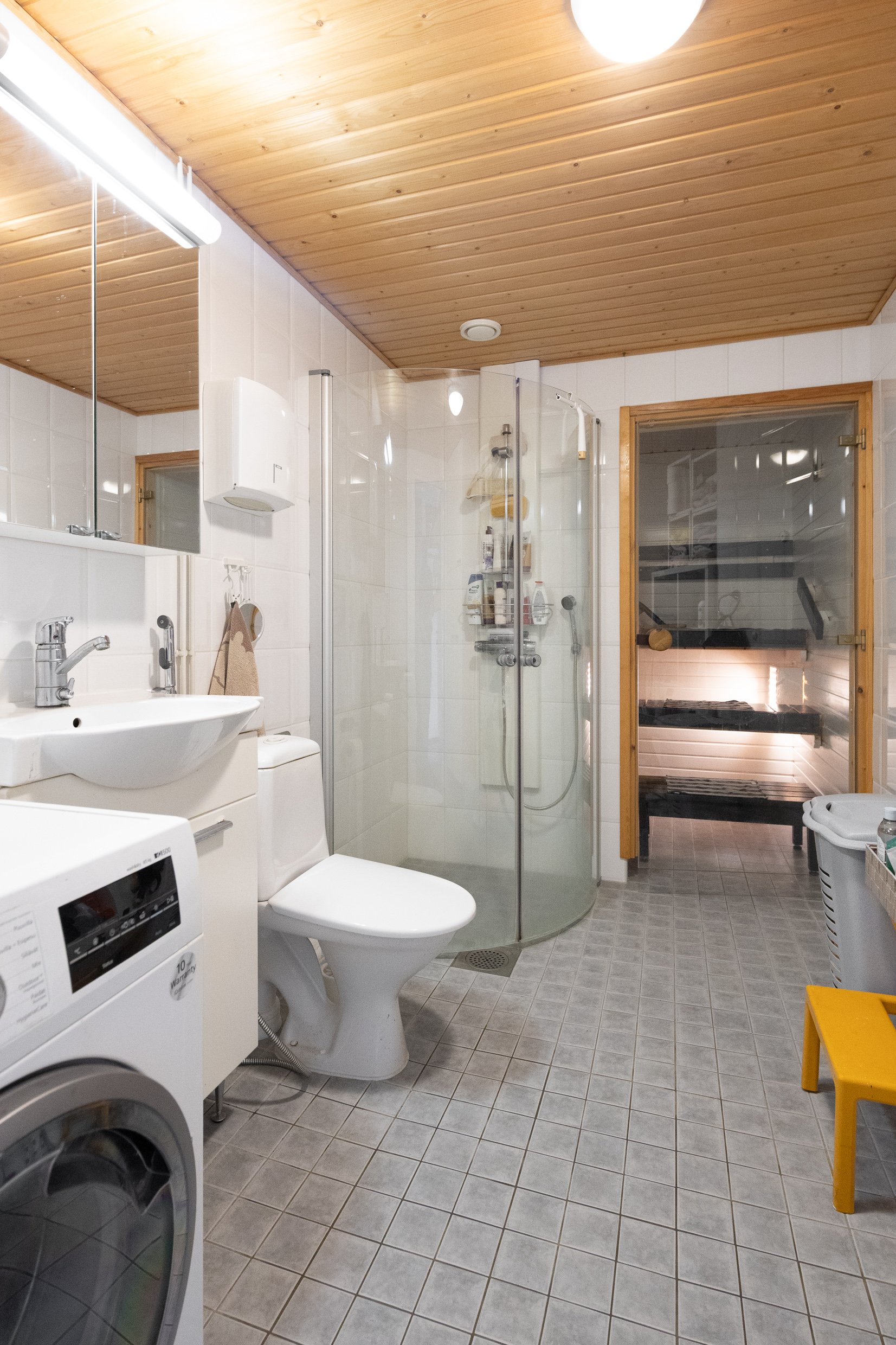 Vinyylilankku, kylpyhuoneessa ja saunassa keraaminen laatta