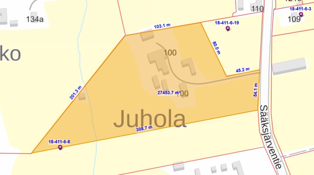 Pihapiiri kuuluu n. 8 ha:n palstaan, jossa on peltoa n. 4 ha ja metsää reilut 3 ha. Pellot on tällä hetkellä vuokrattuina ja niissä kasvatetaan heinää lypsykarjan rehuksi.