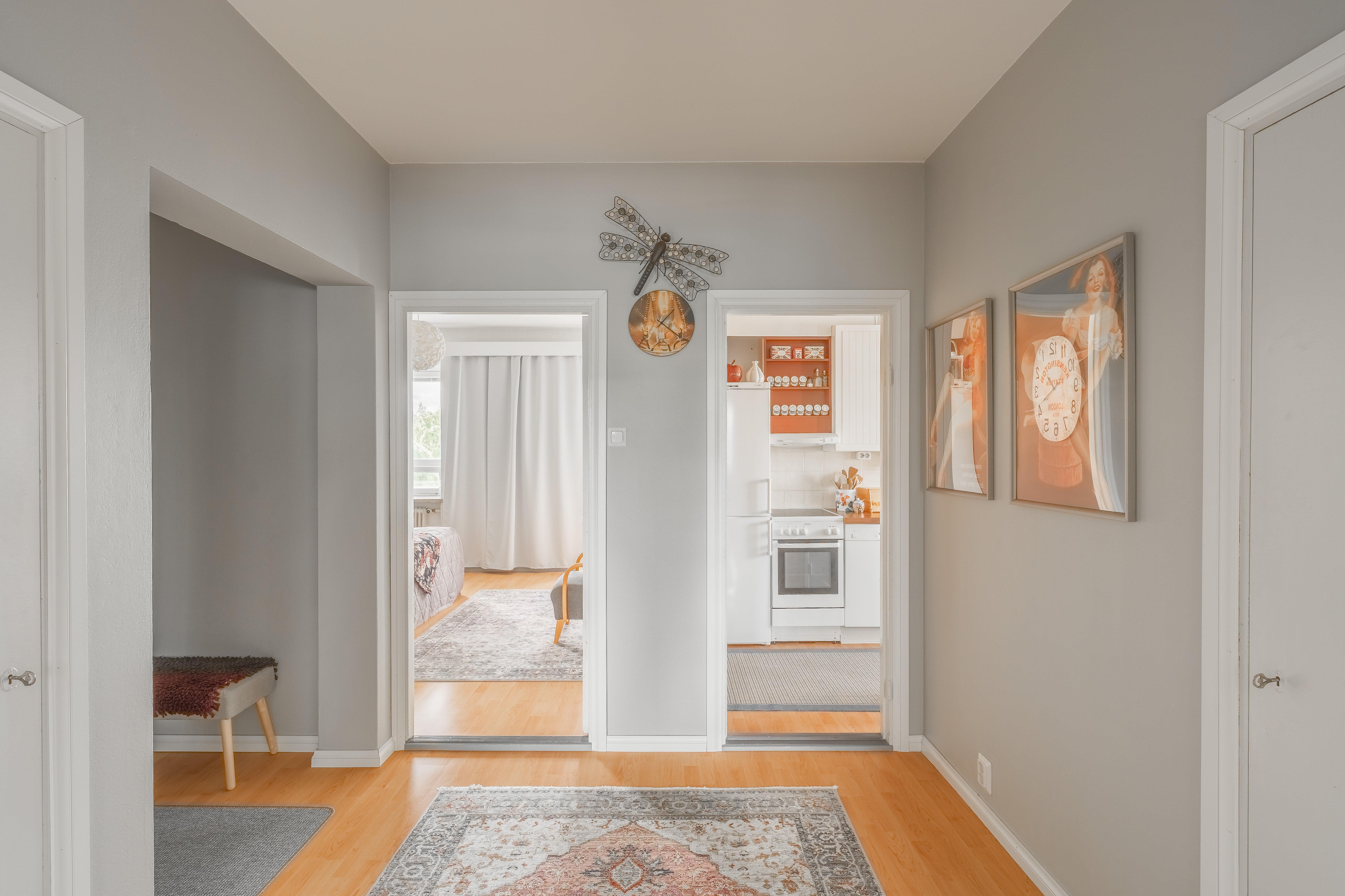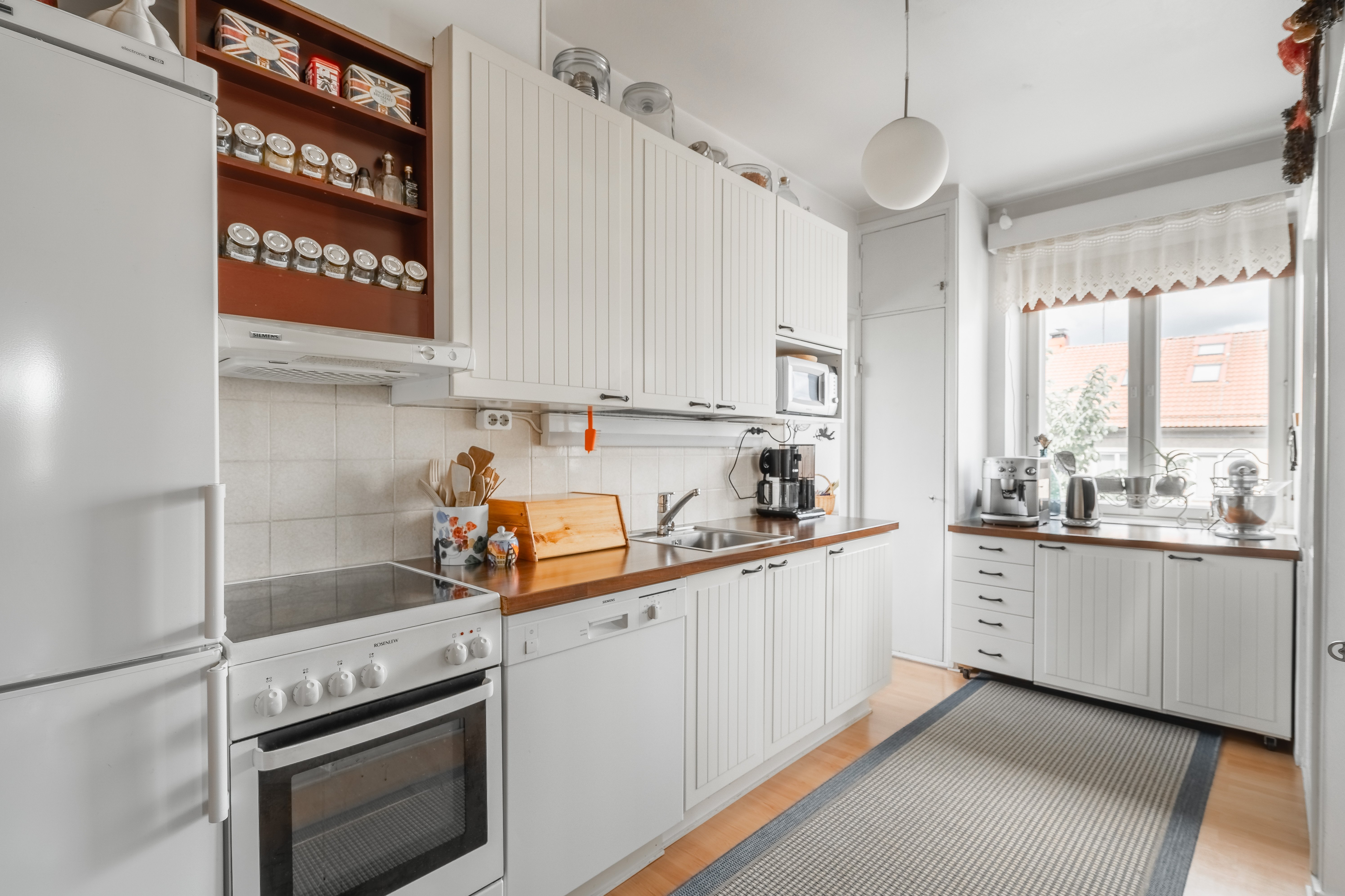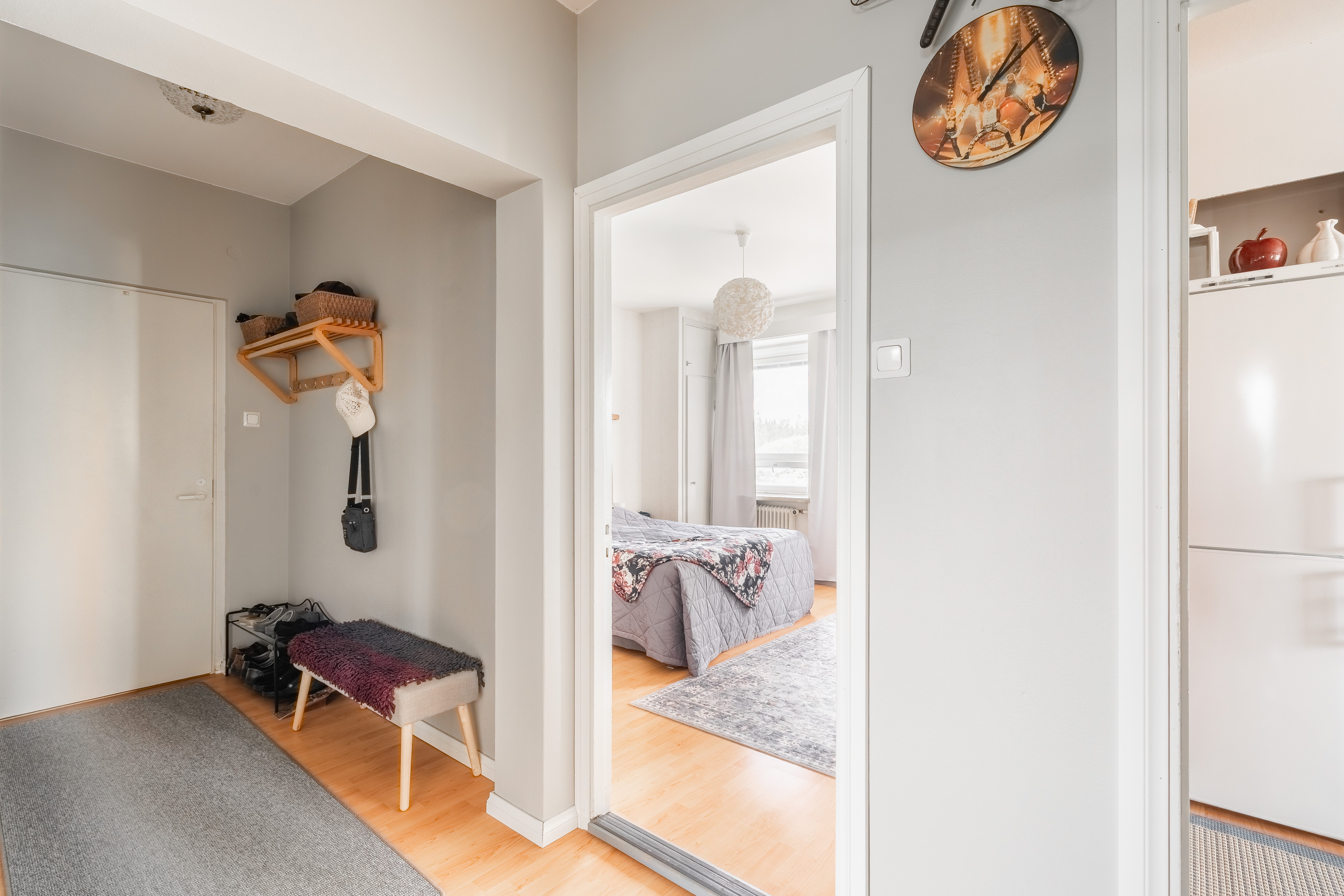 Asunnossa on kolme makuuhuonetta, joten tilaa riittää suuremmallekin perheelle tai esimerkiksi työhuoneelle. Olohuone ja ruokailutila muodostavat viihtyisän kokonaisuuden, jossa on helppo viettää aikaa perheen ja ystävien kanssa. Keittiö on varusteltu nykyaikaisilla laitteilla, kuten astianpesukoneella ja keraamisella liedellä, mikä tekee arjesta sujuvaa.
