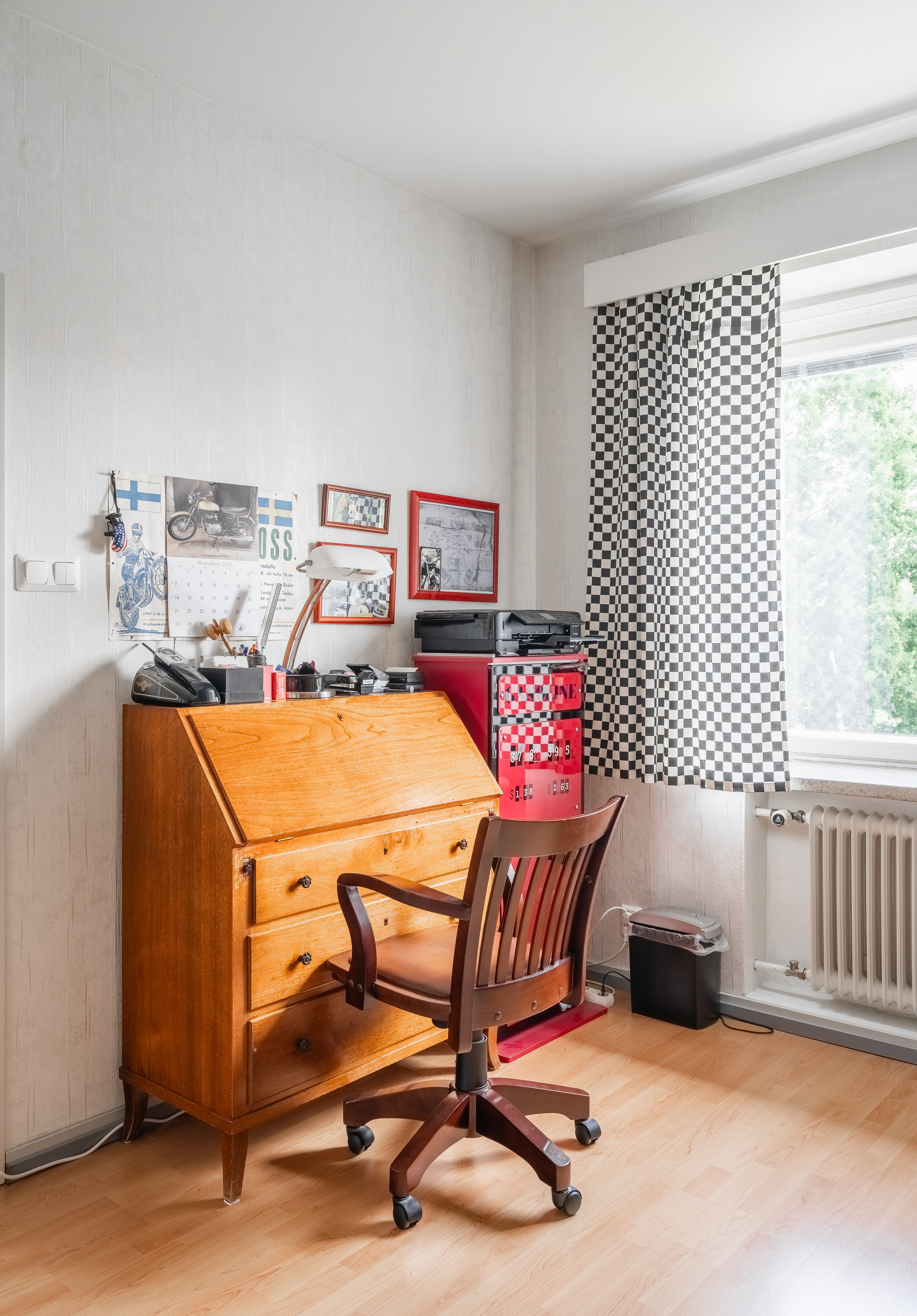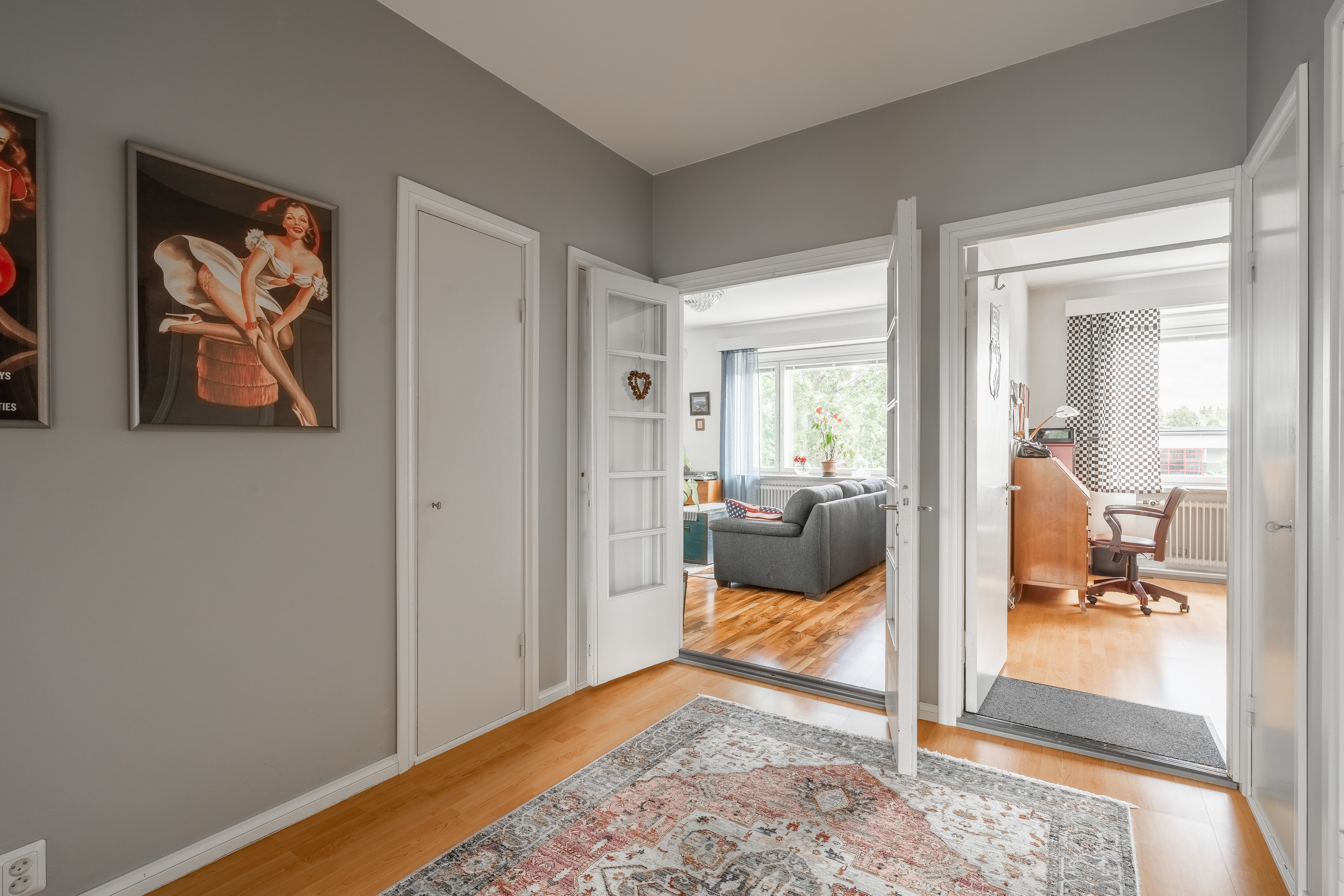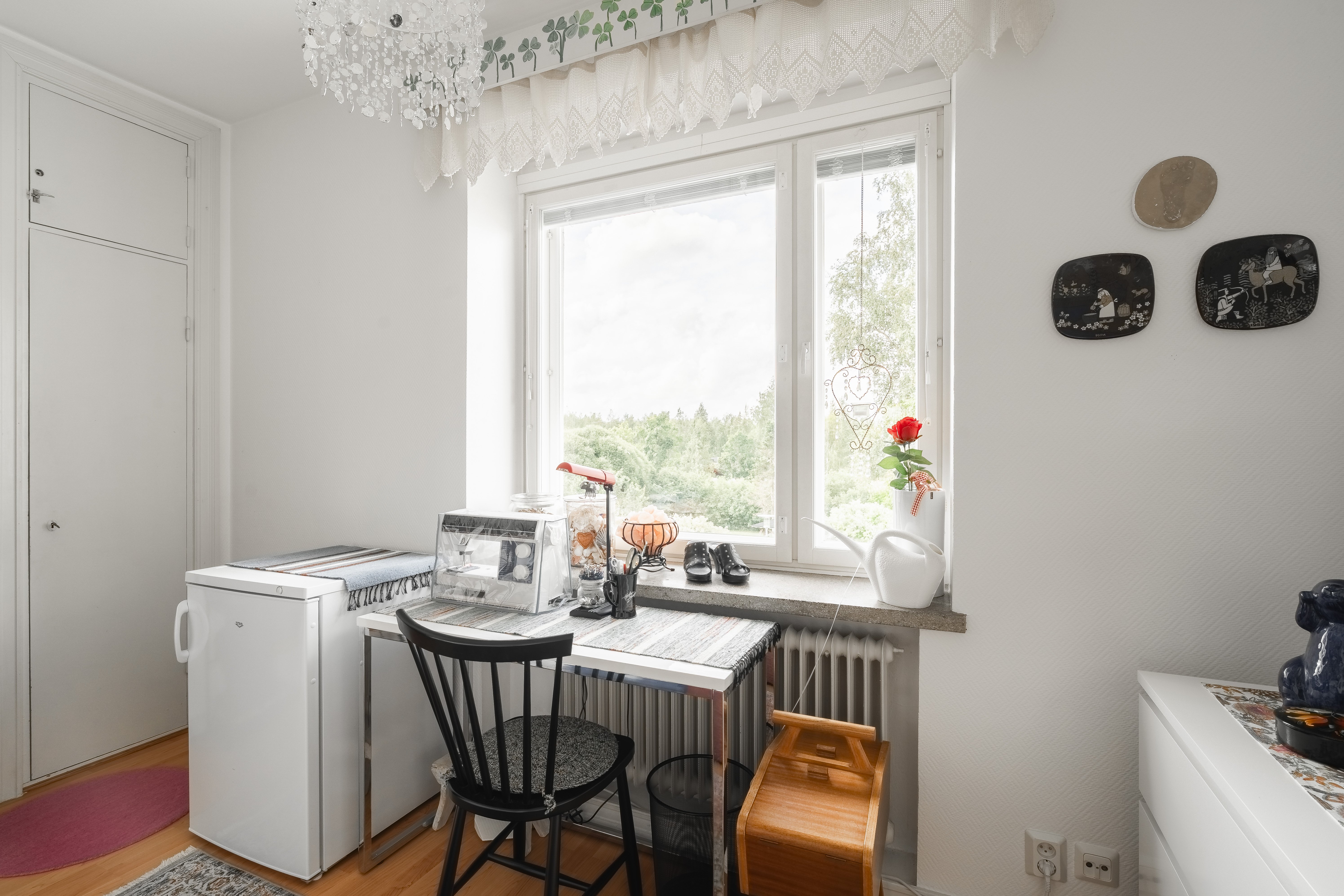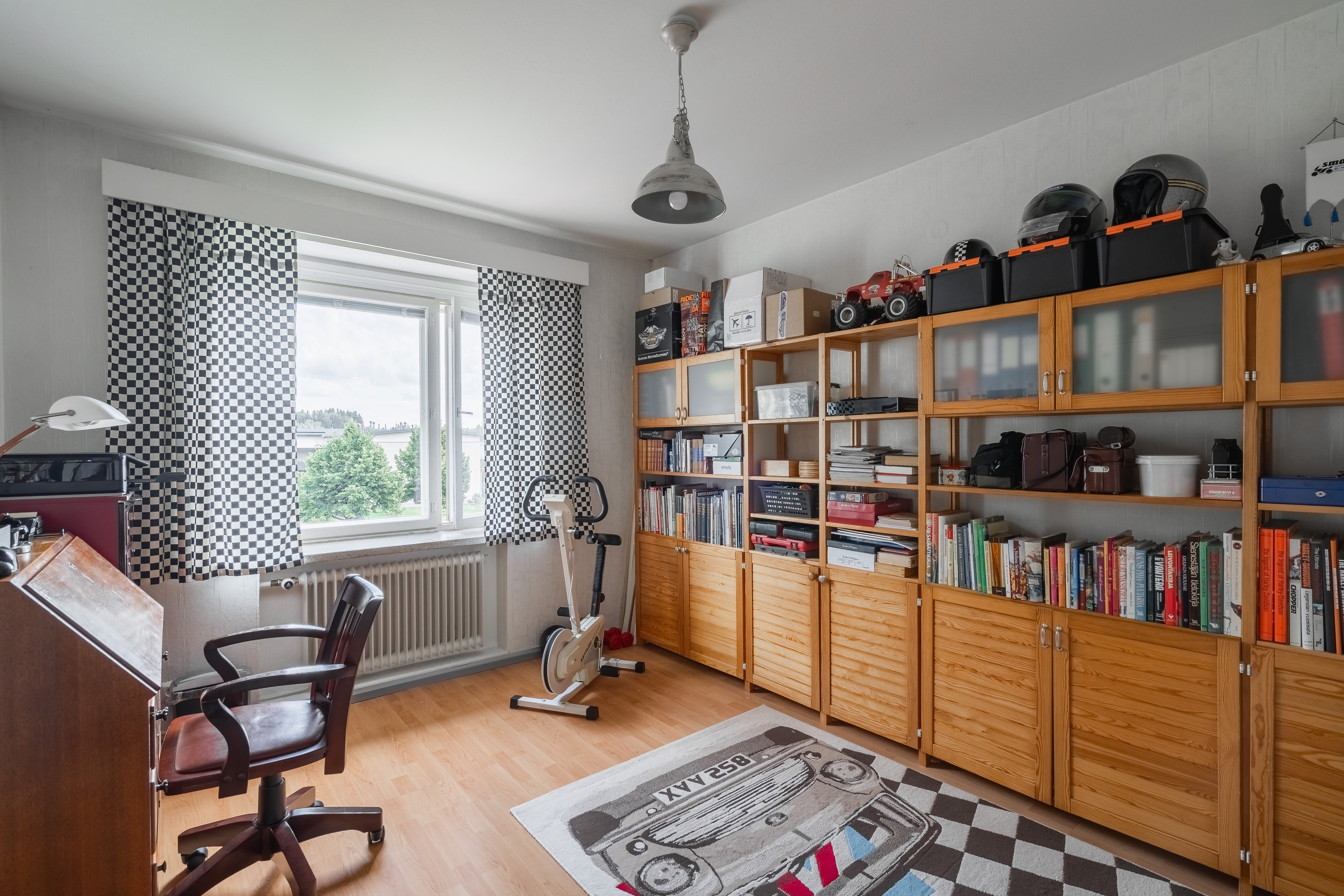 Lattiat laminaattia ja seinät osin maalattu, osin tapetoitu.