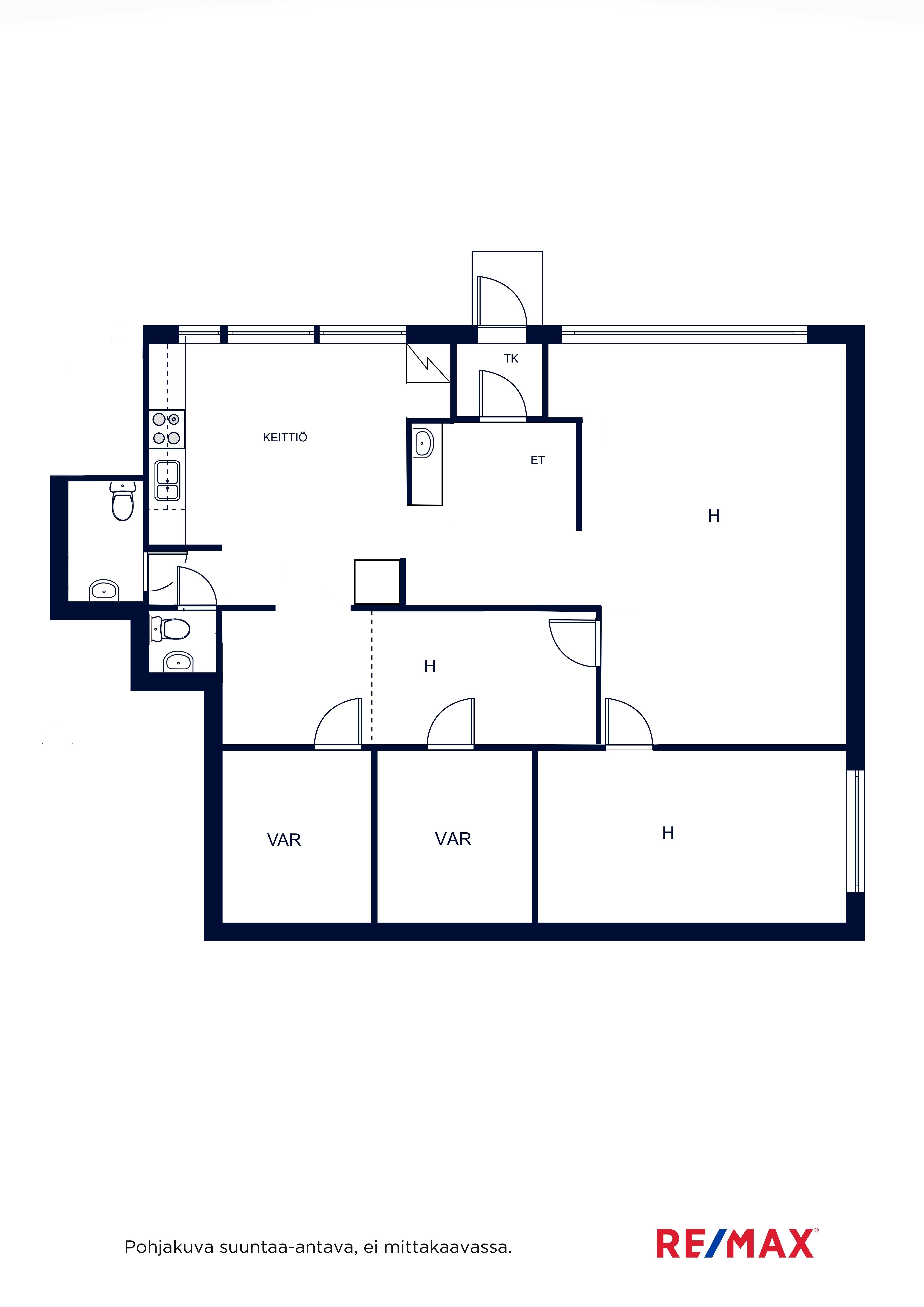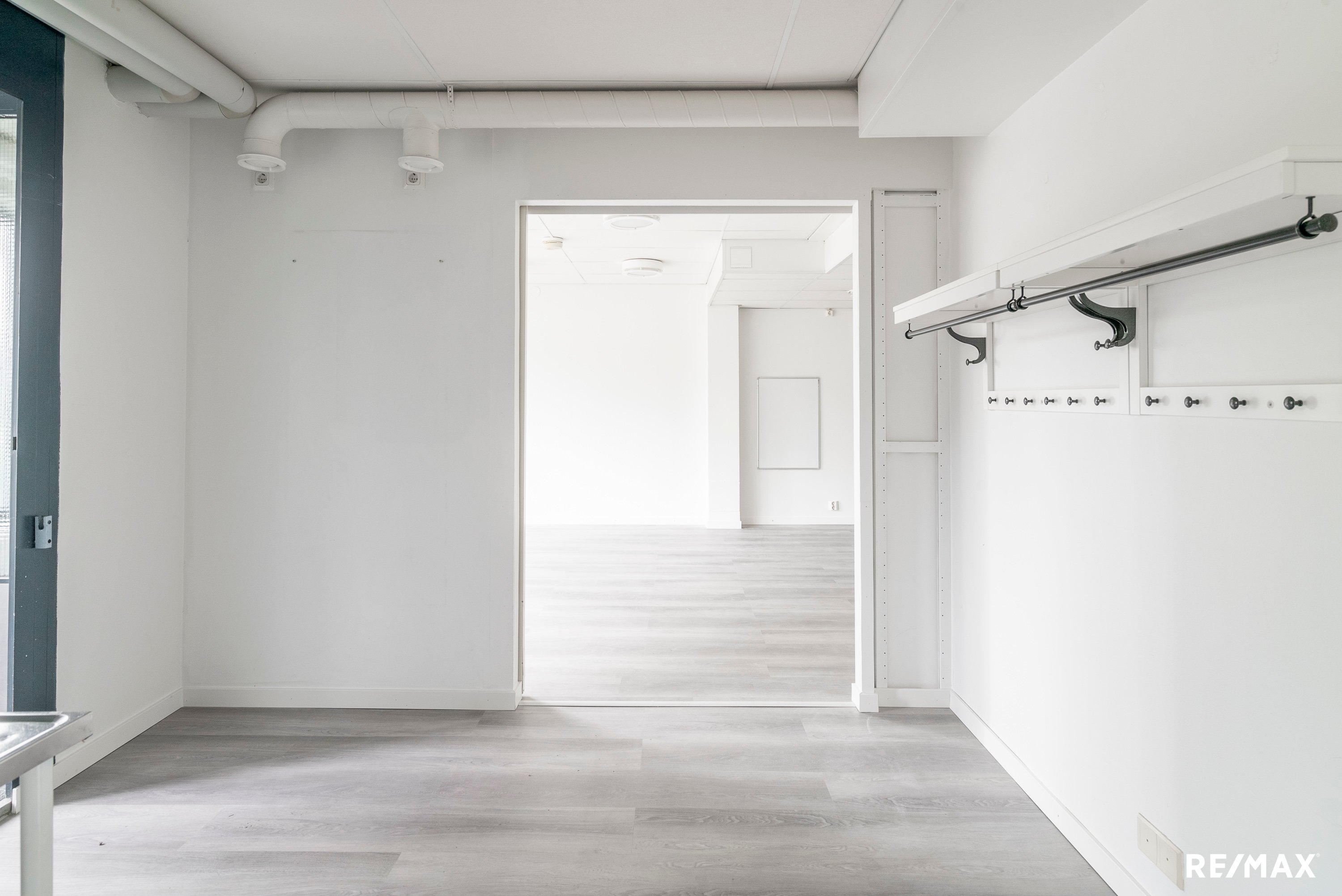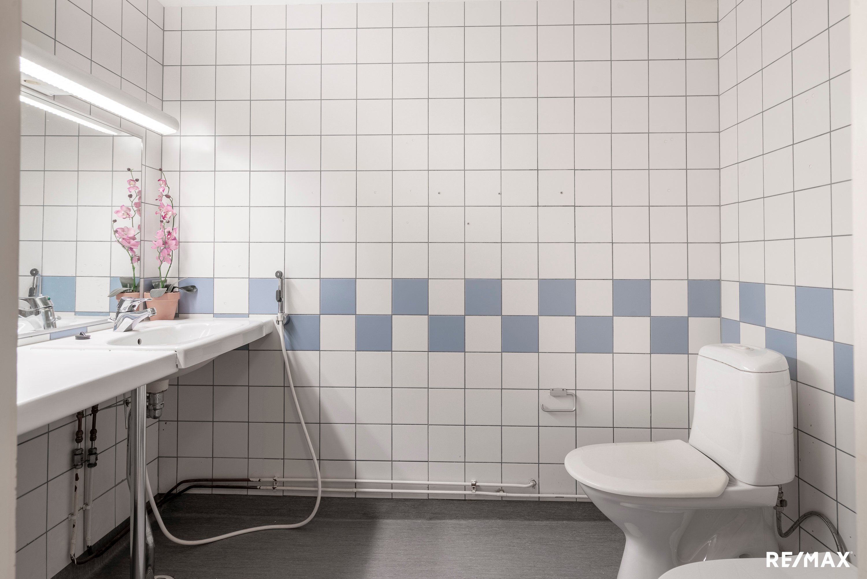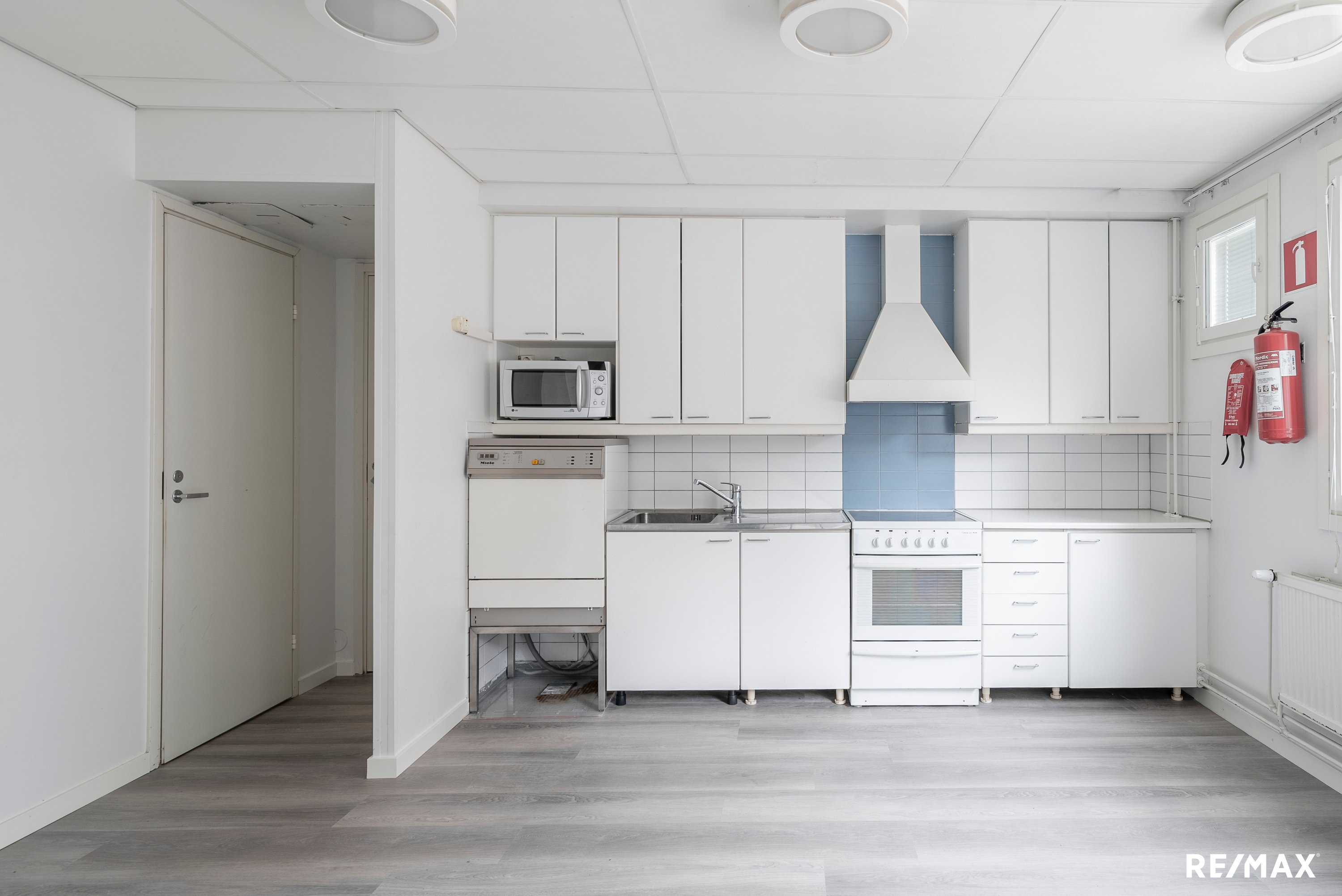 Liiketilassa on tilava keittiö, erillisiä huoneita, kaksi varastohuonetta sekä kaksi wc:tä.