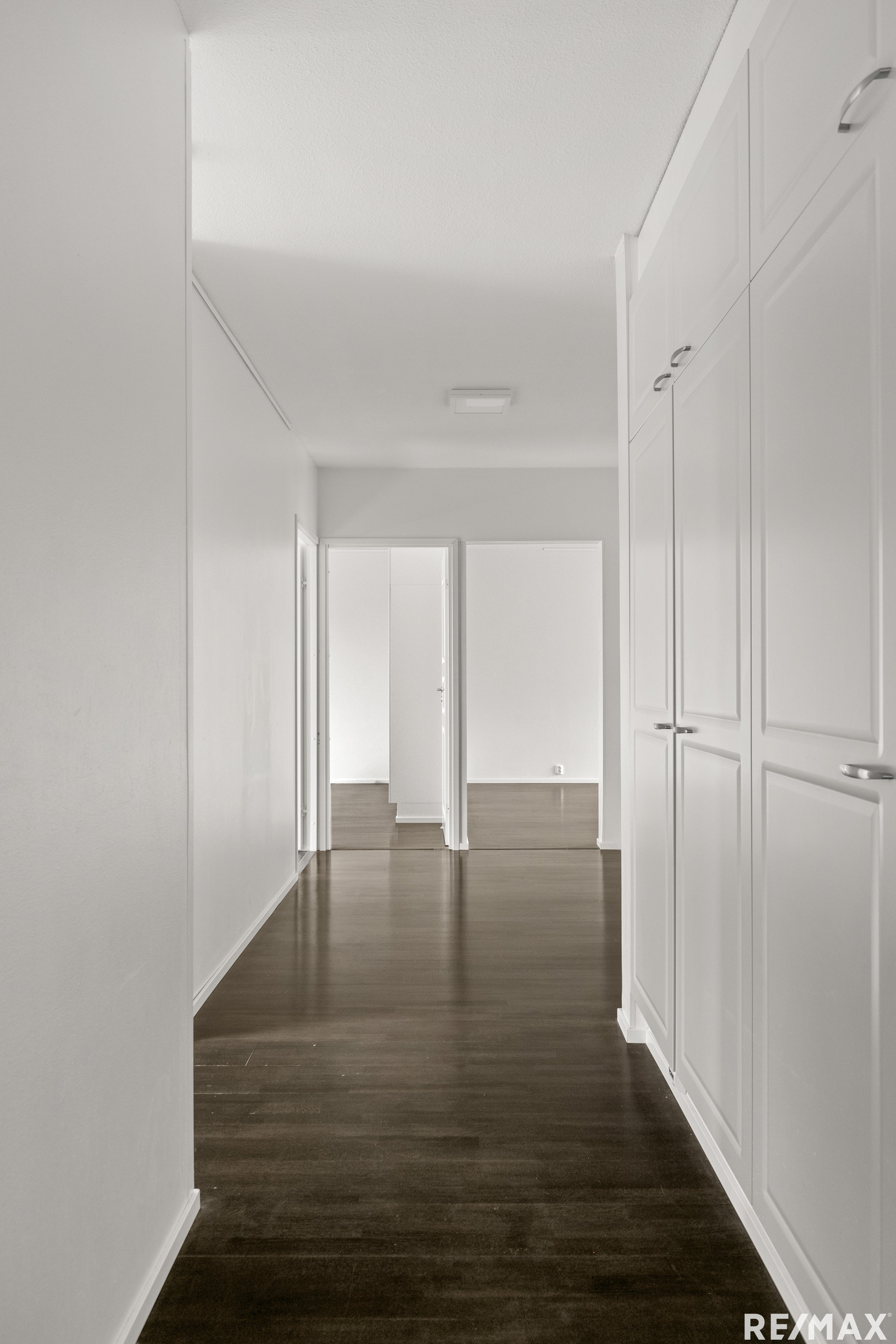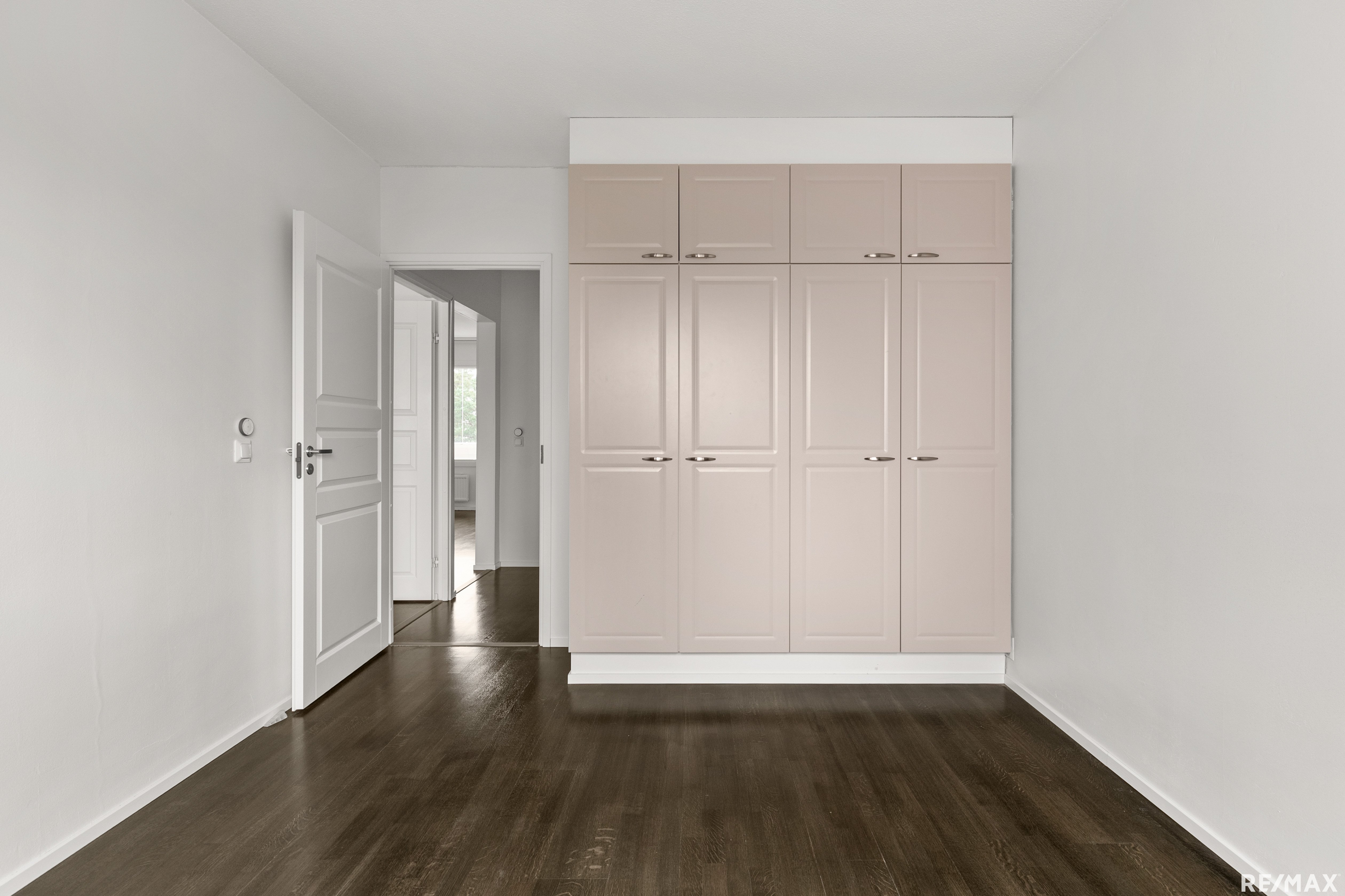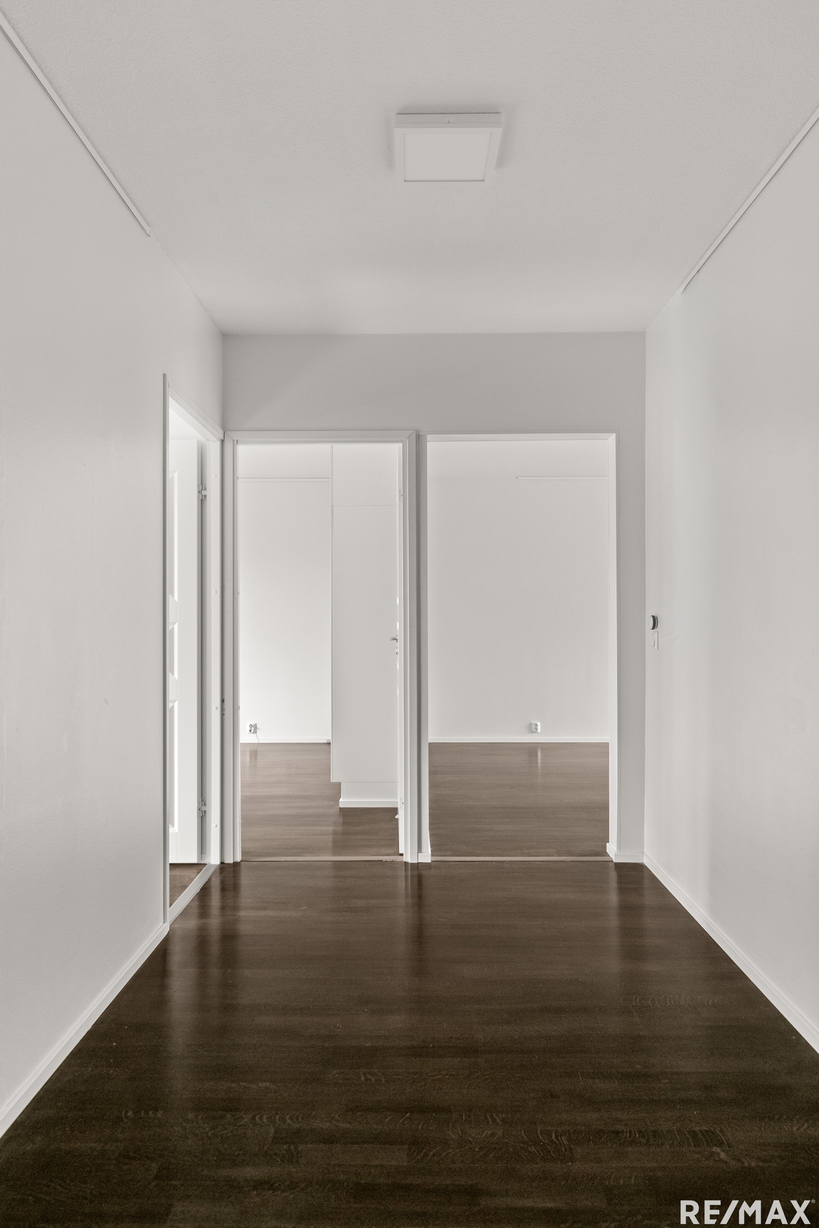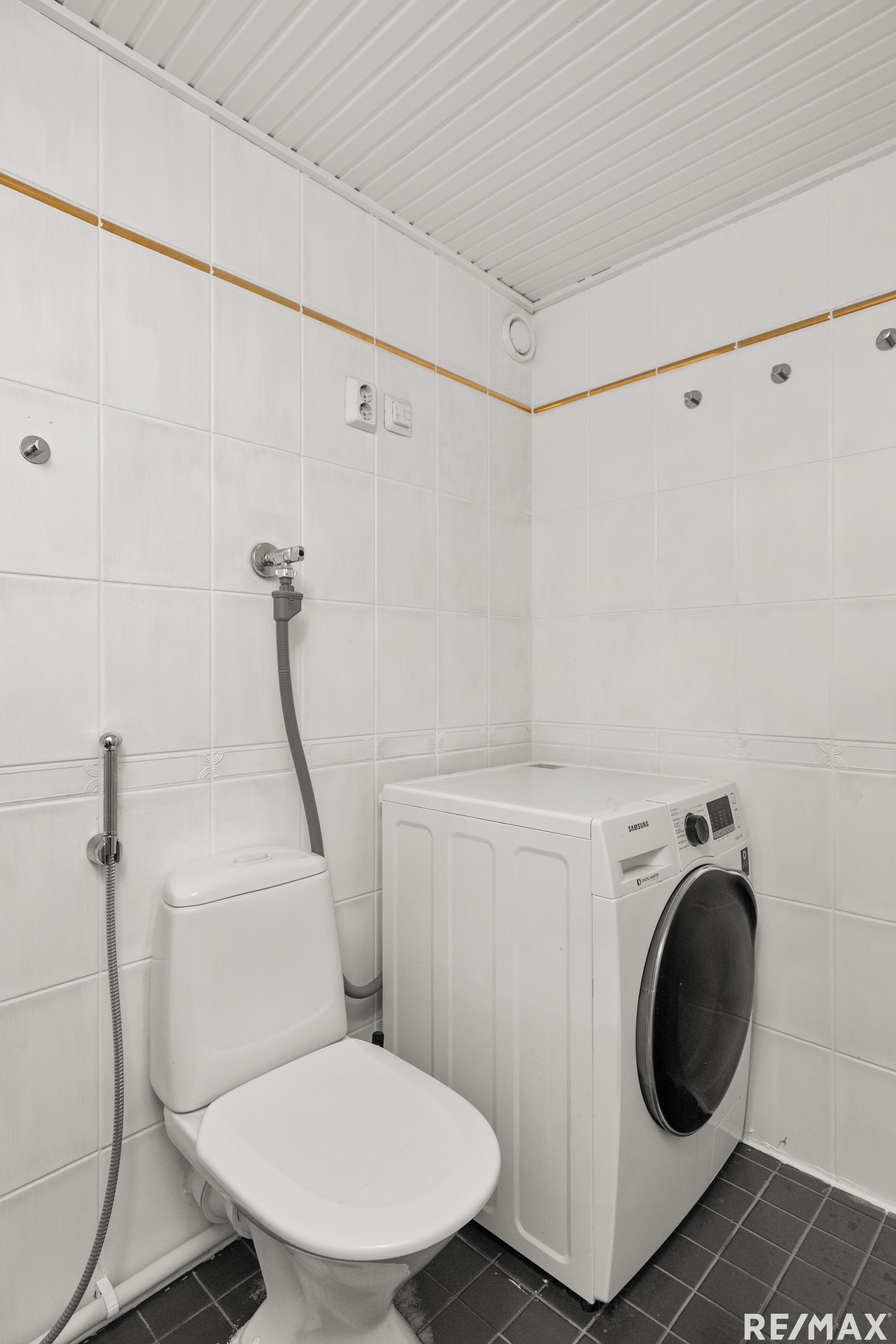 Asunnon sisäseinät ovat siirrettävissä, joten tilankäyttöä voi muokata remontin avulla omien tarpeiden mukaan. Kylpyhuone kaipaa pientä pintaremonttia eikä suurempia linjasaneeraussuunnitelmia ole vielä tiedossa. Keittiössä on käytännöllinen laminaattilattia, kun taas muualla asunnossa katse kiinnittyy tummaan parkettiin – tyylikäs valinta, joka on myös uudelleen hiottavissa. Seinille asennetut taululistat mahdollistavat sisustamisen ilman poraamista, mikä tekee kodin ilmeen päivittämisestä helppoa ja huoletonta.