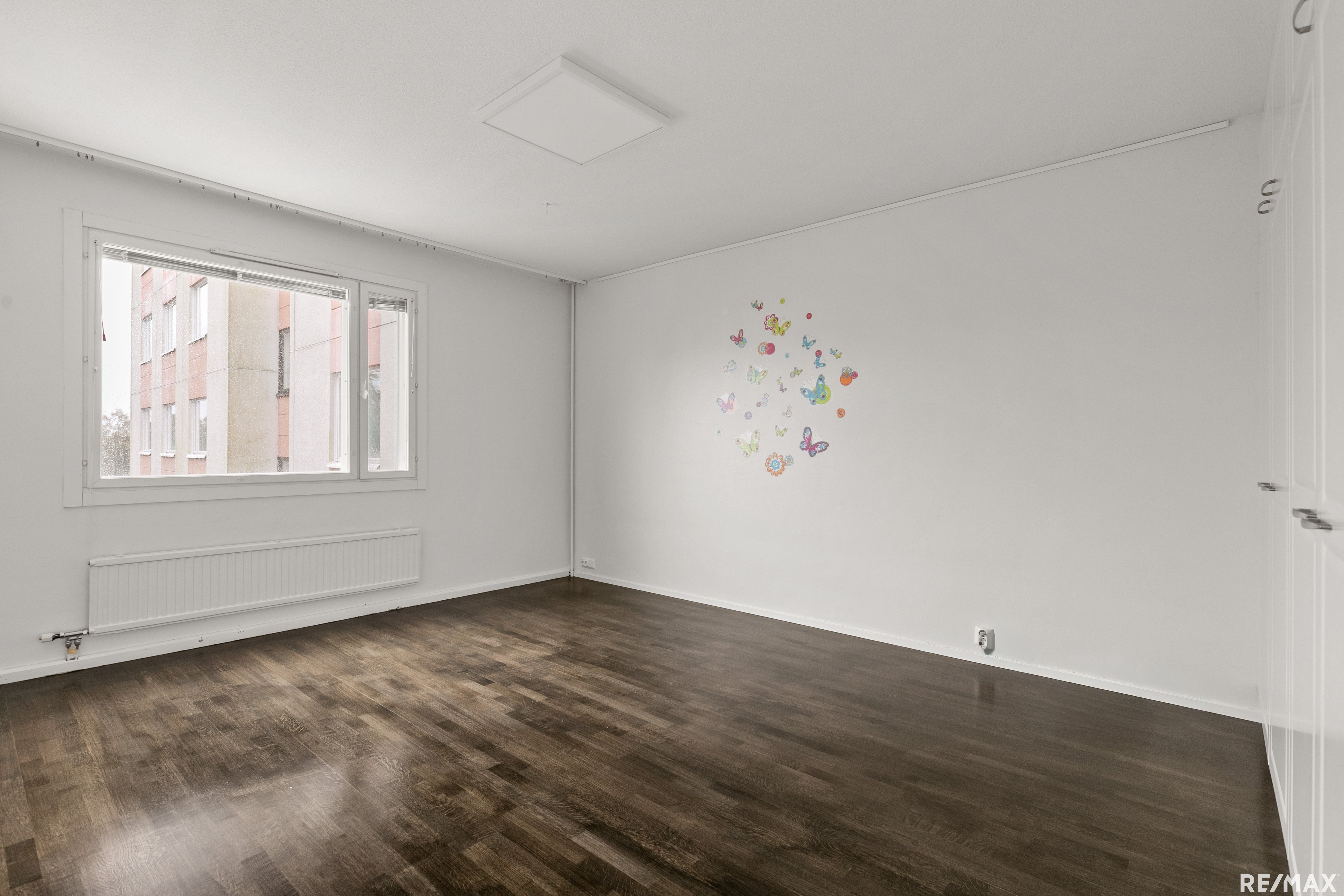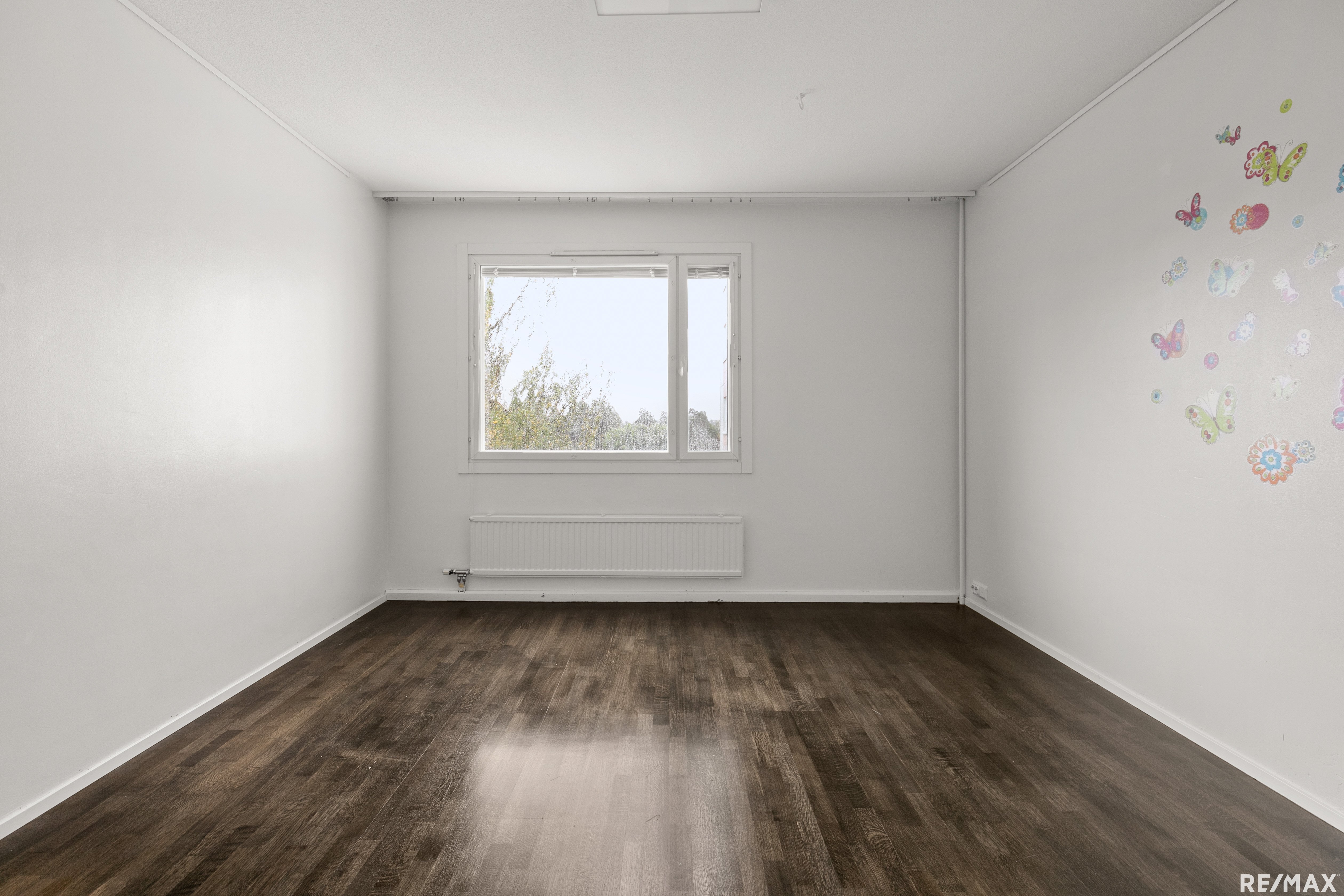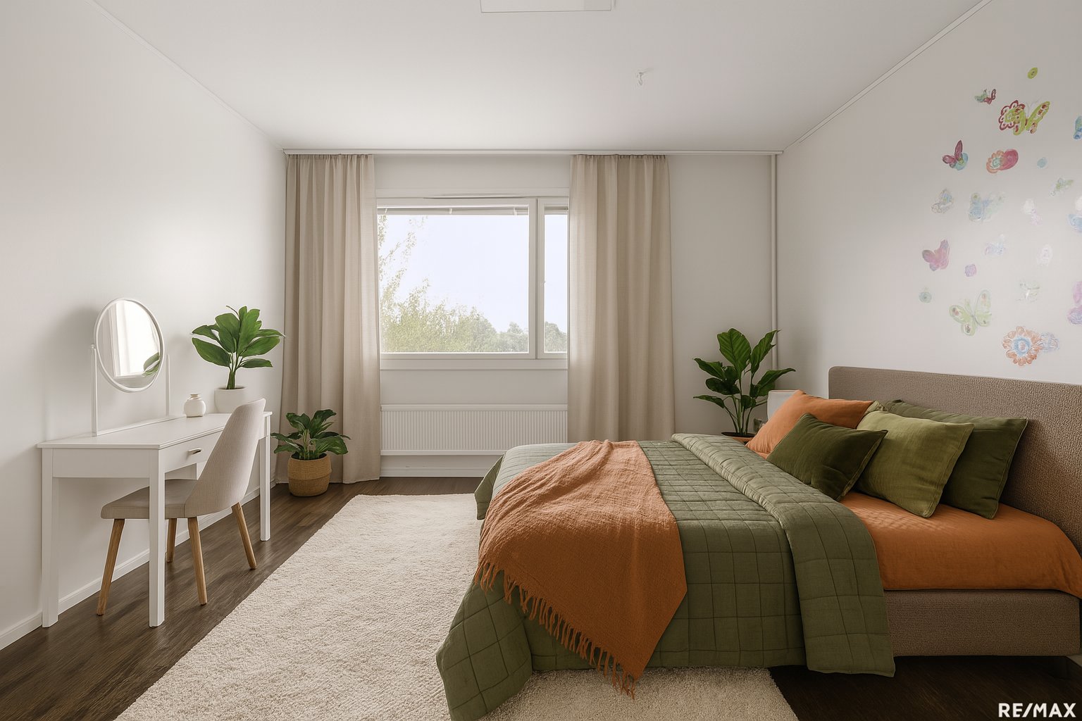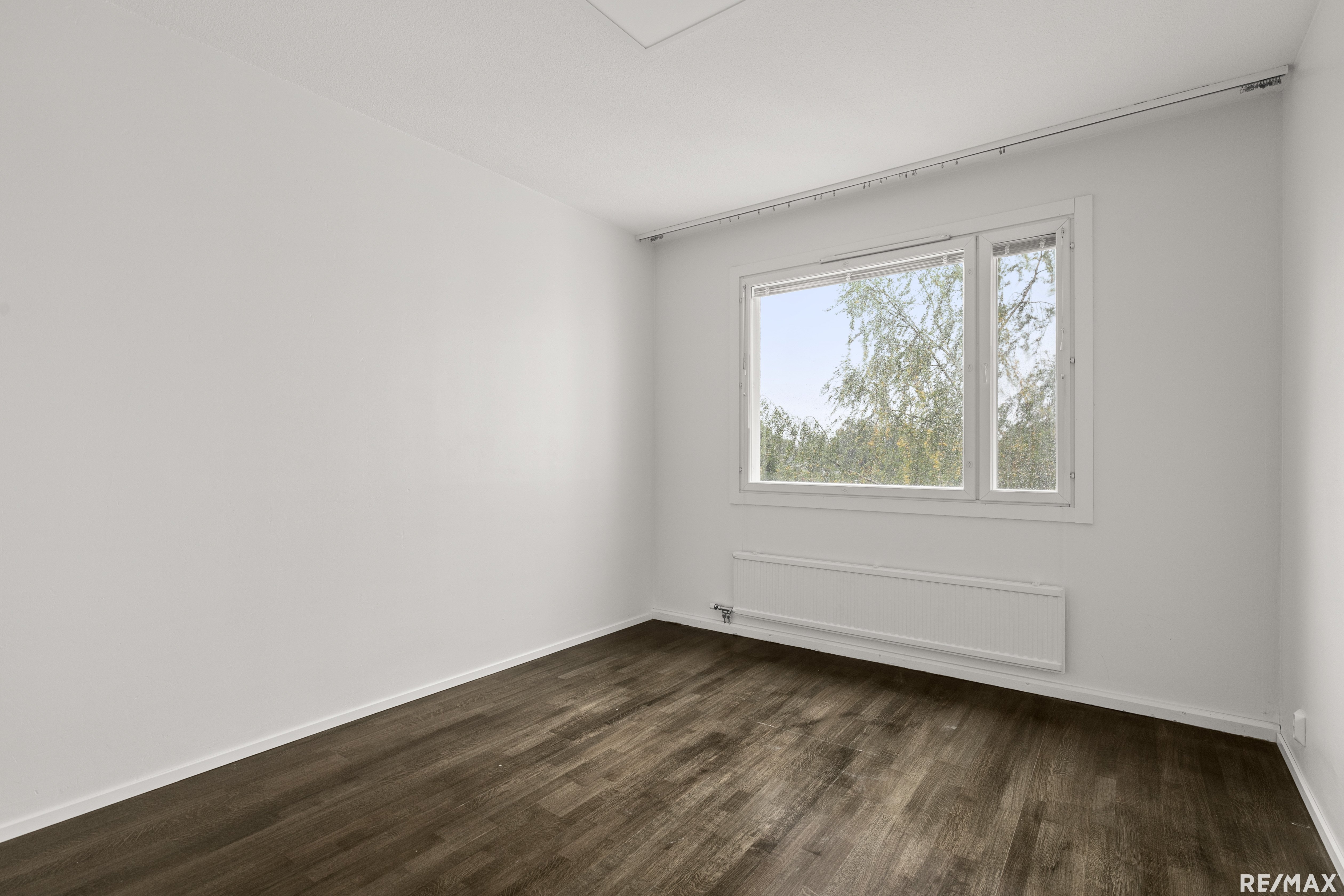 Tämä kolmio on juuri sellainen koti, joka herättää kiinnostuksen jo pohjaratkaisullaan. Suurissa makuuhuoneissa on reilusti tilaa niin levolle kuin työskentelylle, ja olohuoneen jatkeena avautuva lasitettu parveke tuo mukavasti lisäneliöitä oleskeluun.