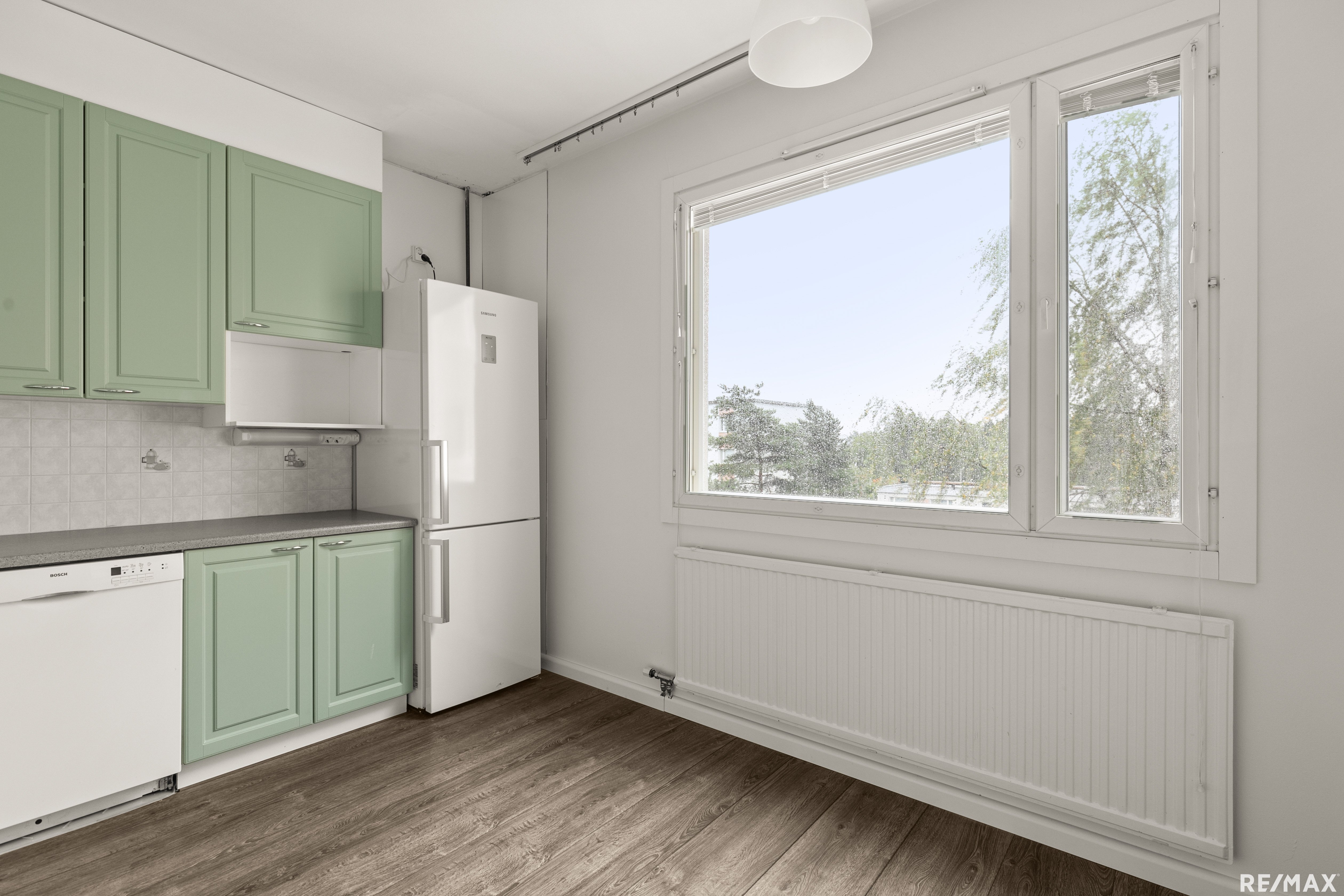 Erillinen keittiö tekee arjen pyörittämisestä sujuvaa, ja kokonaisuus tuntuu toimivalta heti sisään astuessa.