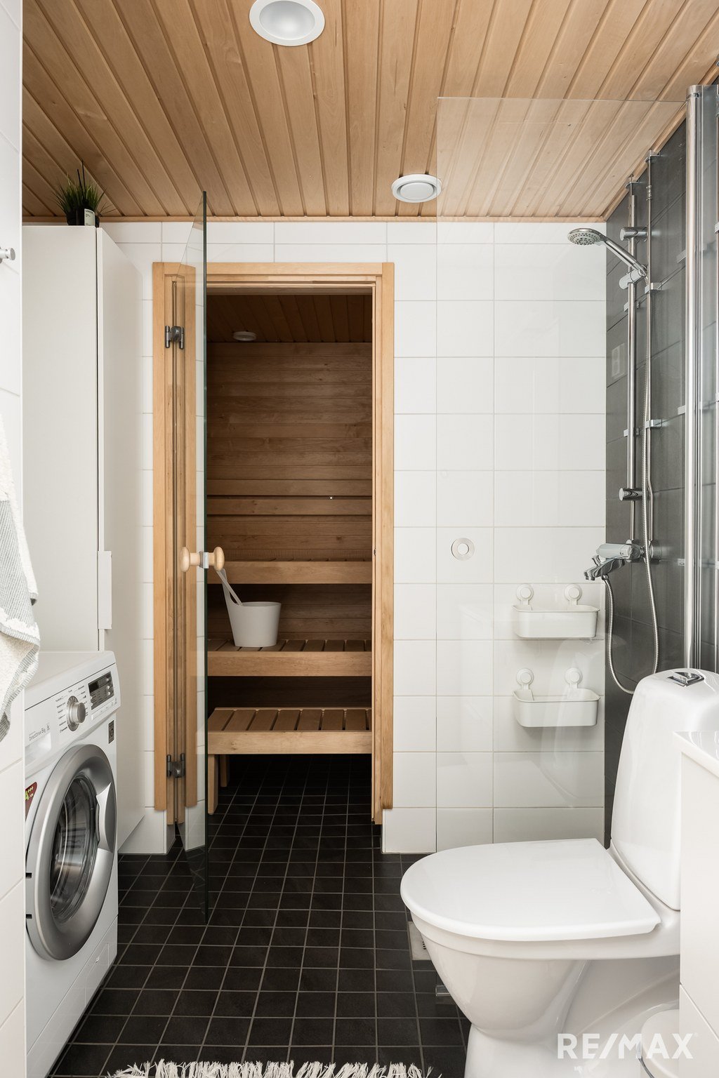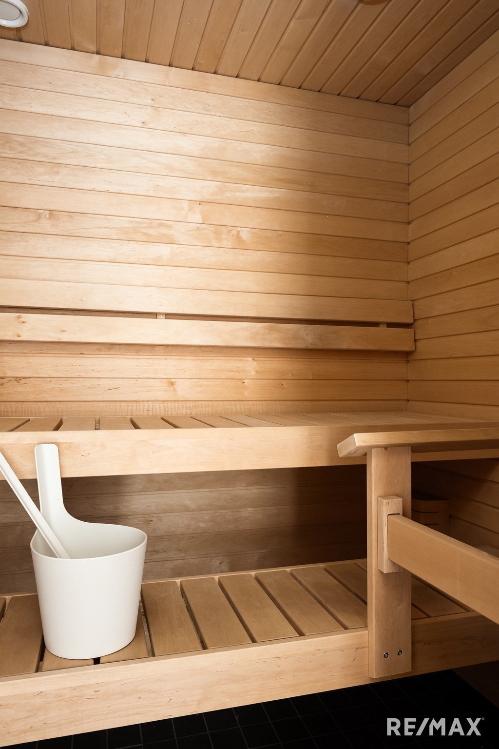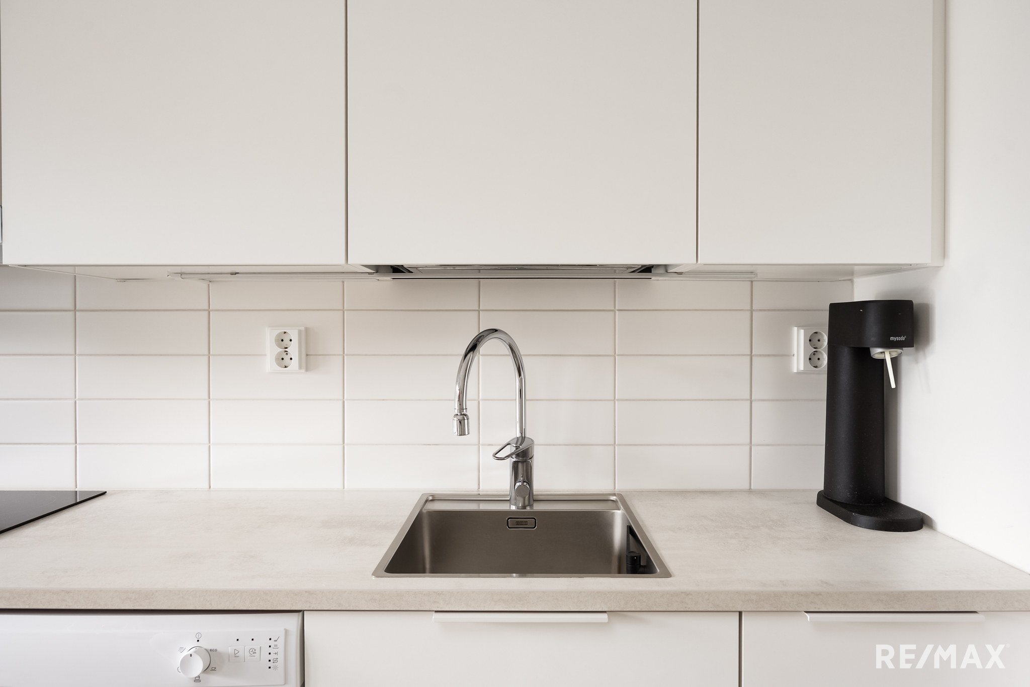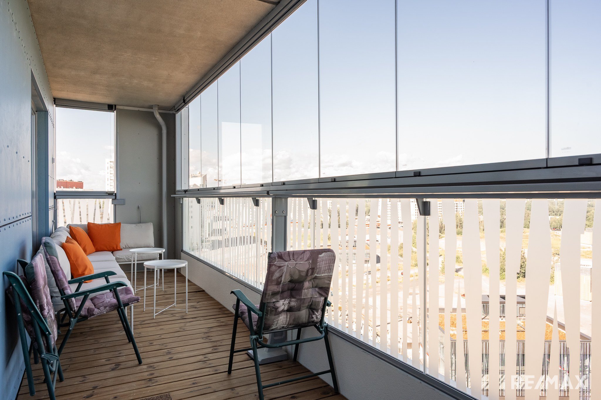 Olohuoneesta avautuu käynti 9,4 m leveälle lasitetulle länsiparvekkeelle, jonne ilta-aurinko luo miellyttävän tunnelman. Parvekkeelta avautuu rauhallinen näkymä, ja se toimii lisätilana ympäri vuoden. Keittiö on varustettu nykyaikaisilla kodinkoneilla, kuten induktioliesi, mikro ja astianpesukone, sekä erilliset jää- ja pakastekaapit. Asunnossa on oma sauna, jossa voi rentoutua päivän päätteeksi.