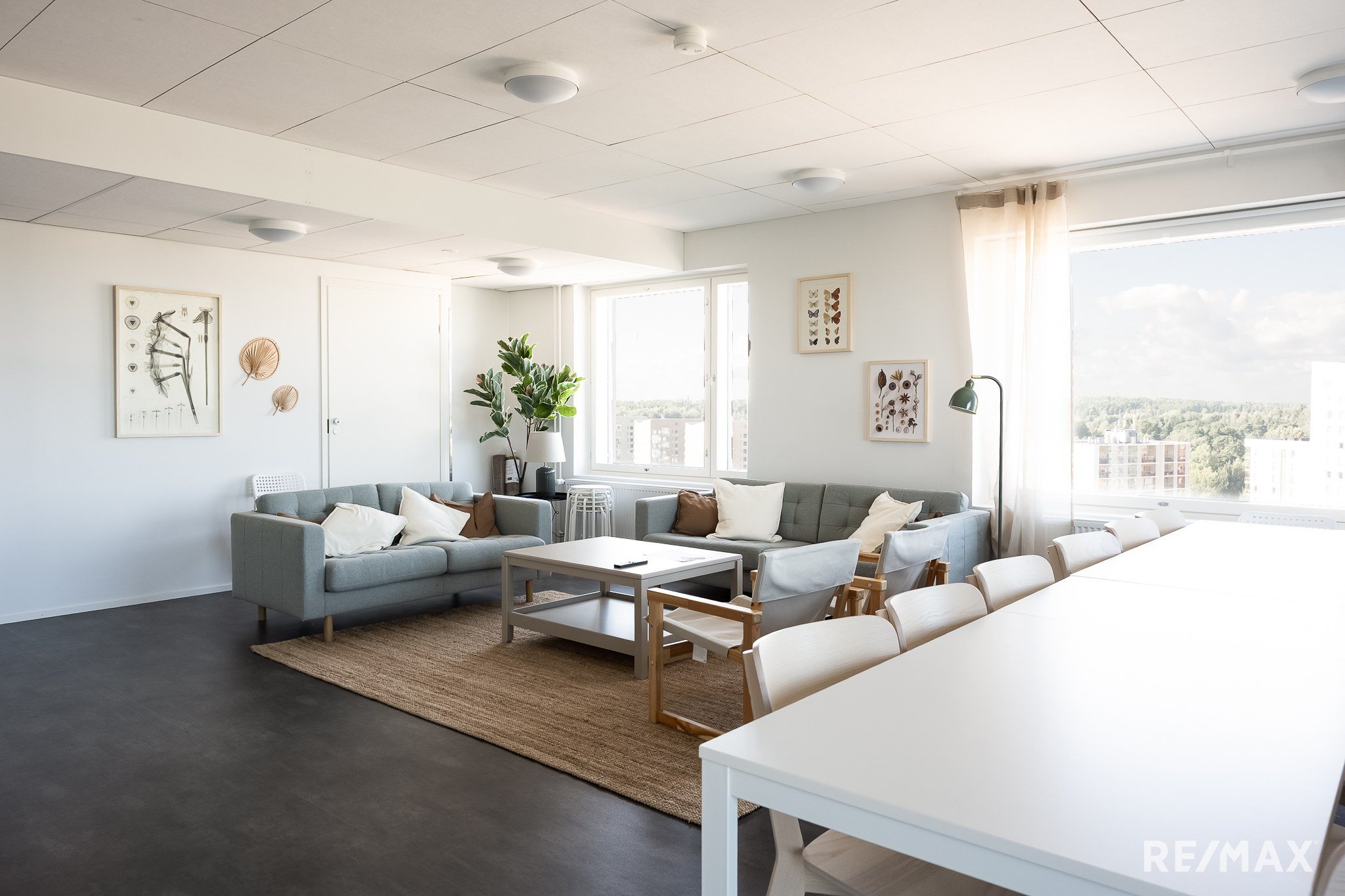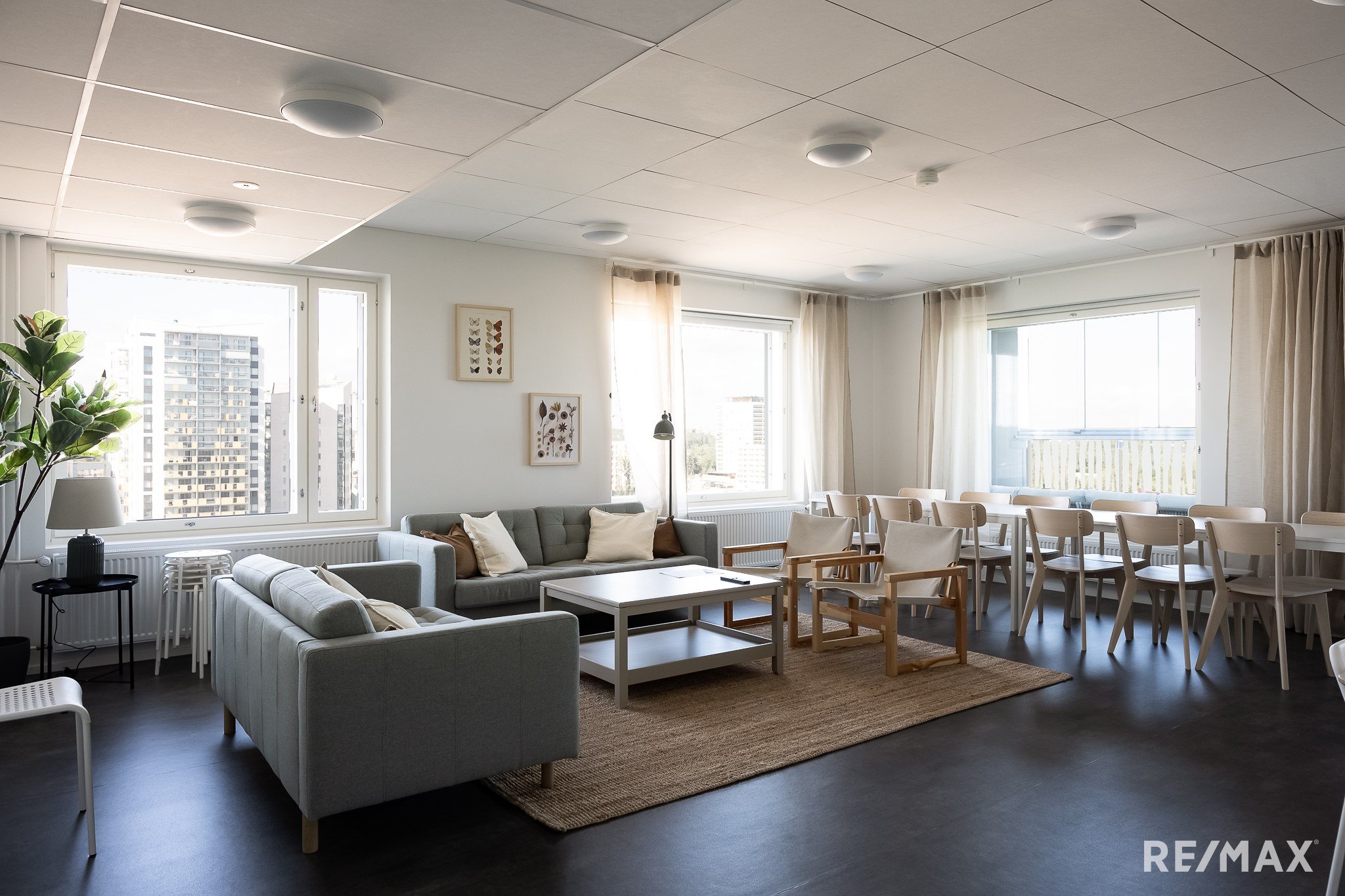 Taloyhtiössä on hyvät yhteiset tilat, kuten 12. kerroksen sauna- ja kerhotila, pesutupa, kuivaushuone, urheiluvälinevarasto. Liikenneyhteydet ovat erinomaiset: läheltä löytyvät niin bussipysäkki kuin metroasemakin, ja omalla autolla liikkuminen on sujuvaa. Naapurista löytyy pysäköintitalo josta on mahdollista vuokrata autopaikkoja.