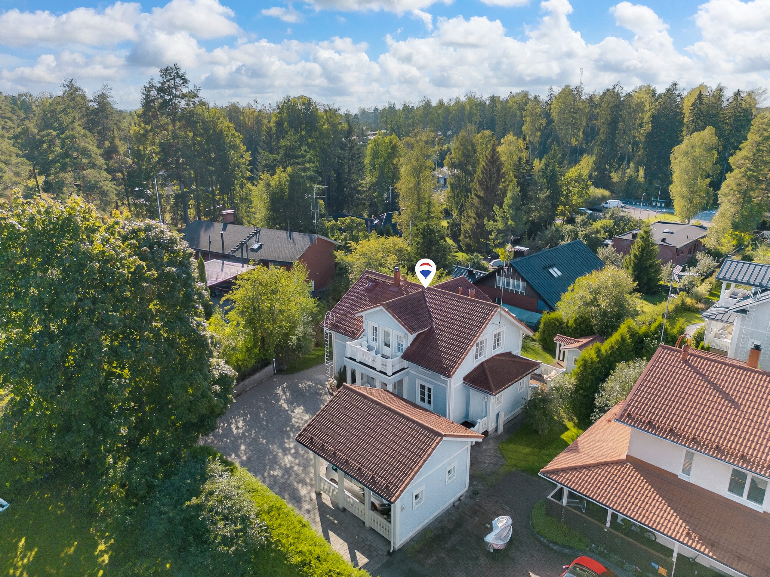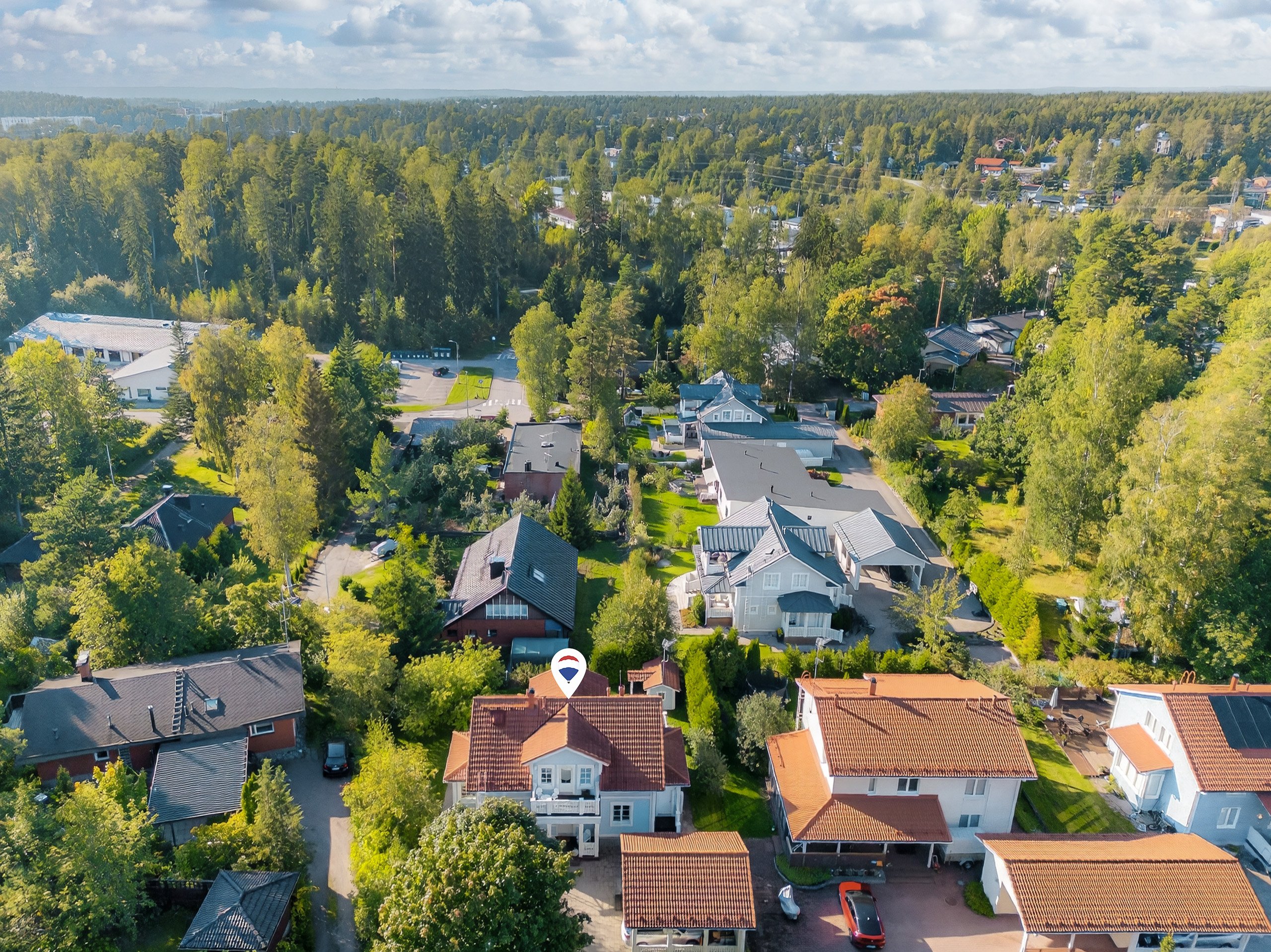 Sijainti on rauhallinen, mutta silti lähellä kaikkea tarvittavaa. Päiväkodit, koulut ja lähikaupat löytyvät kävelyetäisyydeltä. Lähin bussipysäkki on vain 450 metrin päässä, ja Kivenlahden metroasemalle matkaa on noin 2,1 kilometriä – sujuvat kulkuyhteydet ovat taattuja.