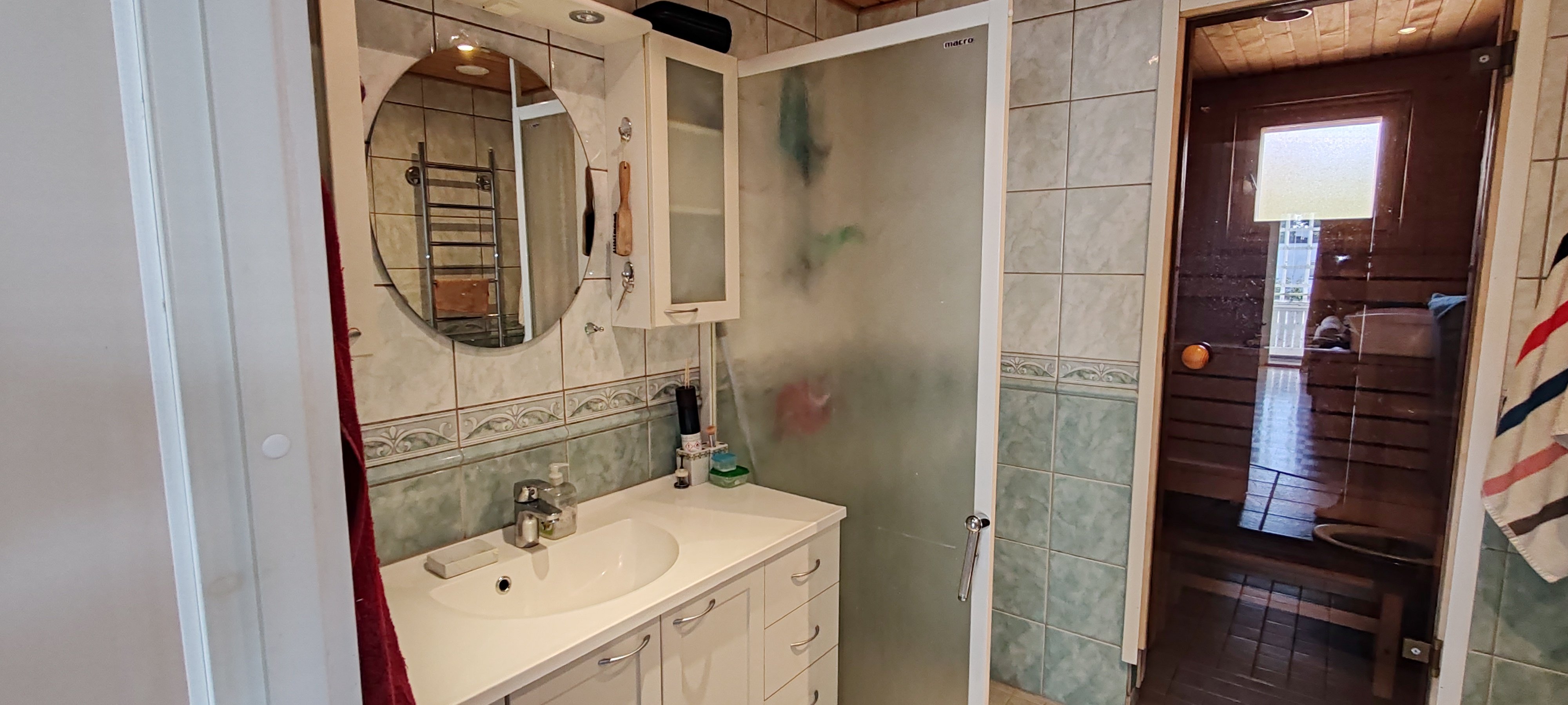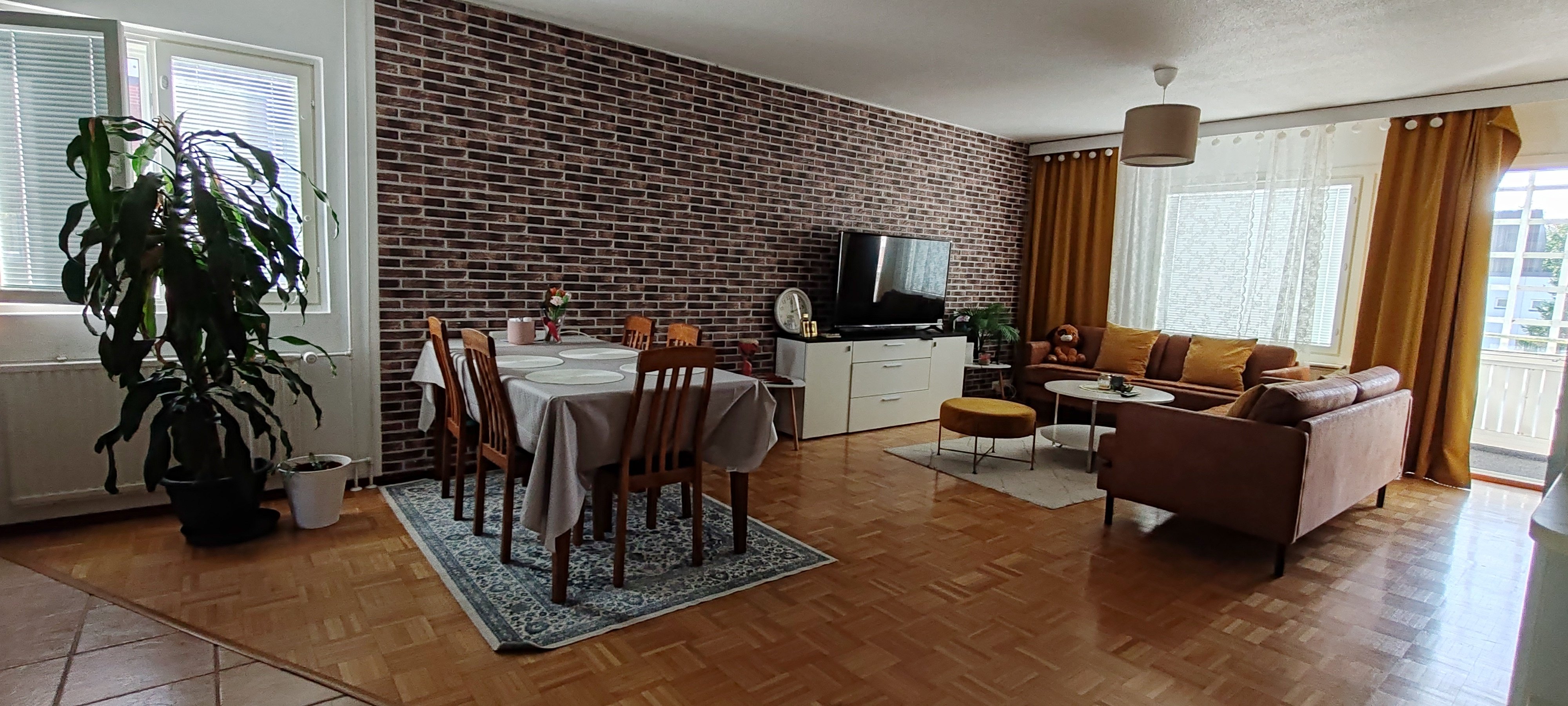 The kitchen of the apartment has been gradually renovated over the past five years and is equipped with modern appliances. The parquet floors in the living room and bedrooms bring warmth and elegance to the rooms. A private sauna offers the opportunity to relax amidst the hustle and bustle of everyday life, and the glazed balcony serves as an additional space all year round.