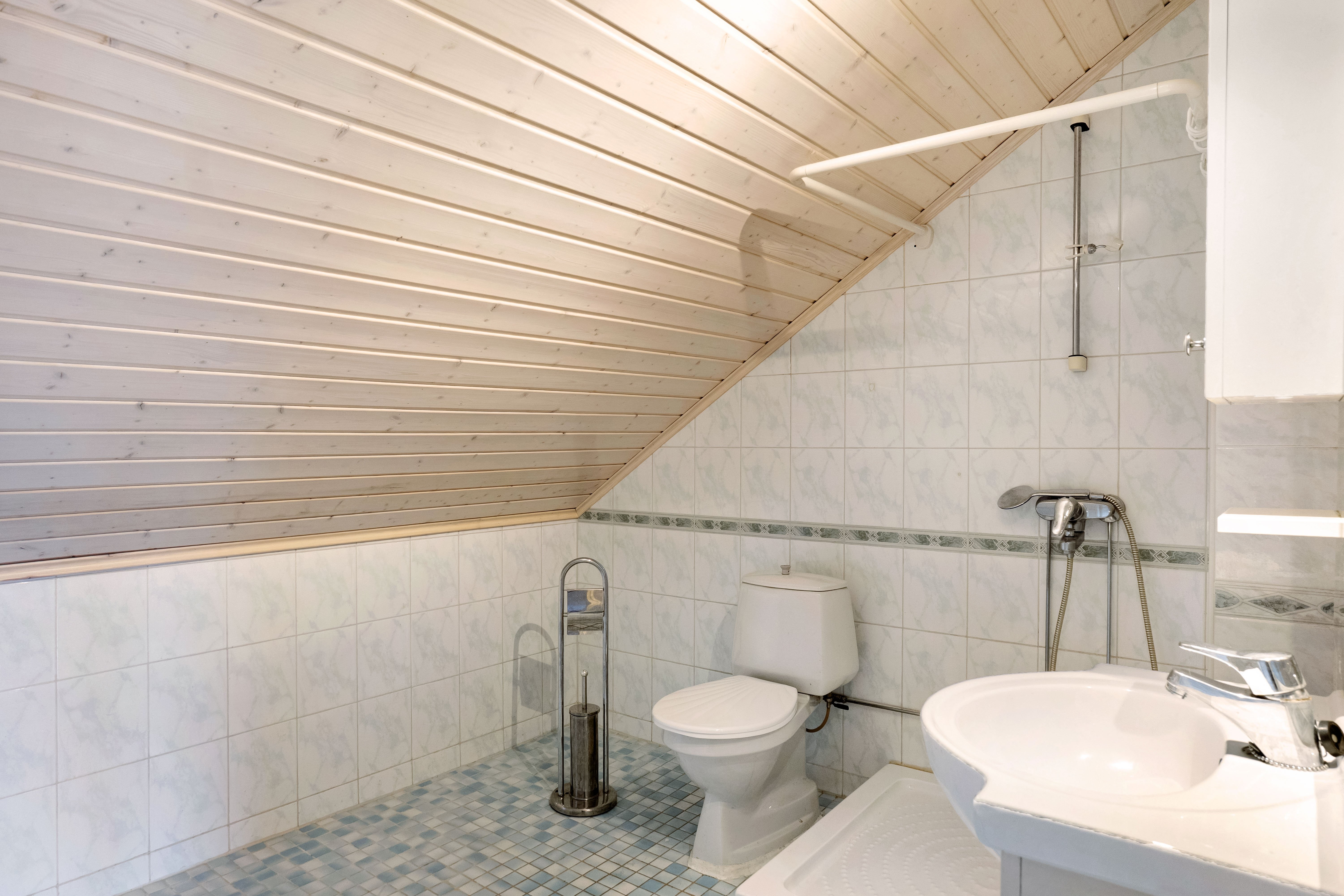 Ylimmässä ja alimmassa kerroksessa on omat kylyhuoneet wc-kulhon kera