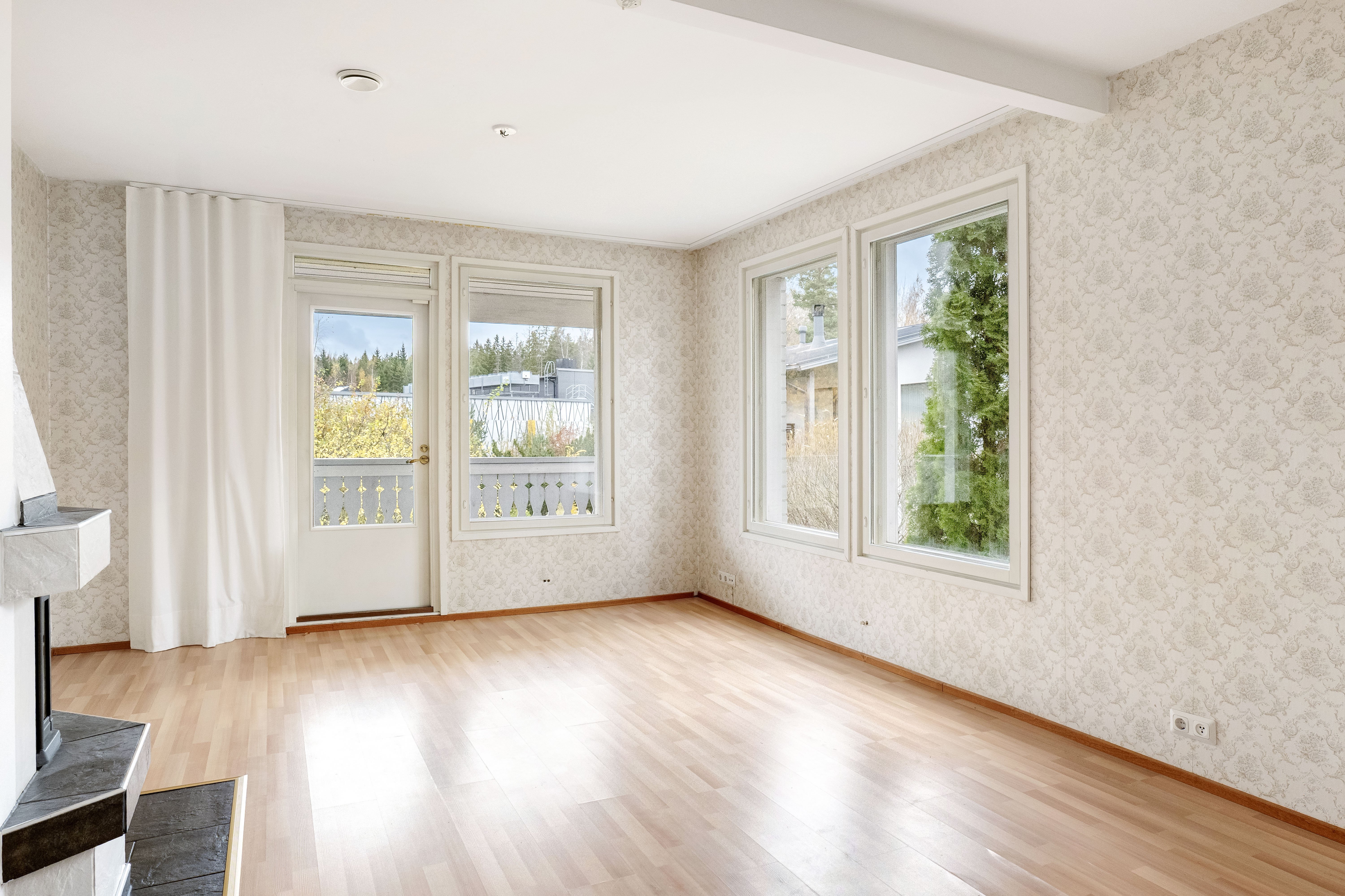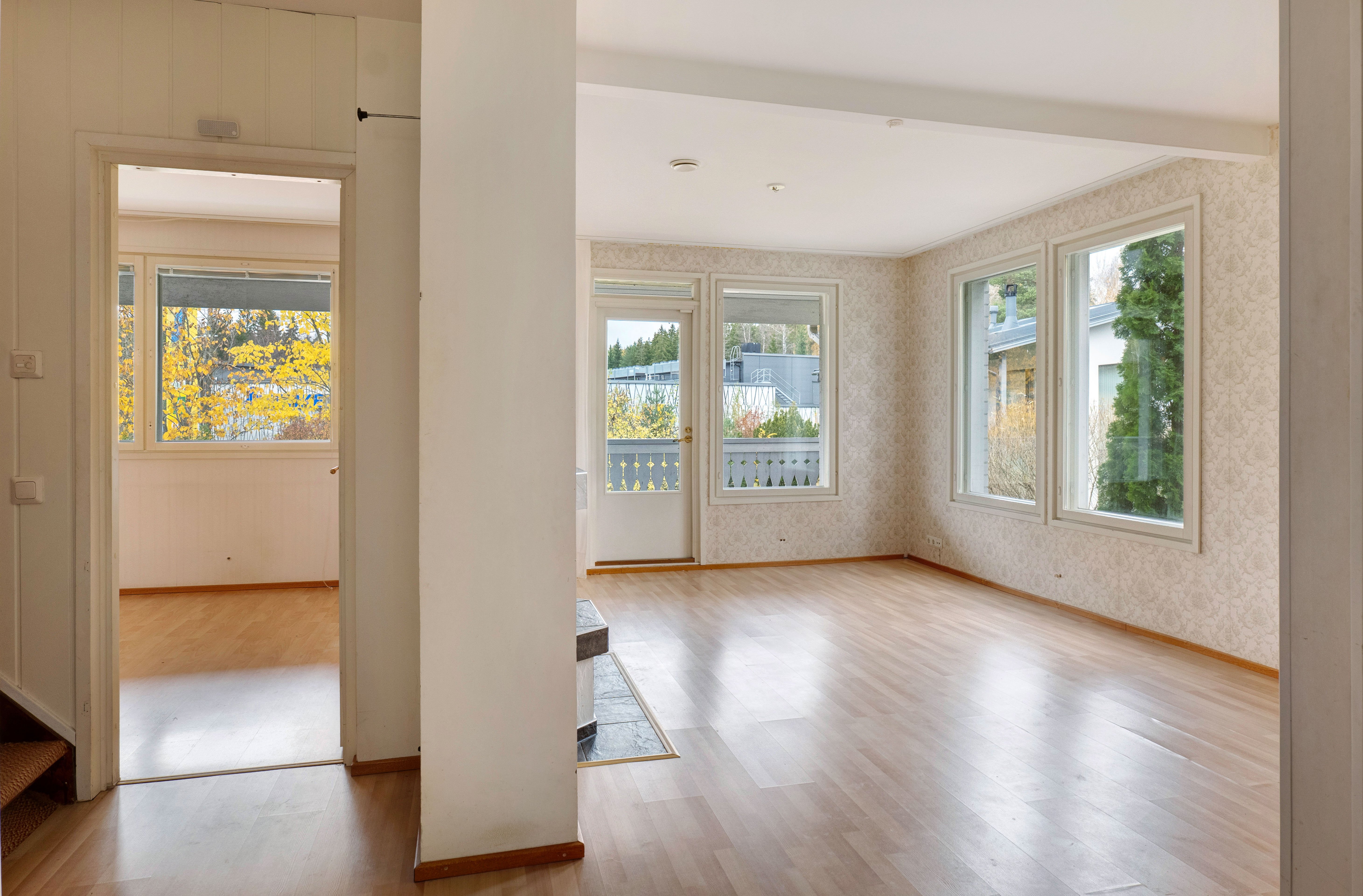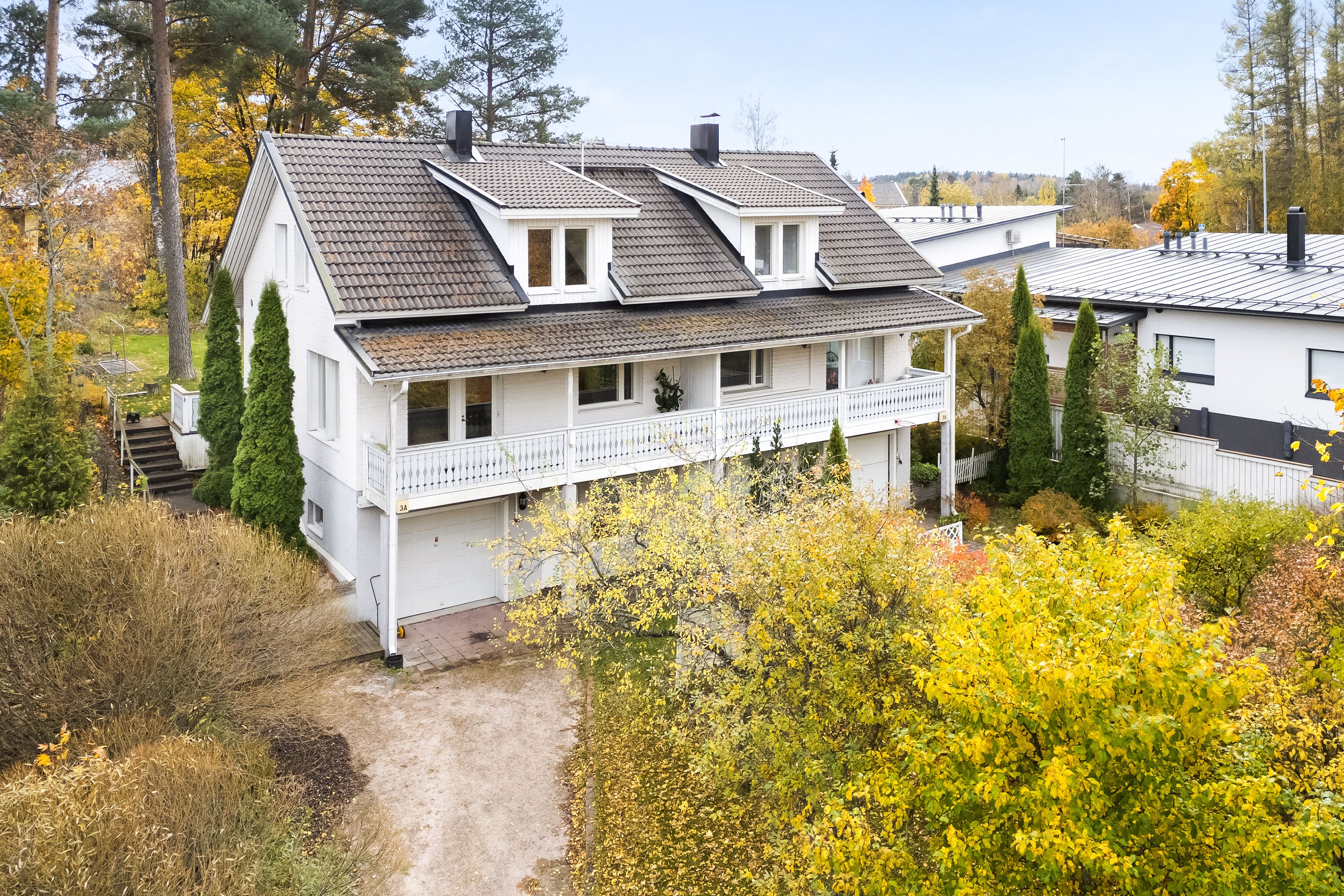 Noin 125 m2 paritalon puolikas tarjoaa juuri sen, mitä nykypäivän perhe kaipaa: Kolme kerrosta toimivaa tilaa, oma sauna ja autotalli, kaksi kylpyhuonetta, vähintään kolme makuuhuonetta ja lämmin olohuone, jossa takan ääressä syksyn sade kuulostaa lohduttavalta. Huoneisto muuntuu hienosti perheen muuttuvien tarpeiden mukaan, koska: Yläkerran aulatilasta saat helposti kevyellä väliseinällä ja väliovella yhden lisämakuuhuoneen. Alimman kerroksen sisäänkäynnin yhteydessä on myös asuinkäytössä ollut huone.