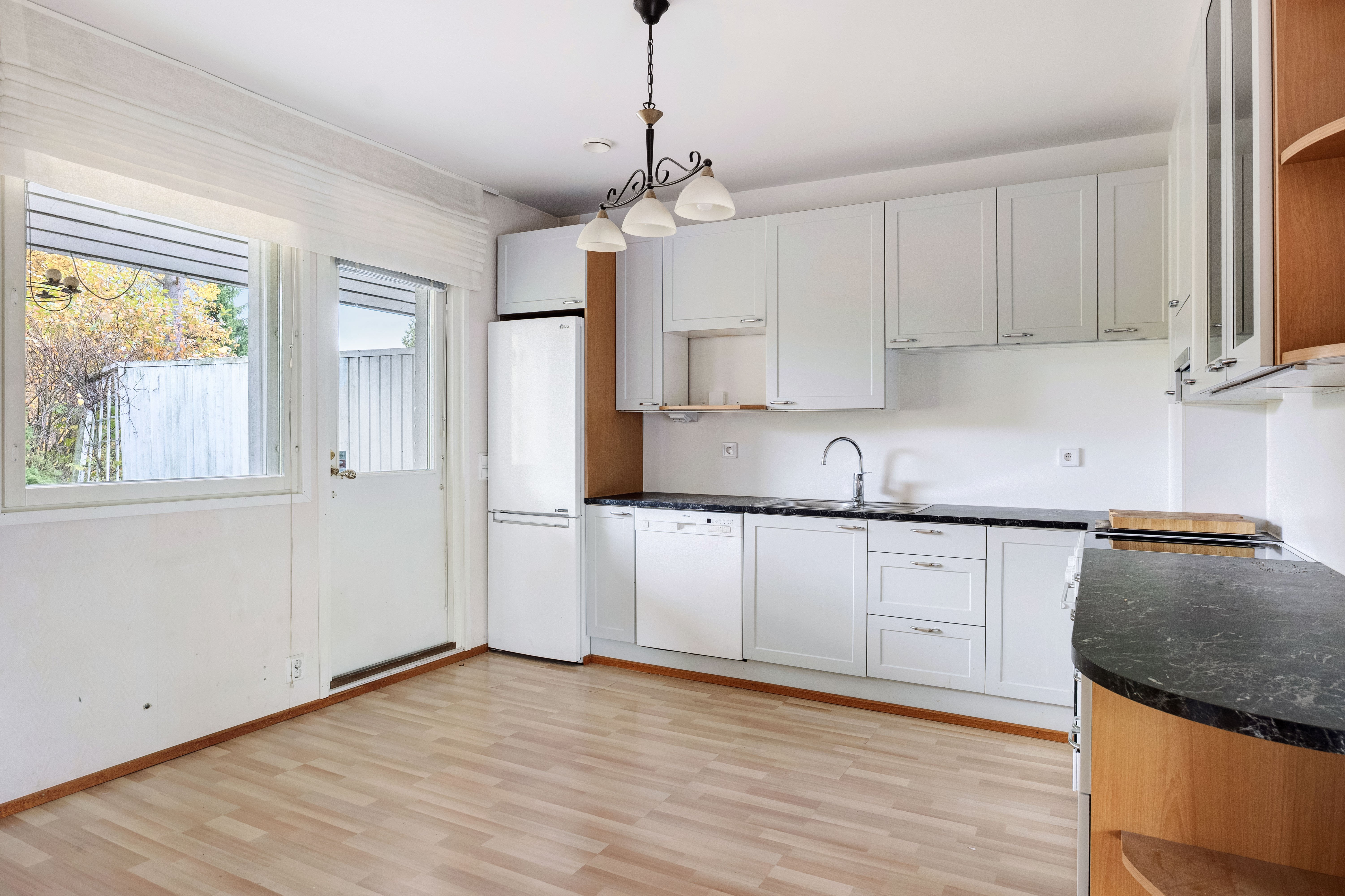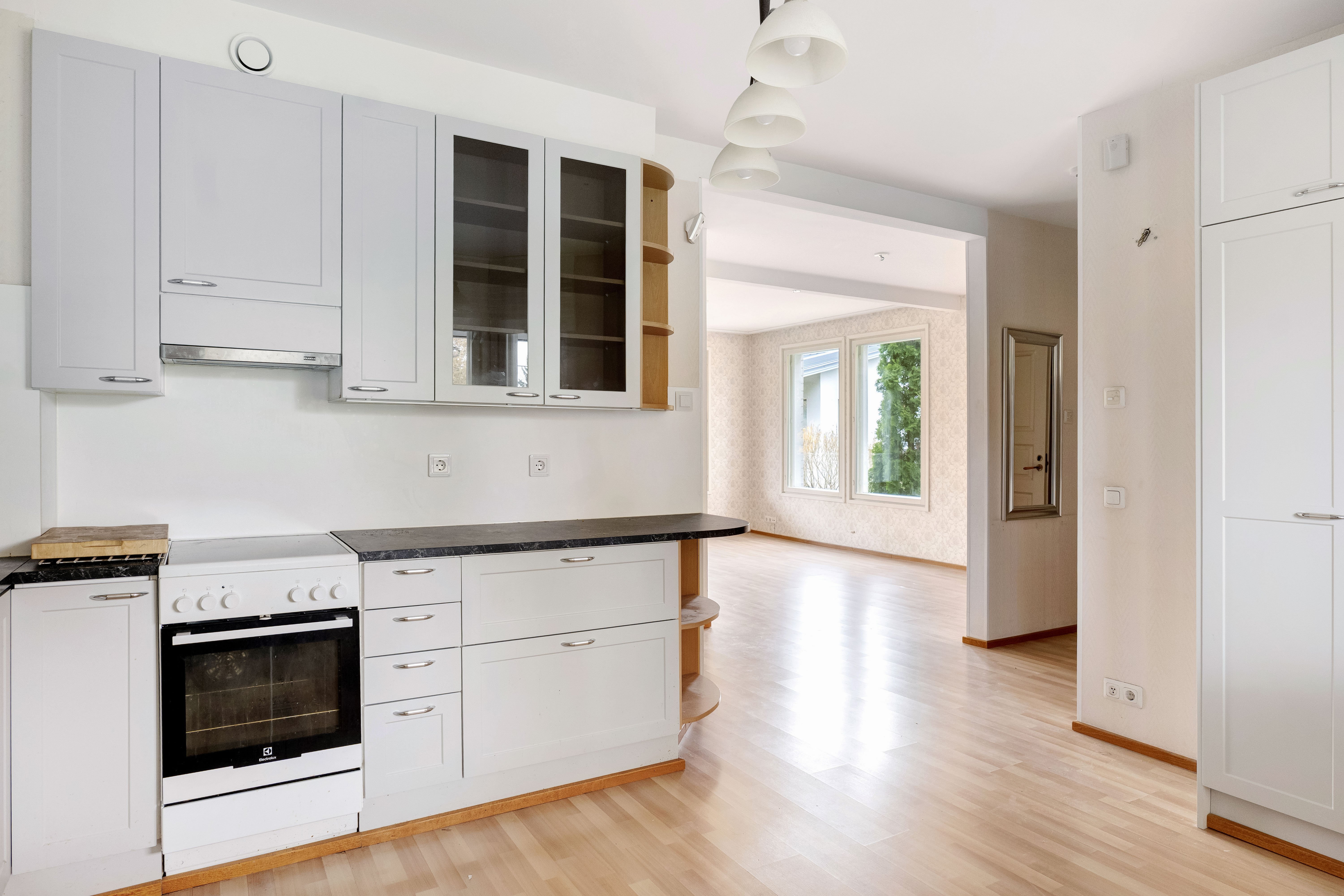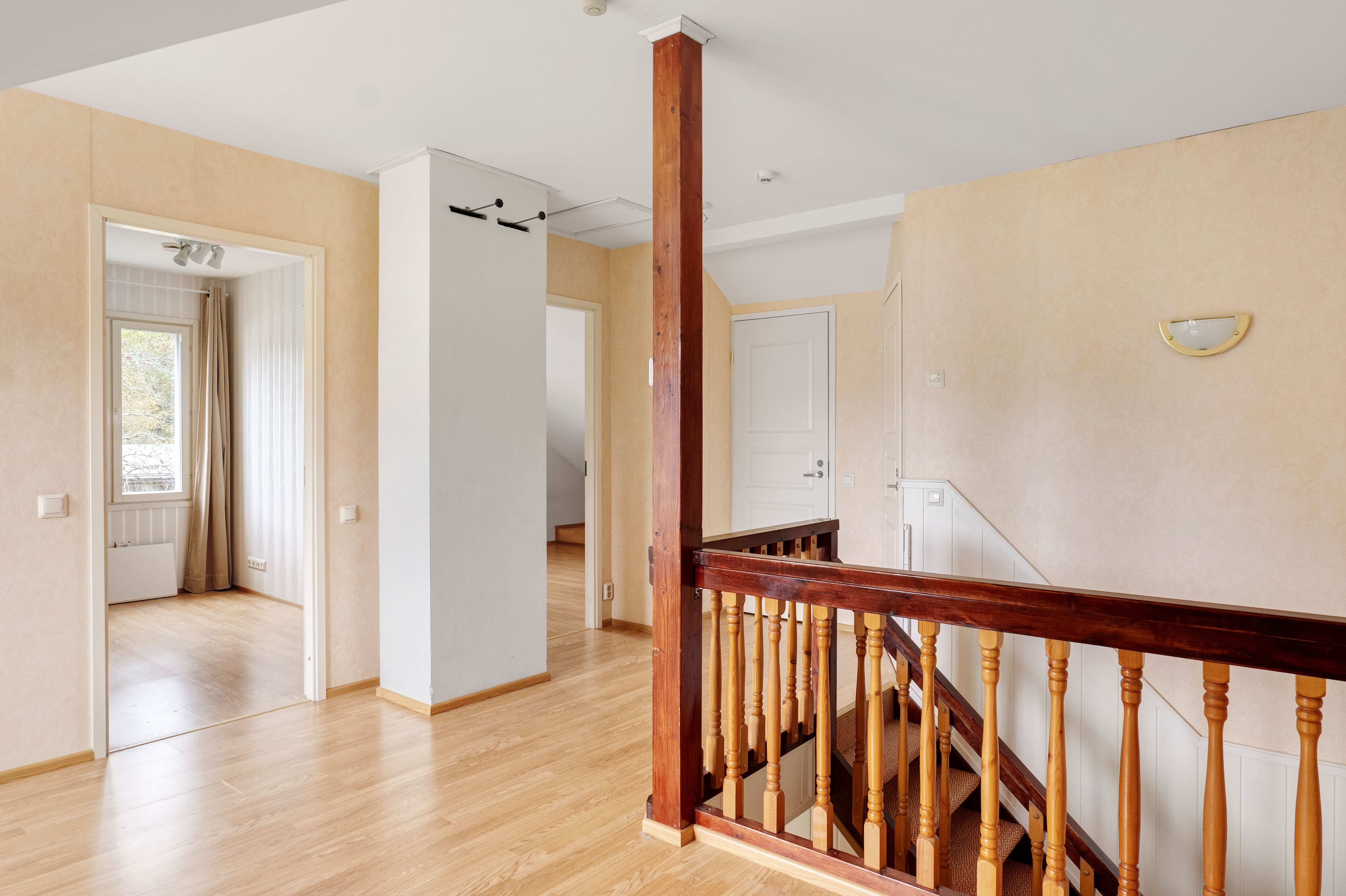 Noin 125 m2 paritalon puolikas tarjoaa juuri sen, mitä nykypäivän perhe kaipaa: Kolme kerrosta toimivaa tilaa, oma sauna ja autotalli, kaksi kylpyhuonetta, vähintään kolme makuuhuonetta ja lämmin olohuone, jossa takan ääressä syksyn sade kuulostaa lohduttavalta. Huoneisto muuntuu hienosti perheen muuttuvien tarpeiden mukaan, koska: Yläkerran aulatilasta saat helposti kevyellä väliseinällä ja väliovella yhden lisämakuuhuoneen. Alimman kerroksen sisäänkäynnin yhteydessä on myös asuinkäytössä ollut huone.