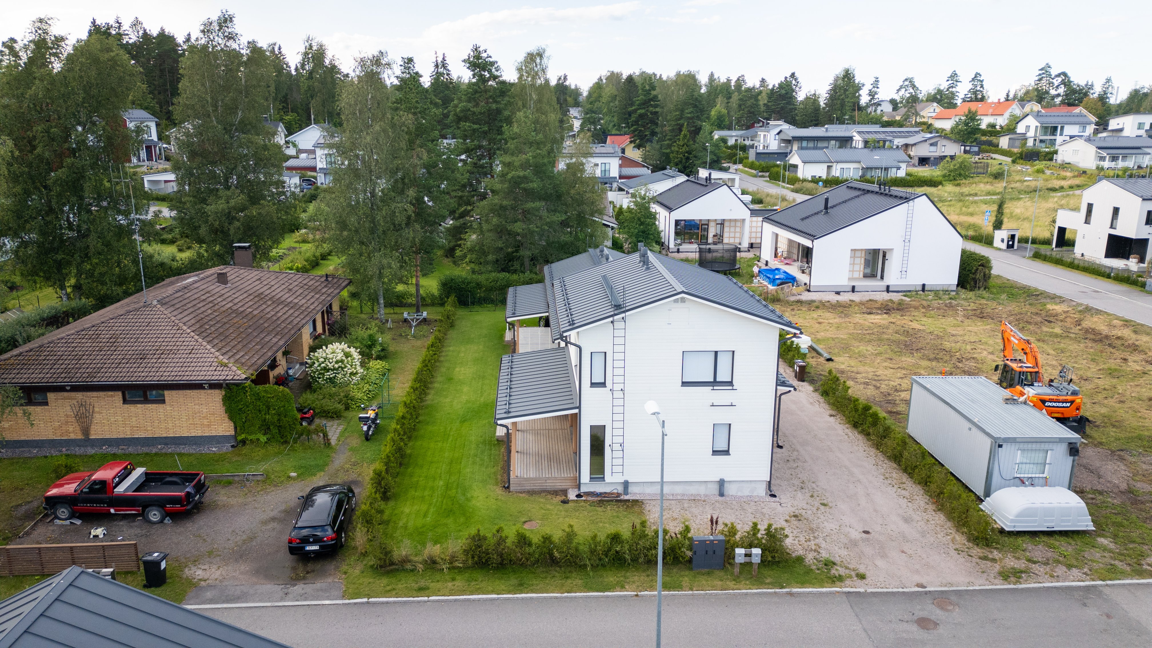 Uusi ja valoisa omakotitalo Espoon Kurttilassa tarjoaa erinomaiset puitteet mukavaan asumiseen. Tämä vuonna 2023 valmistunut talo sijaitsee rauhallisella asuinalueella, lähellä merta ja metsää, mikä tekee siitä ihanteellisen paikan luonnonläheisyyttä arvostavalle perheelle.