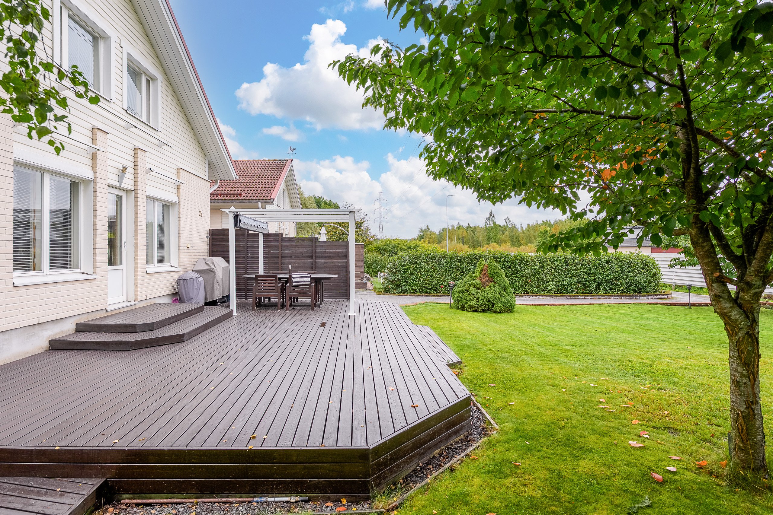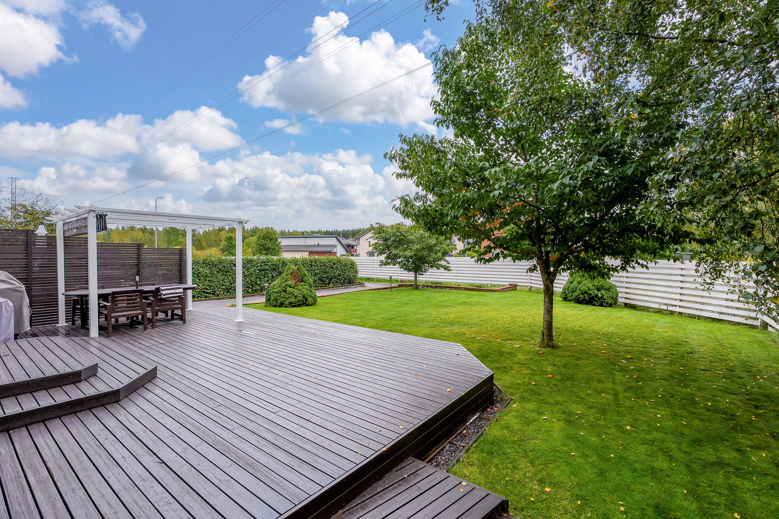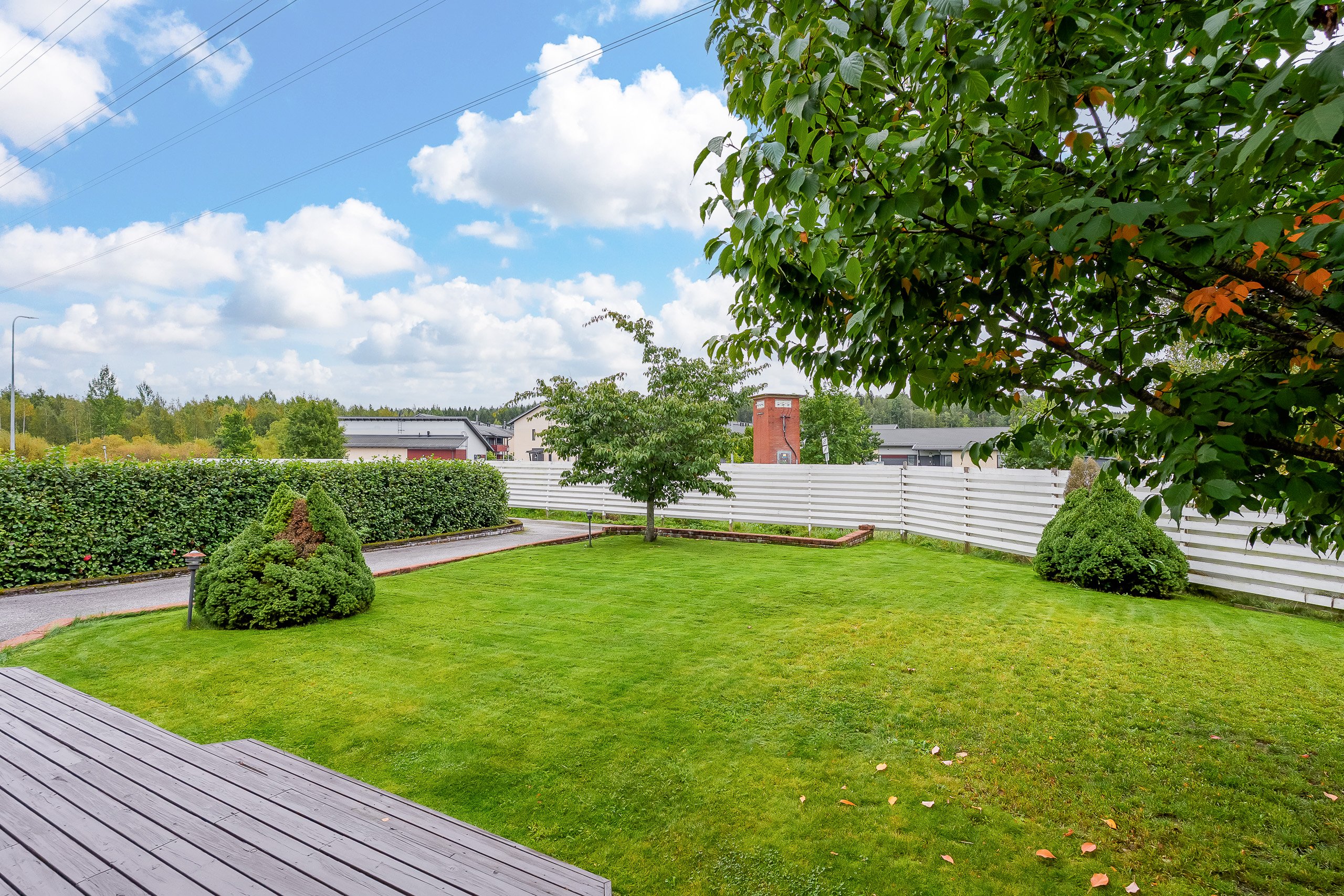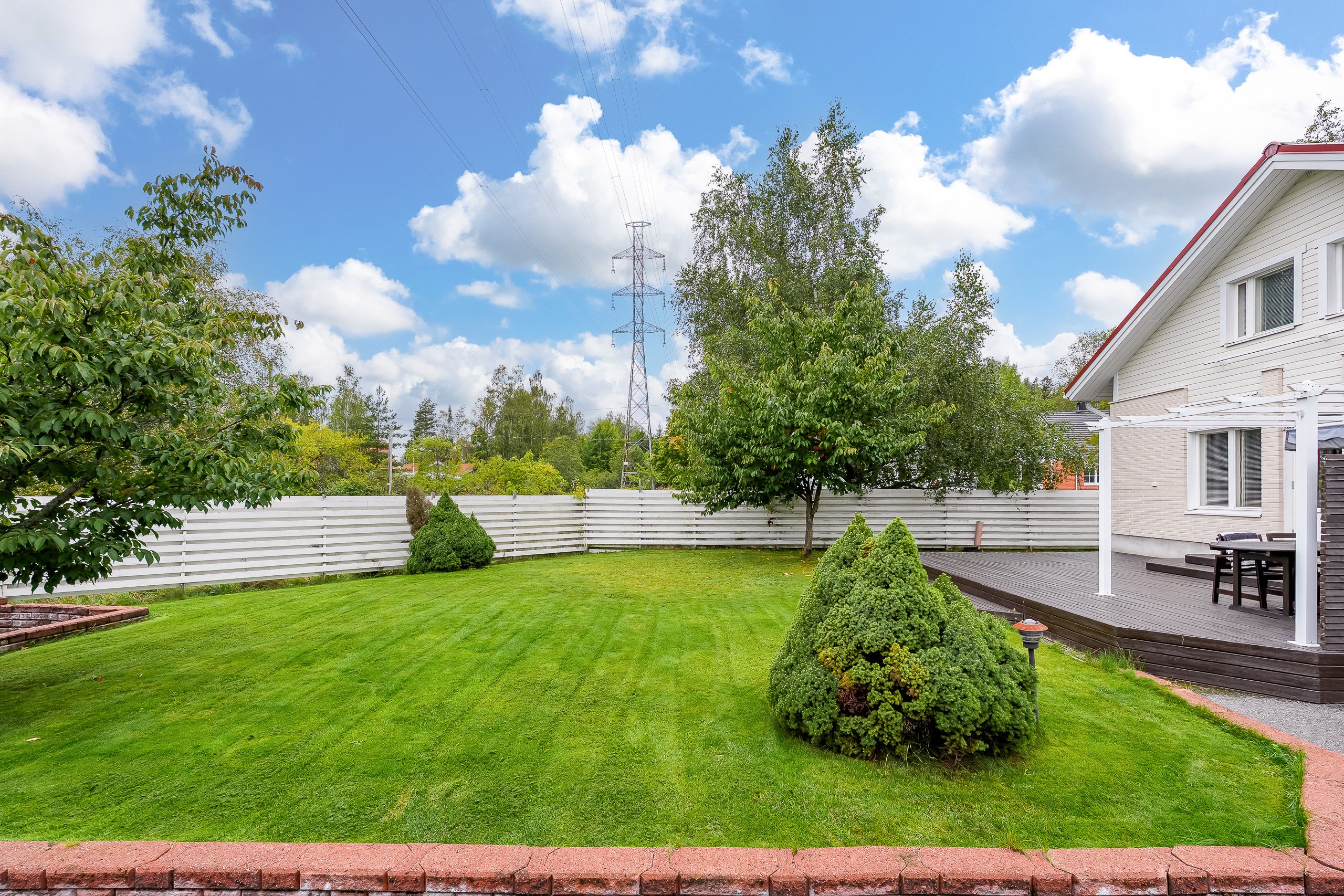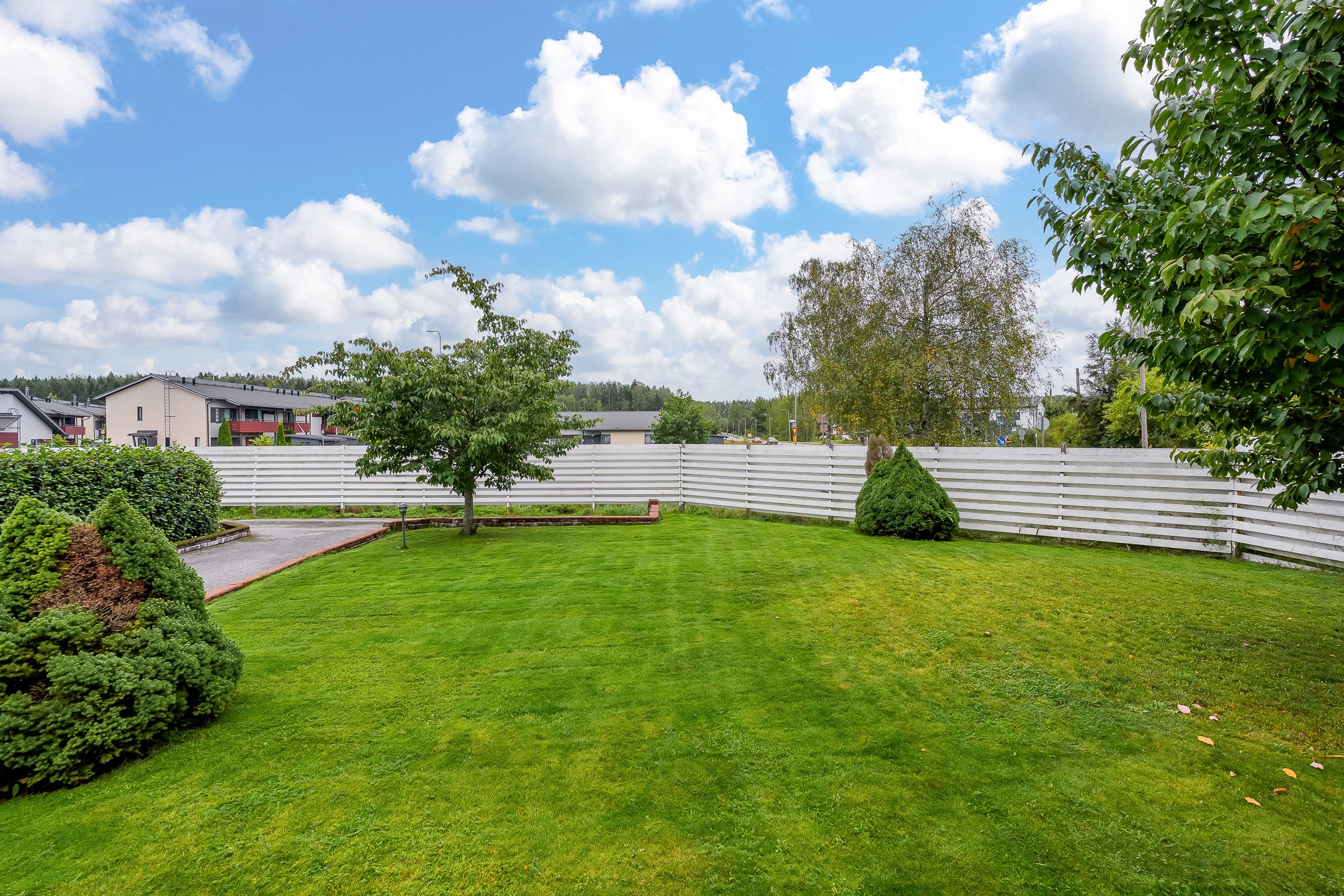 Aurinkoinen piha tarjoaa runsaasti tilaa oleskeluun, leikkeihin, puutarhanhoitoon tai vaikka kesäjuhlien järjestämiseen. Täällä voit nauttia kesäpäivistä juuri omalla tavallasi.