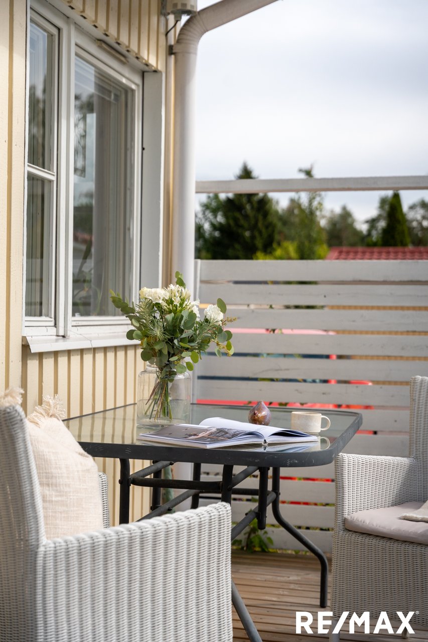 Olohuoneesta on käynti etelään avautuvalle terassipihalle, jossa voit nauttia auringosta ja rauhoittavasta ympäristöstä.
