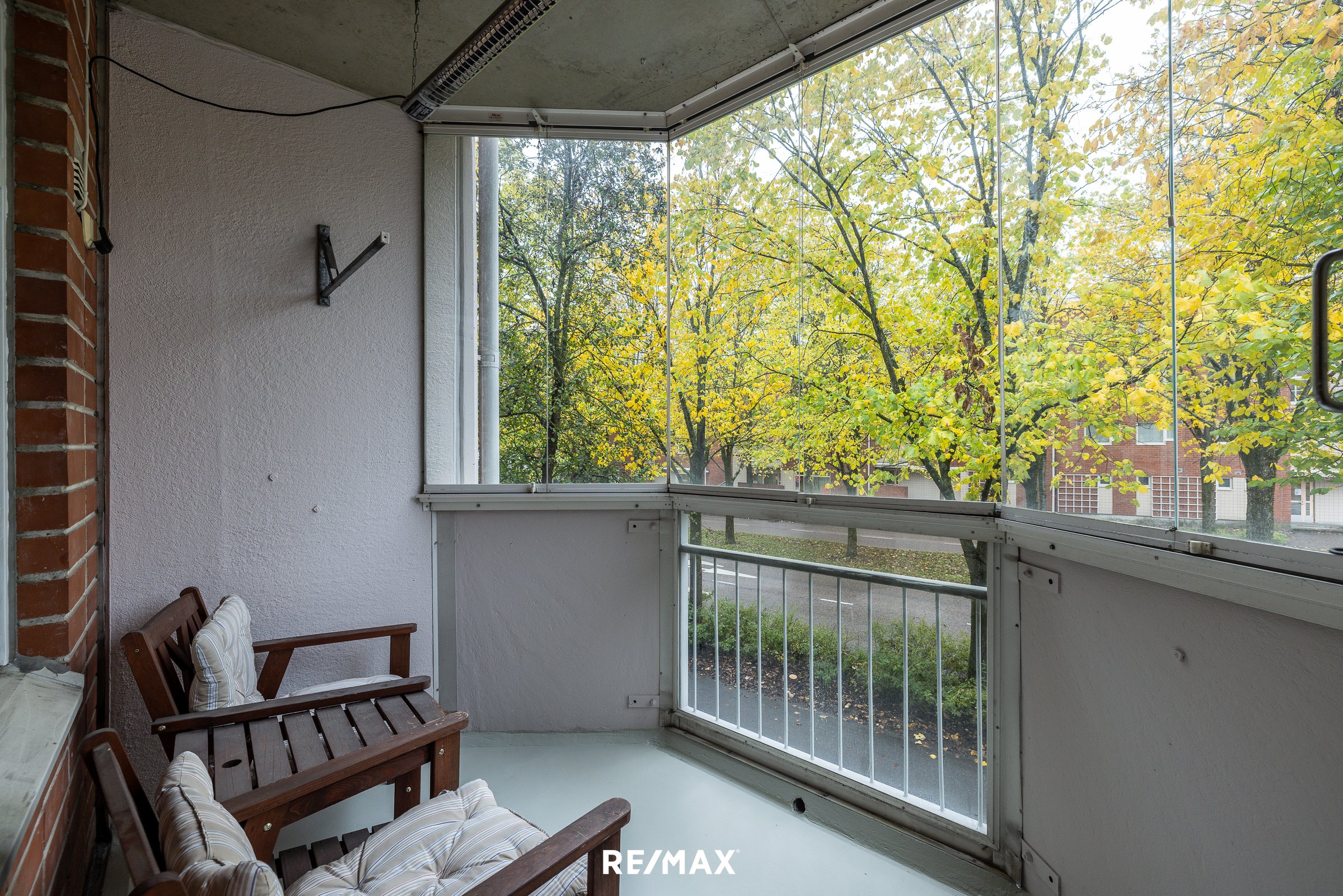 Asunnossa on kaksi makuuhuonetta, tilava olohuone, keittiö sekä oma sauna. Lasitettu länsiparveke tarjoaa mukavan paikan nauttia ilta-auringosta.