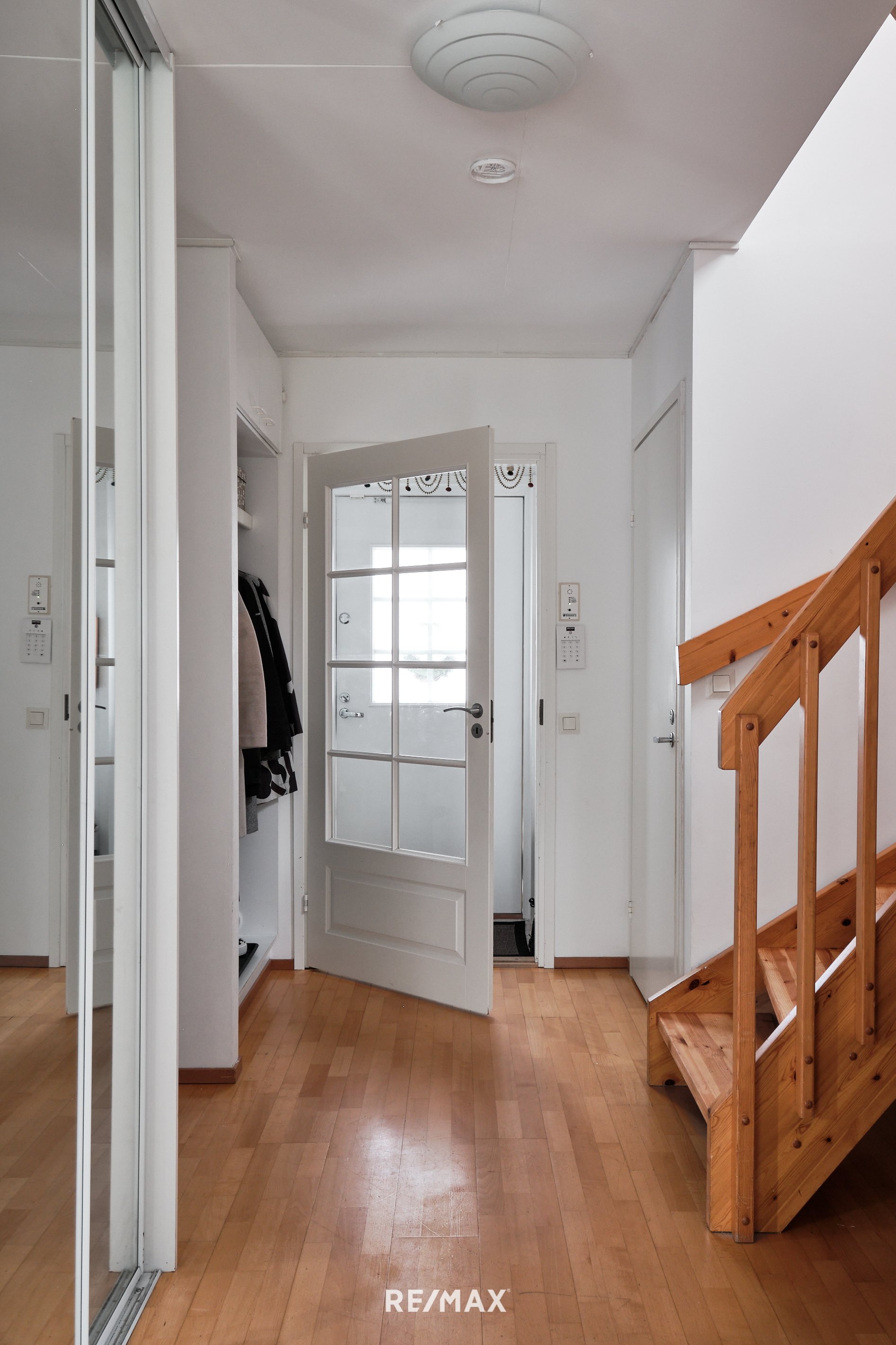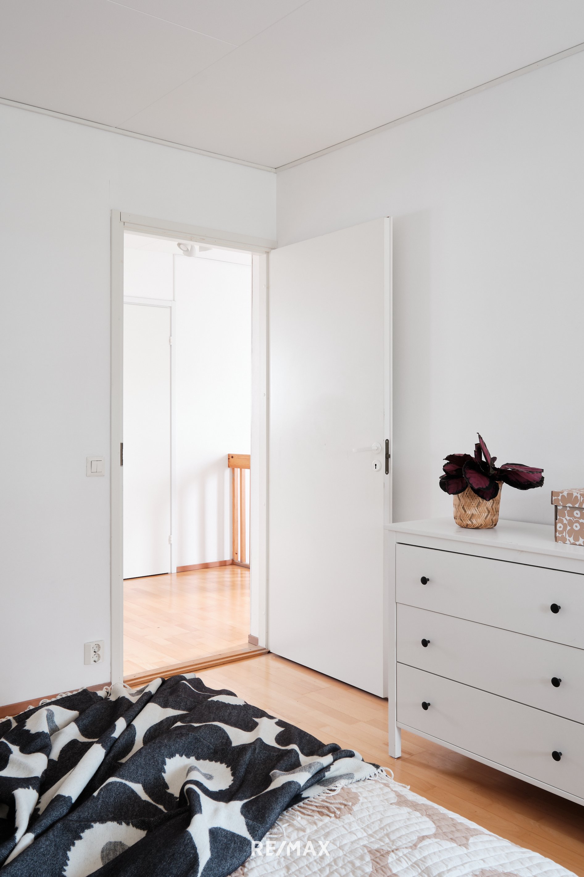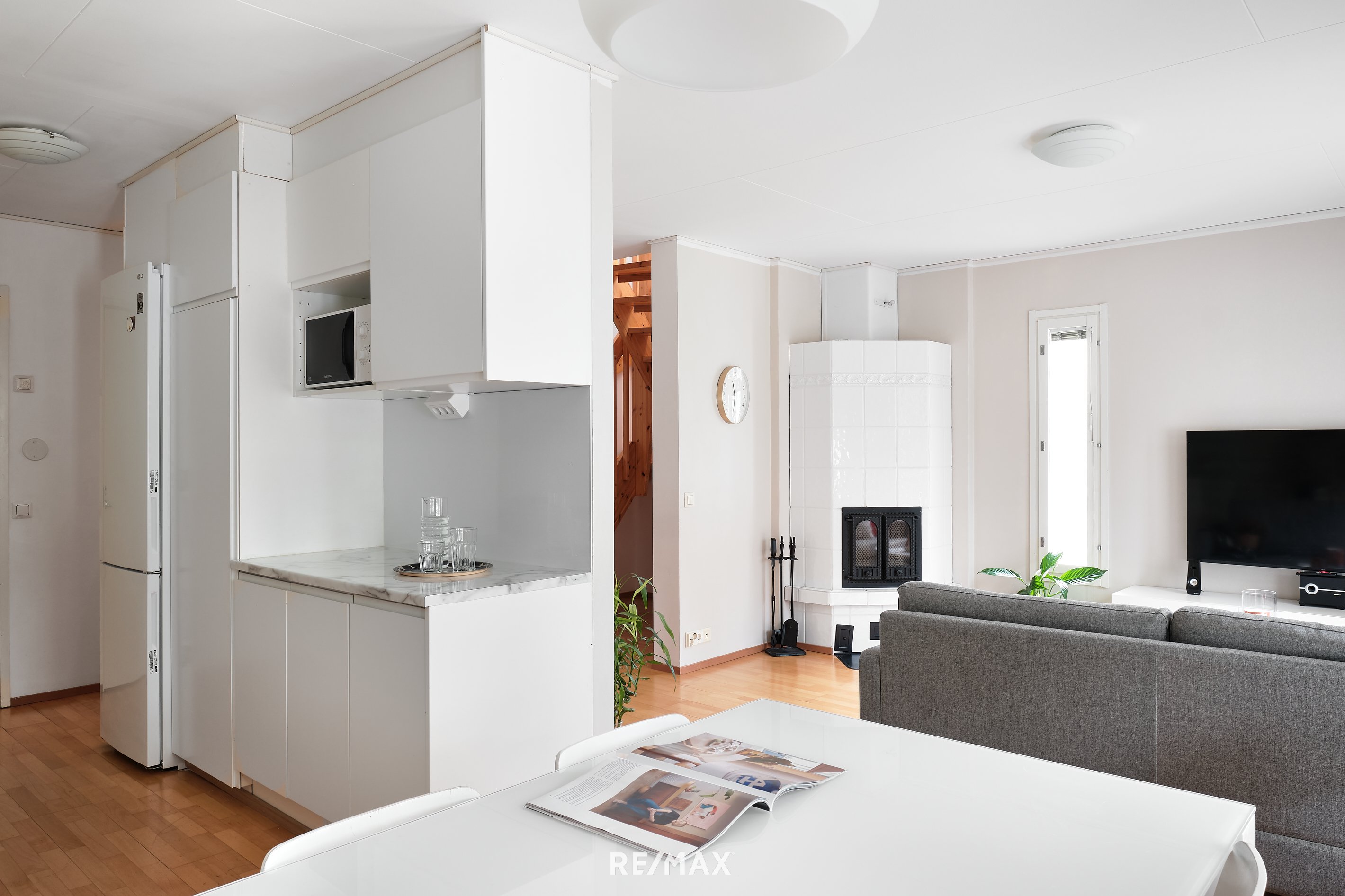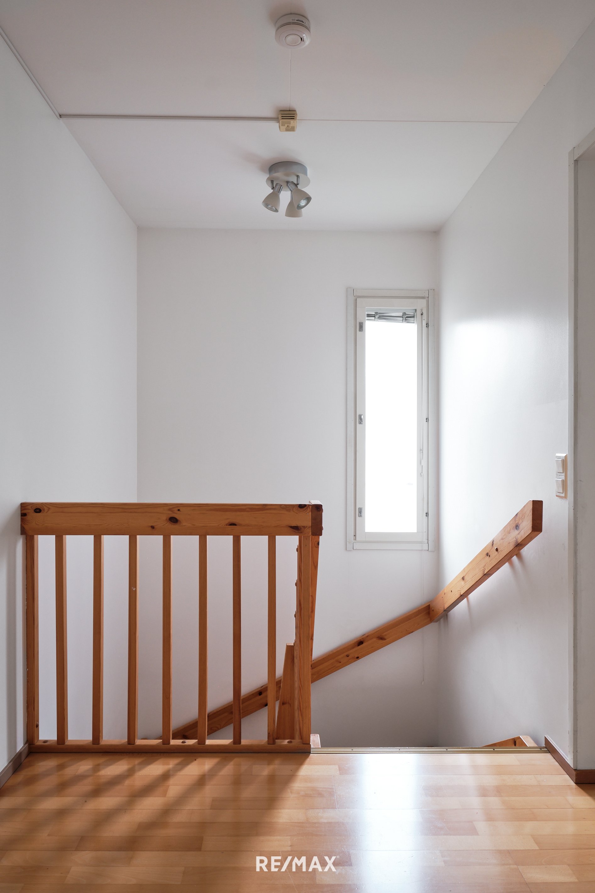 Tässä valoisassa kodissa on erinomainen pohjaratkaisu. Huoneiston vaaleaa keittiötä on päivitetty vuonna 2024. Keittiössä on reilusti kaappi- ja laskutilaa sekä paikka suuremmallekin ruokailuryhmälle. Olohuoneessa tunnelmaa ja lämpöä asumiseen tuo klassisen kaunis varaava takka. Alakerrassa on lisäksi erillinen wc sekä arjen pyykkihuoltoa sujuvoittava kodinhoitohuone. Yläkerrassa on kolme tilavaa makuuhuonetta, joiden kaapistoissa on hyvin säilytystilaa. Yläkerrassa on yhtiön toimesta v.2011 remontoitu tyylikäs kylpyhuone ja sauna. Saunasta pääset nopeasti vilvoittelemaan päämakuuhuoneen yhteydessä olevalle parvekkeelle. Makuuhuoneiden kaapistojen lisäksi säilytystilaa on eteisessä sekä ulko-oven viereisessä varastossa.
