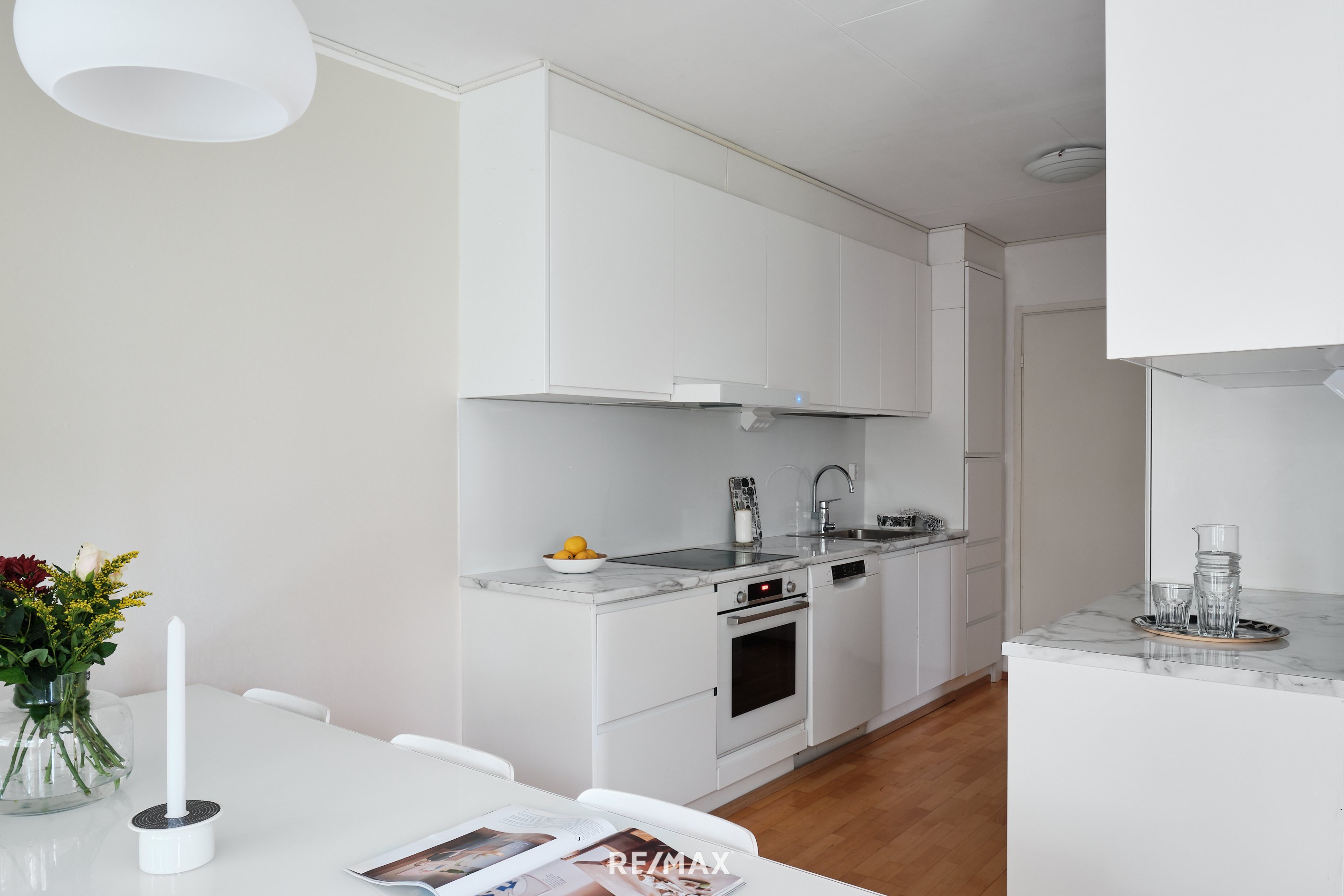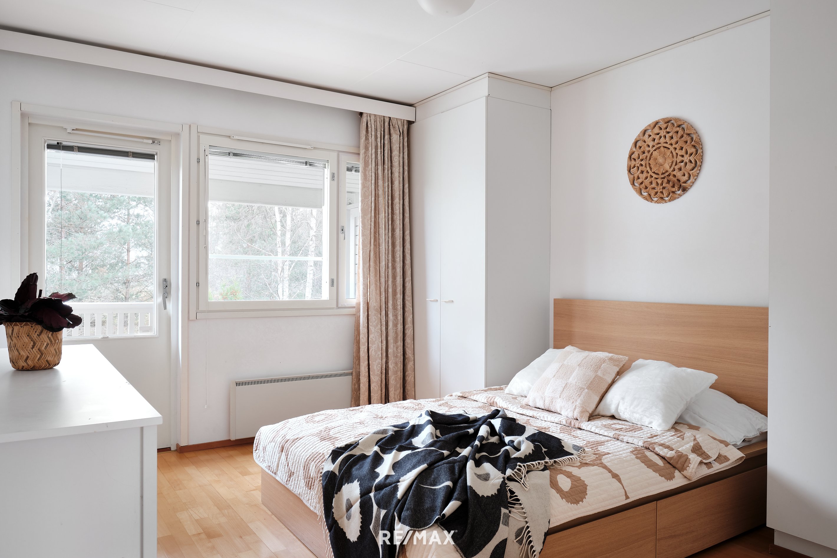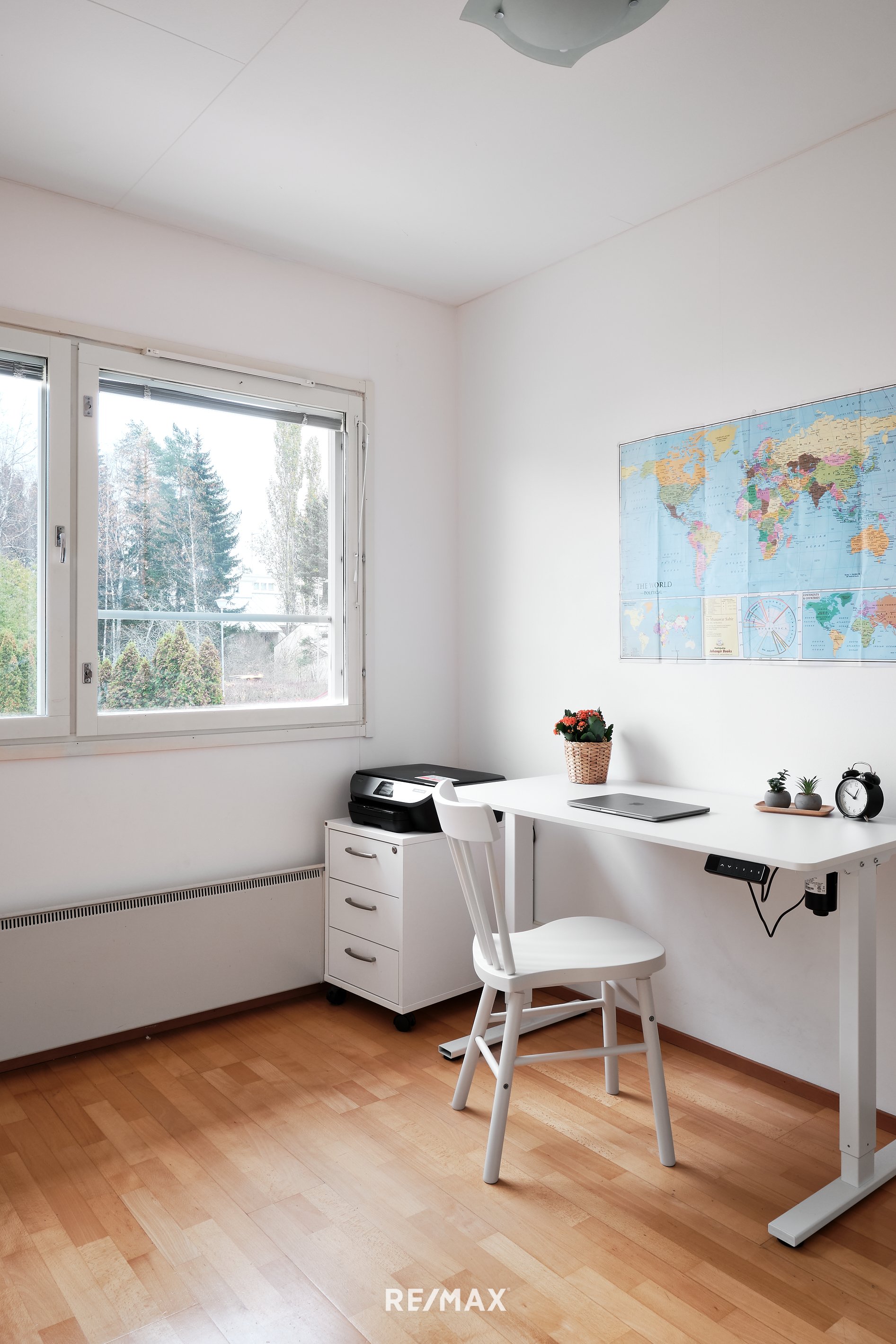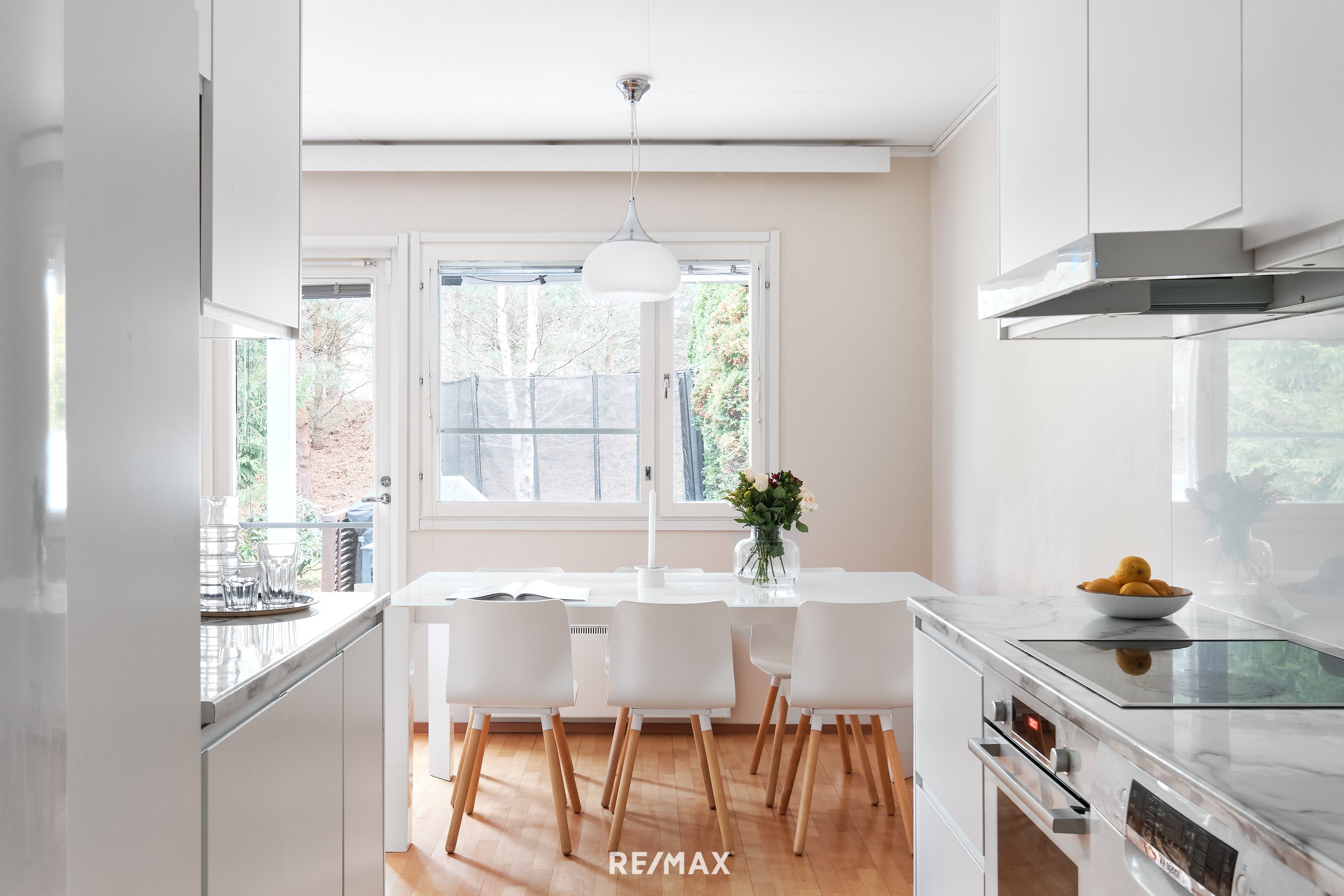 Tässä valoisassa kodissa on erinomainen pohjaratkaisu. Huoneiston vaaleaa keittiötä on päivitetty vuonna 2024. Keittiössä on reilusti kaappi- ja laskutilaa sekä paikka suuremmallekin ruokailuryhmälle. Olohuoneessa tunnelmaa ja lämpöä asumiseen tuo klassisen kaunis varaava takka. Alakerrassa on lisäksi erillinen wc sekä arjen pyykkihuoltoa sujuvoittava kodinhoitohuone. Yläkerrassa on kolme tilavaa makuuhuonetta, joiden kaapistoissa on hyvin säilytystilaa. Yläkerrassa on yhtiön toimesta v.2011 remontoitu tyylikäs kylpyhuone ja sauna. Saunasta pääset nopeasti vilvoittelemaan päämakuuhuoneen yhteydessä olevalle parvekkeelle. Makuuhuoneiden kaapistojen lisäksi säilytystilaa on eteisessä sekä ulko-oven viereisessä varastossa.
