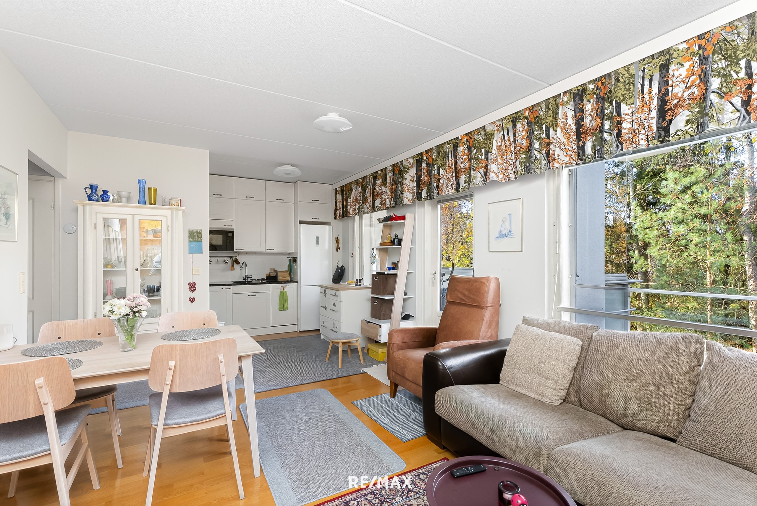 Asunto on hissitalon ylimmässä kerroksessa ja siinä on käytännöllinen pohjaratkaisu, joka kattaa 69 neliömetriä. Avokeittiössä on laadukkaat kivitasot ja kaikki tarvittavat kodinkoneet, kuten astianpesukone ja keraaminen liesi, jotka tekevät ruoanlaitosta sujuvaa. Olohuoneessa, eteisessä ja makuuhuoneissa on kauniit parkettilattiat. Avokeittiön ja olohuoneen muodostava tila tuo asuntoon tilavuutta. Oma sauna kruunaa kokonaisuuden, ja rentoutumaan pääset lasitetulle parvekkeelle omassa rauhassa katselemaan metsäistä näköalaa.