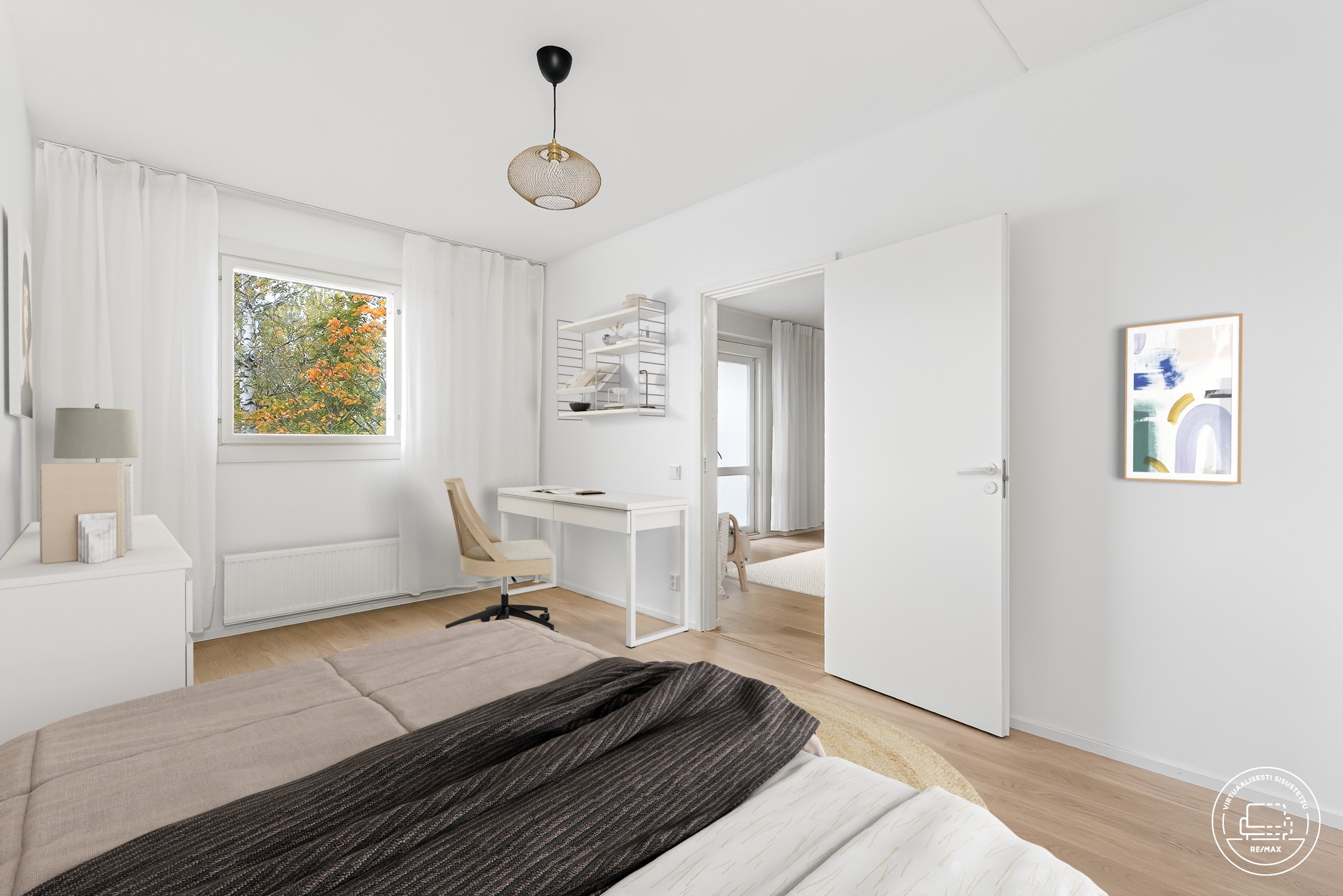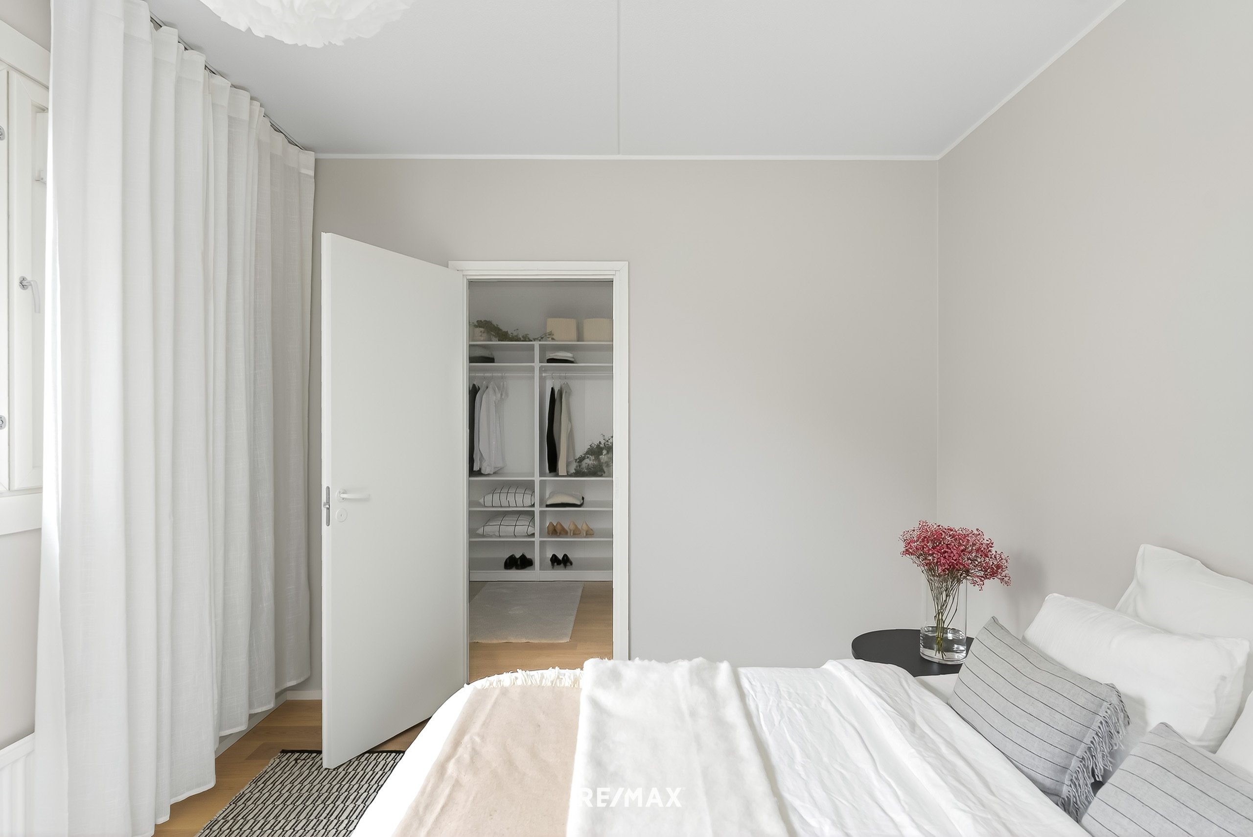 Kaikki huoneet ovat tilavia ja avaria. Makuuhuoneiden välissä on tilava vaatehuone, "walk-in closet" laajoine kaapistoineen, joka hurmaa tyylitietoisen asunnonetsijän. Kylpyhuone on uusittu taloyhtiön toimesta vuonna 2019. Kylpyhuone on modernisoitu uudella allaskaapistolla ja valopeilillä sekä upotetuilla valaisimilla.