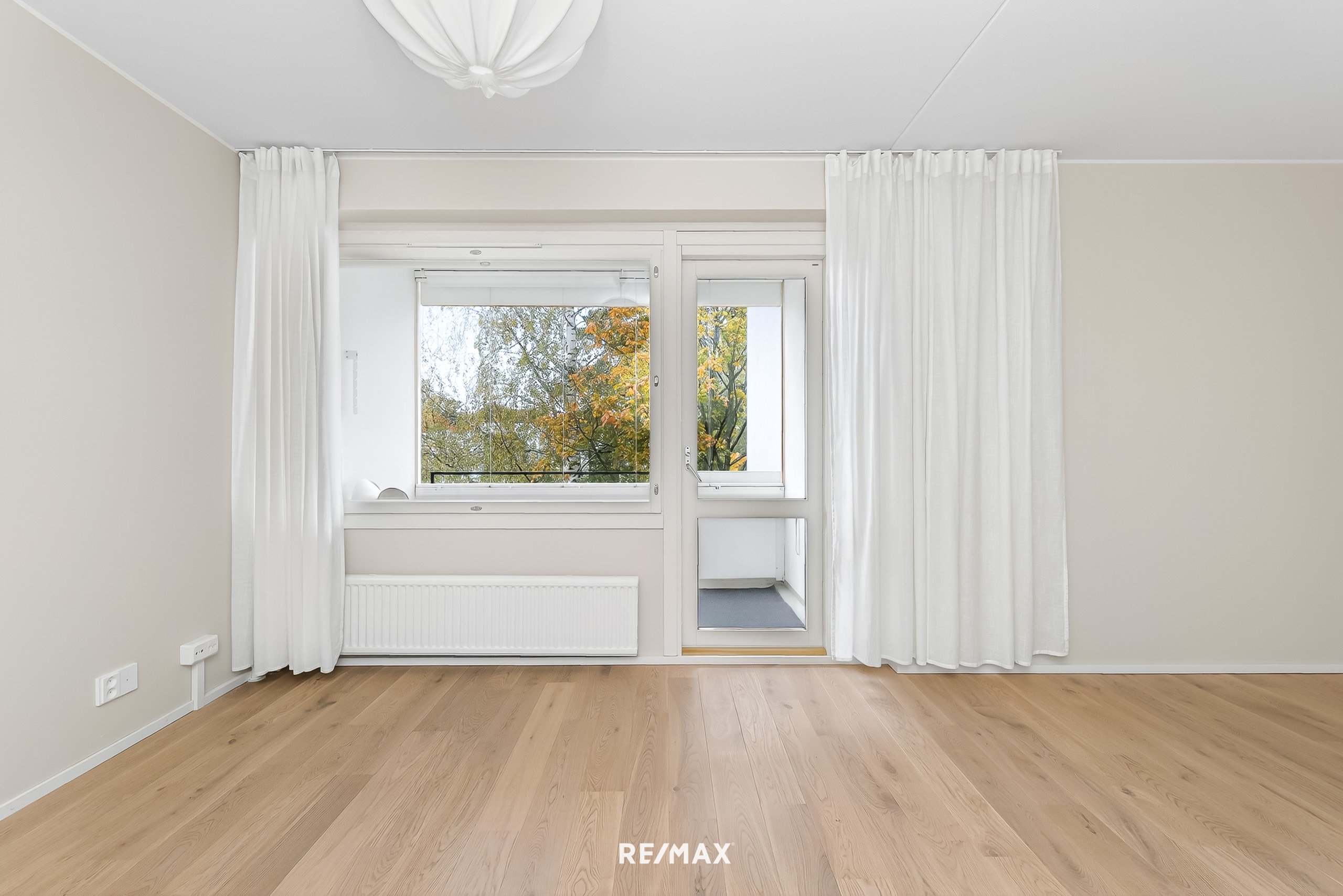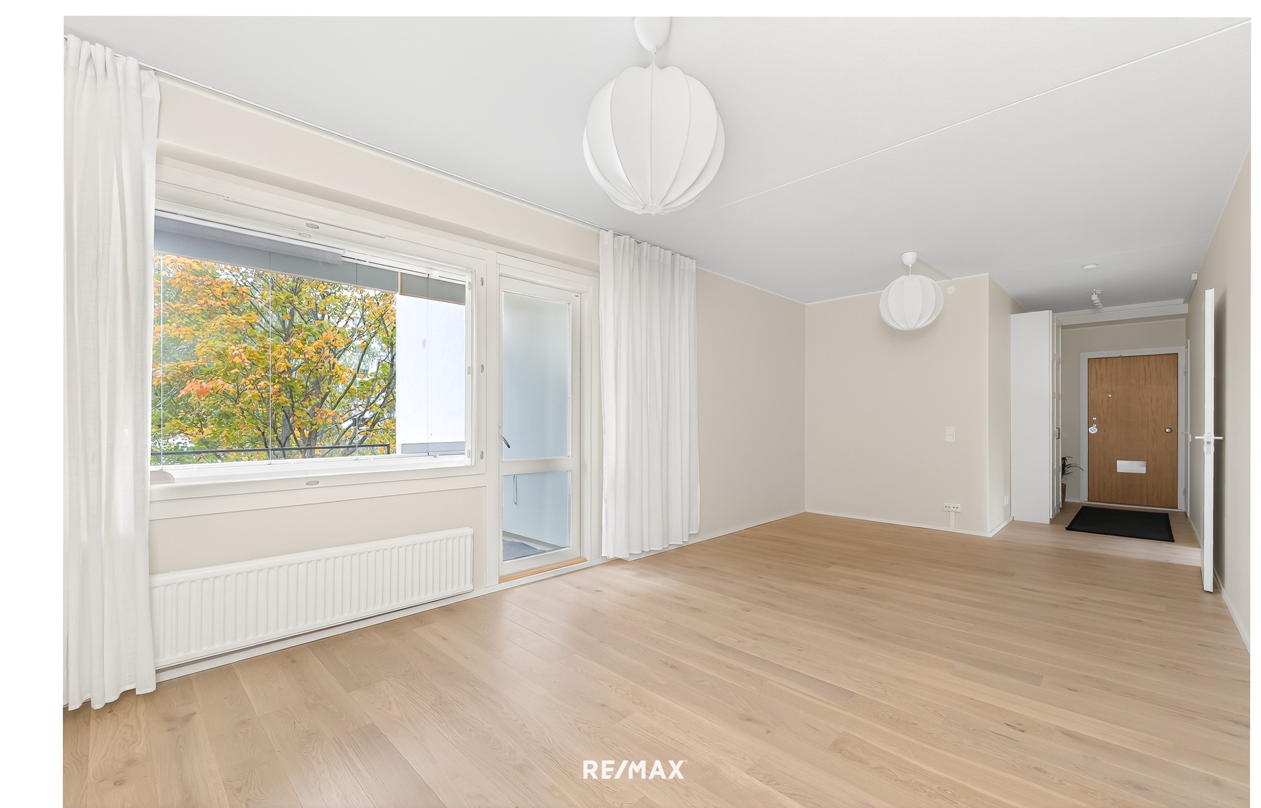 Koko huoneistoon on juuri asennettu uusi valkokuultoinen tammiparketti. Huoneiston väliovet karmeineen on vaihdettu sekä katkaisijat ja pistorasiat uusittu