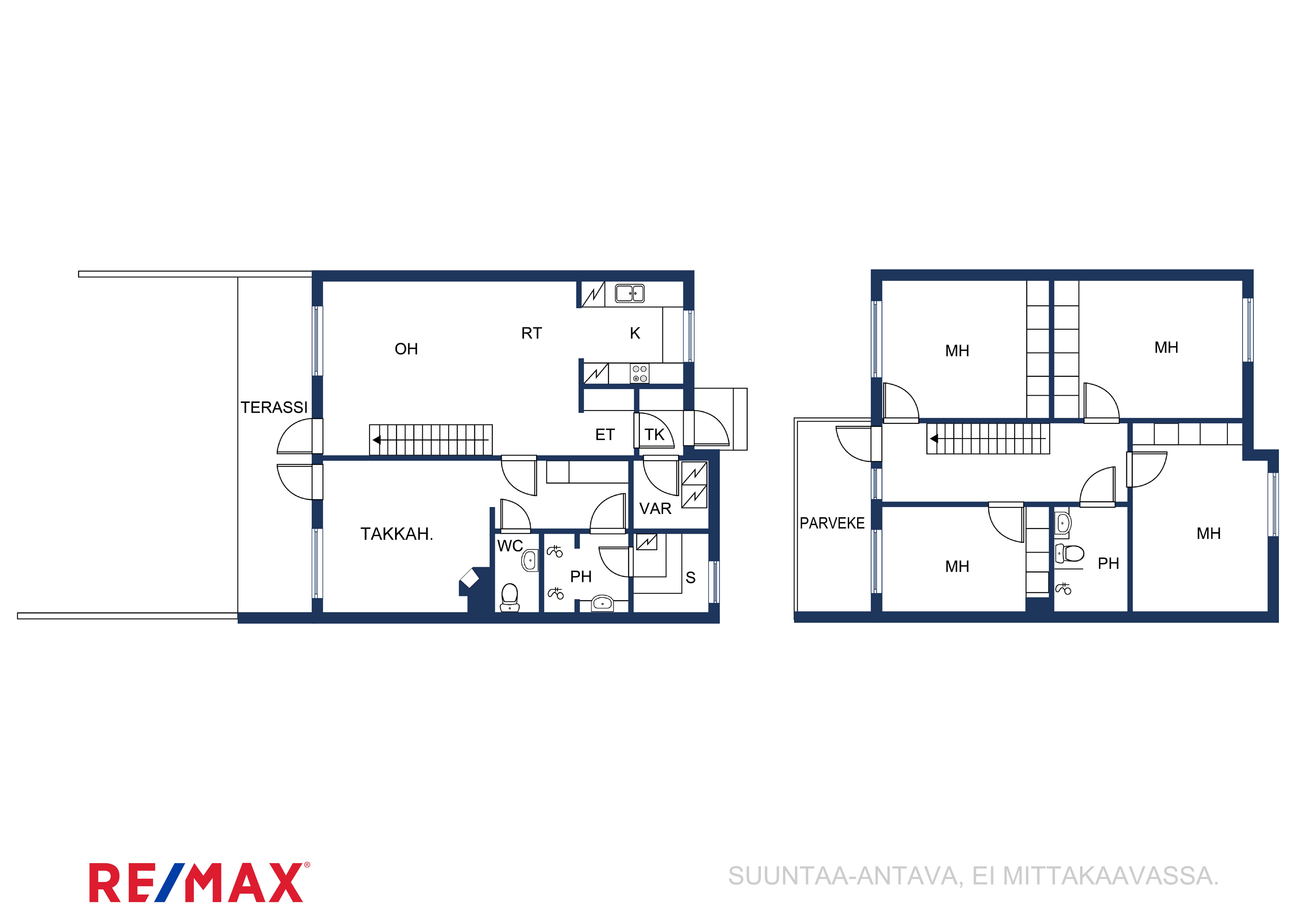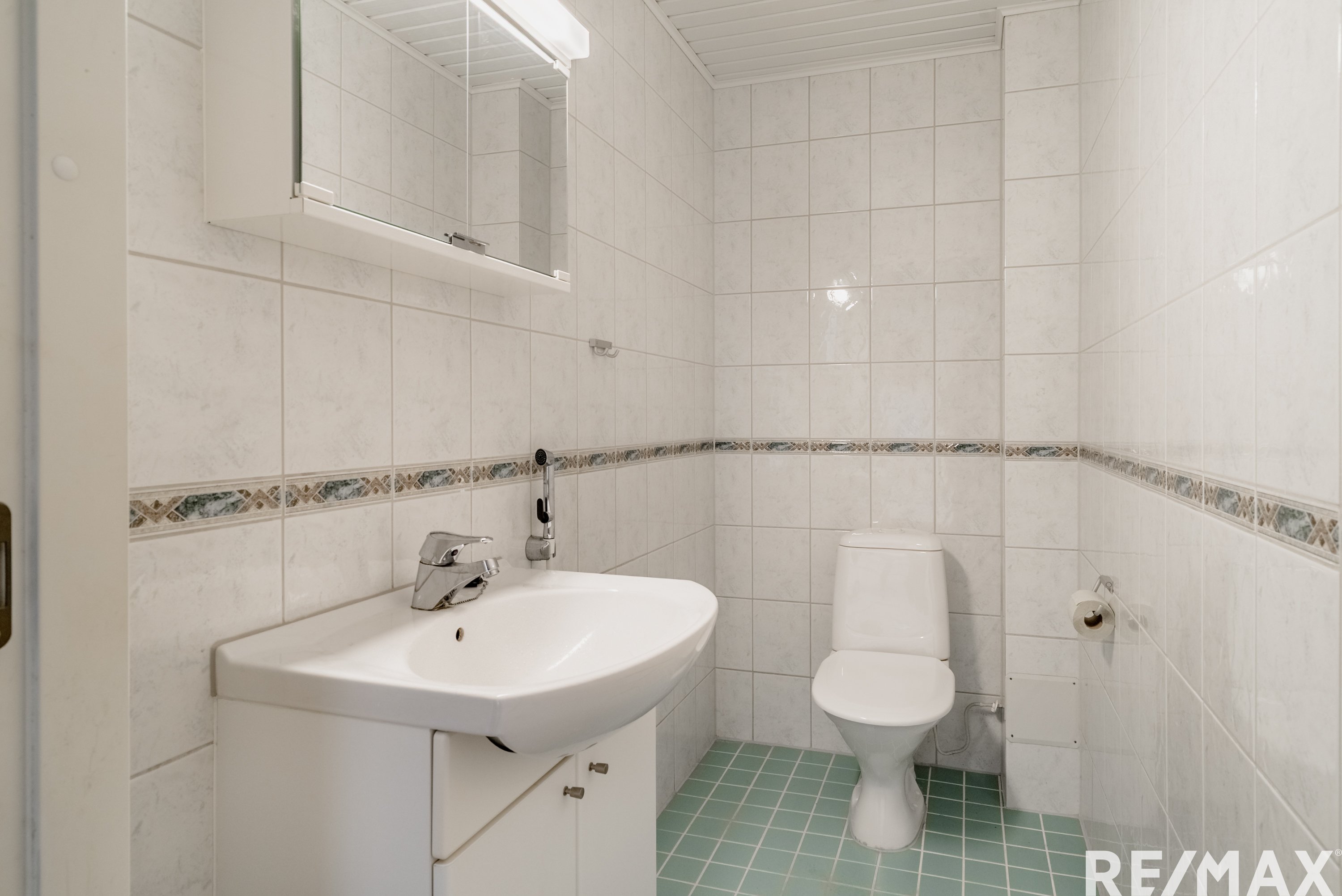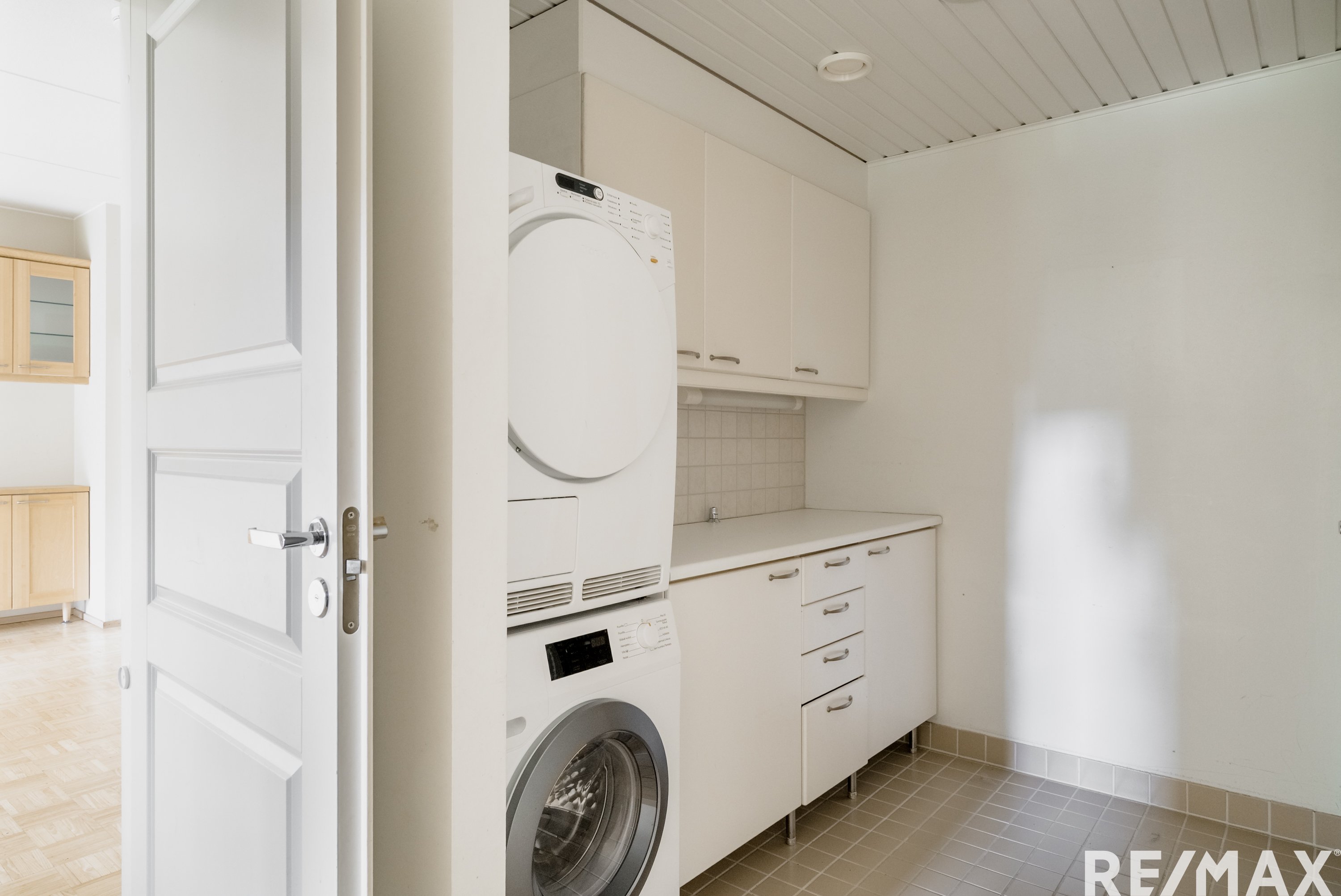 Alakerrassa avautuu kodin sydän: tilava olohuone ja keittiö muodostavat yhtenäisen, valoisan kokonaisuuden. Läpitalon tila tulvii luonnonvaloa, ja olohuoneesta avautuu näkymä tilavalle takapihalle. Alakerrasta löytyy lisäksi kylpyhuone kahdella suihkulla, tilava sauna sekä käytännöllinen kodinhoitohuone, jossa on valmiina pesukone ja kuivausrumpu. Erillinen wc tuo arkeen mukavuutta.