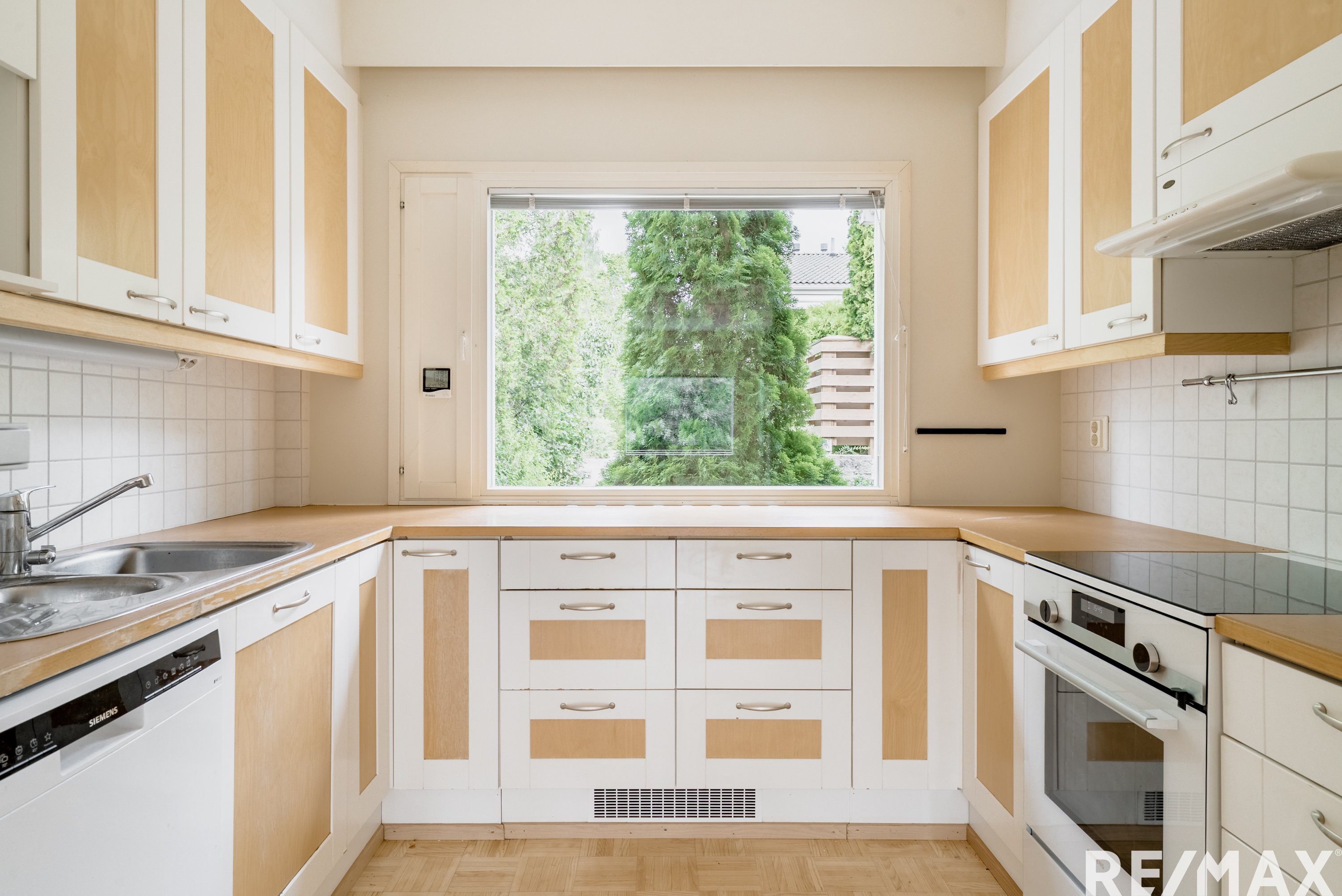 The area offers both public and private schools and kindergartens, including an English-language daycare, Espoo Christian School (daycare and grades 1–9), and the Swedish-speaking Mattlidens school. The services of Iso Omena, from library to medical care, are just a few bus stops away, and there’s ample parking for your own car at the shopping center. The park-and-ride at Iso Omena makes commuting to downtown Helsinki easy and stress-free, with the metro ride from Matinkylä station to Helsinki Central Station taking just 20 minutes even during morning rush hour. Otaniemi is reachable by bike in half an hour. The home is just a stone’s throw from the unique coastal trail, where you can enjoy the ever-changing seascape daily – from autumn storms to the frozen winter sea, and once again to the sunlit, shimmering waters of summer.