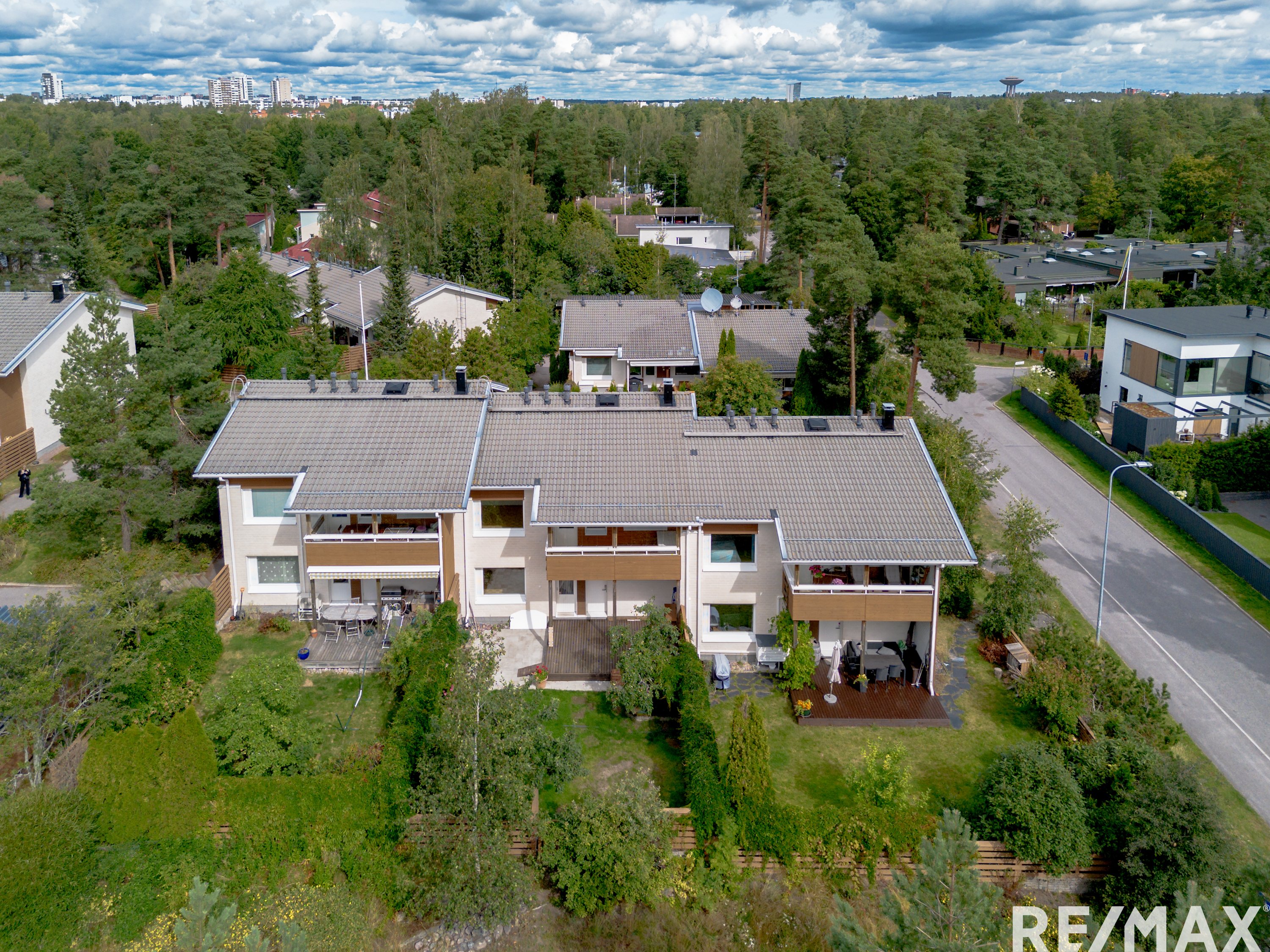 Alueelta löytyy niin julkisia kuin yksityisiä kouluja ja päiväkoteja, mm. englanninkielinen päiväkoti, Espoon kristillinen koulu (päiväkoti- ja peruskoulun luokat 1-9.), ruotsinkielinen Mattlidens, jossa myös IB-linja. Ison Omenan palvelut kirjastosta lääkäripalveluihin löytyvät muutaman bussipysäkin päästä ja omalle autollekin löytyy kauppakeskuksesta hyvin parkkipaikka. Ison Omenan liityntäpysäköinti tekee työmatkasta vaikkapa Helsingin keskustaan vaivatonta ja stressitöntä metromatkan kestäessä Matinkylän metroasemalta Helsingin rautatientorin asemalle 20 minuuttia myös aamuruuhkassa. Otaniemeen pääsee pyörällä puolessa tunnissa. Asunto on kivenheiton päässä ainutlaatuisesta rantaraitista, jossa pääsee päivittäin nauttimaan muuttuvasta merimaisemasta. Syysmyrskyistä siirrytään talven jäätyneeseen meren pintaan ja jälleen taas kesällä auringossa kimmeltävään veteen.