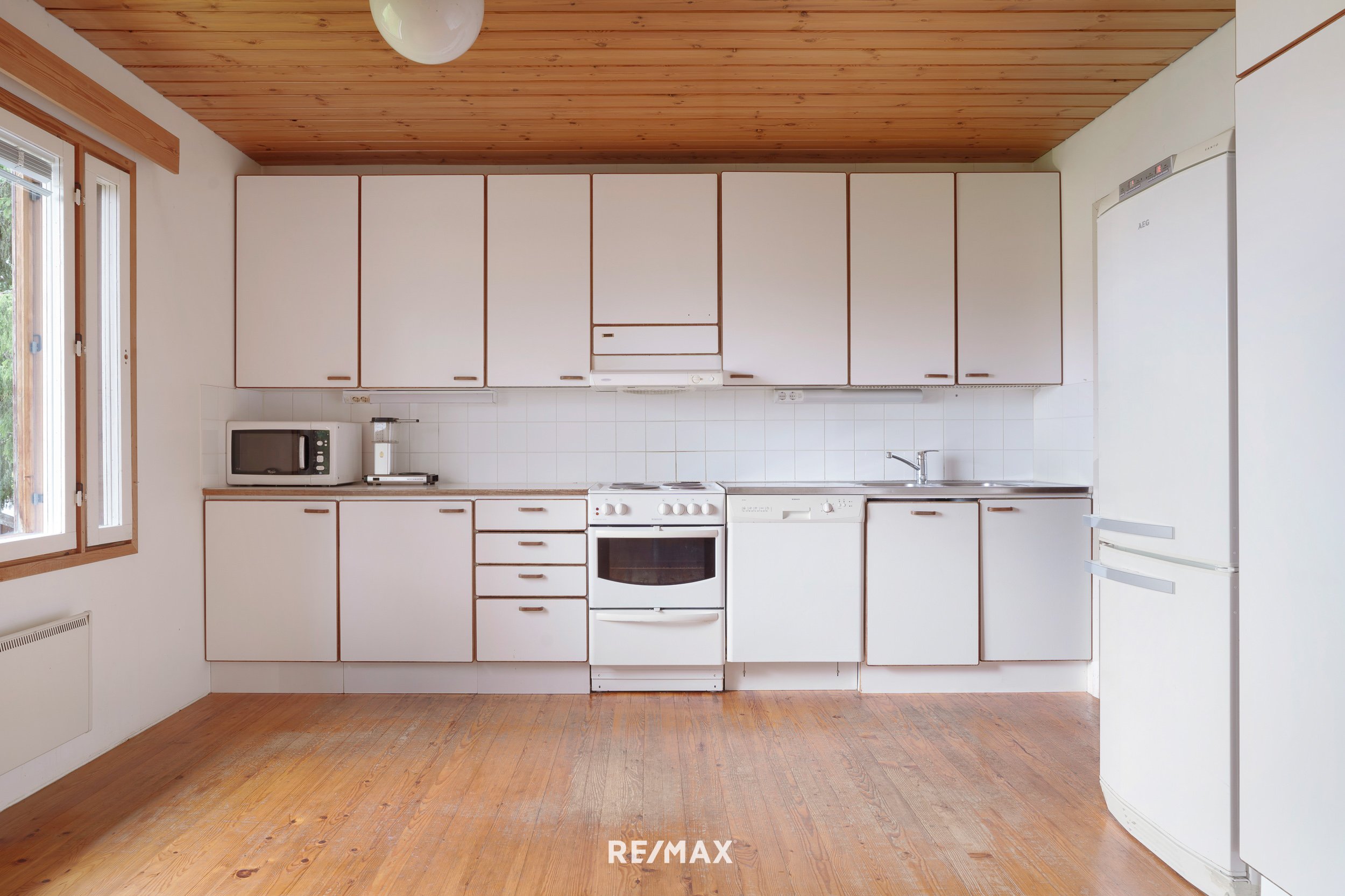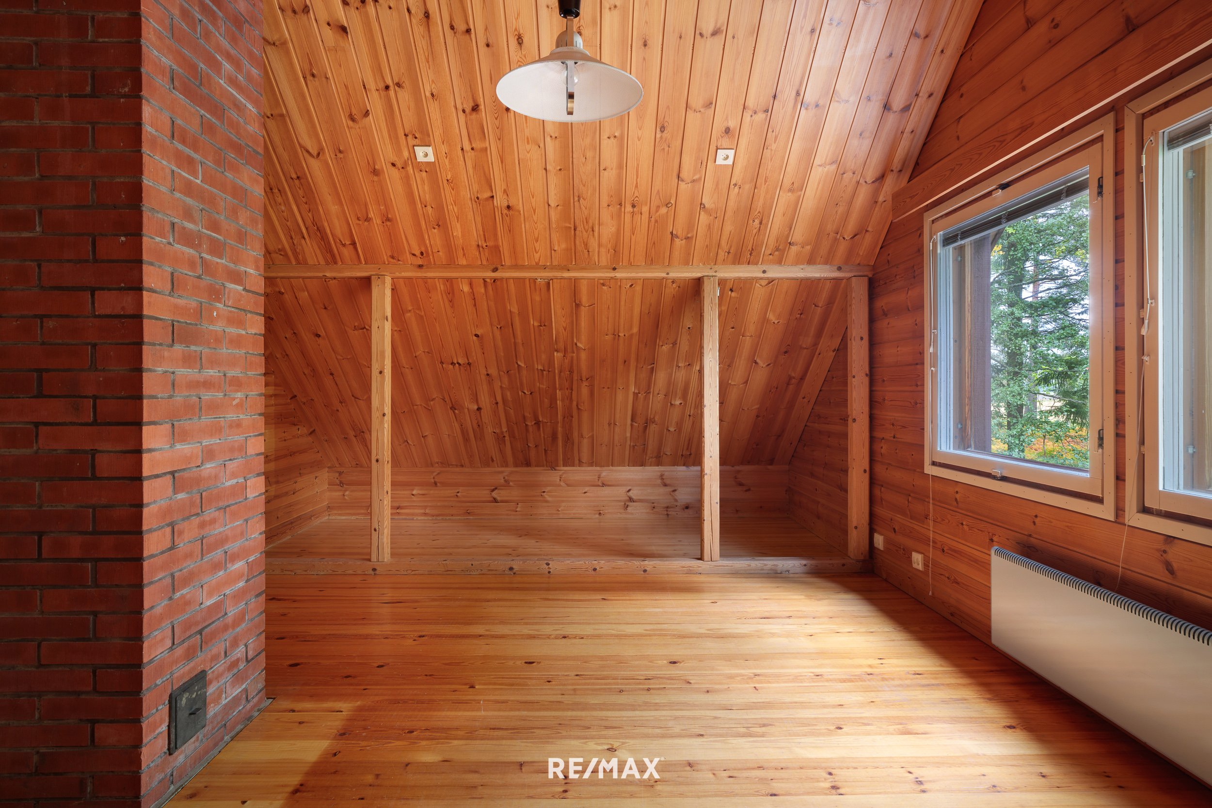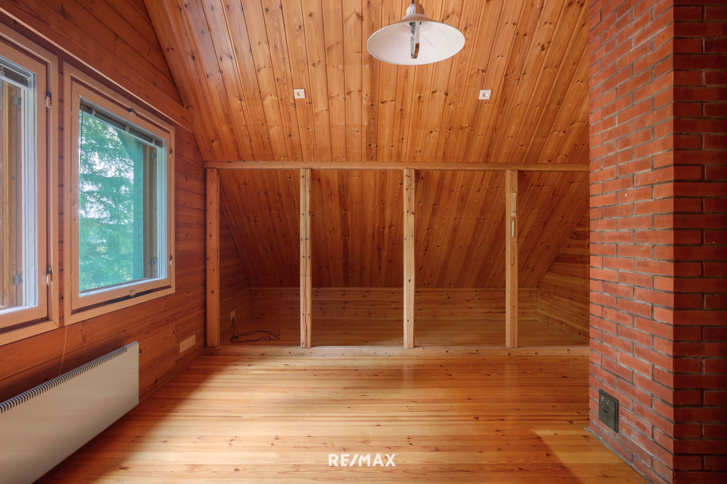 Virallista asuinpinta-alaa on 134 m2, vaan tilaa on monipuolisesti paljon lisääkin: kolme makuuhuonetilaa (joista 2 yläkerran käyttöullakon puolella), olohuone, keittiö, takkahuone sekä kolme wc:tä ja pesutilat puusaunalla varustettuna. Lisänä löytyy piharakennuksia ja autotallitilakin.