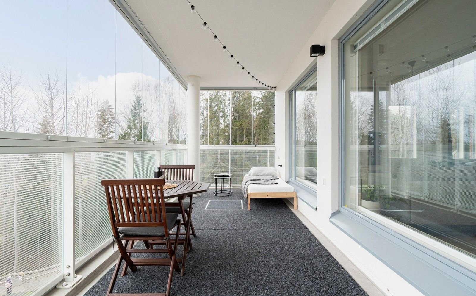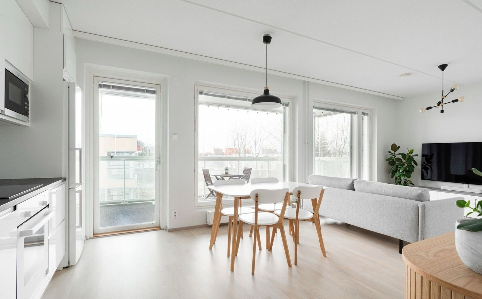 Tämä kaksio hurmaa heti sisään astuttaessa. Kolmannen kerroksen koti on valoisa ja toimiva, ja sen ehdoton kruunu on huikea 18 m2:n lasitettu parveke – kuin toinen olohuone, jossa voit nauttia aamukahvit, illalliset tai vaikka etäpäivää luonnon äärellä.