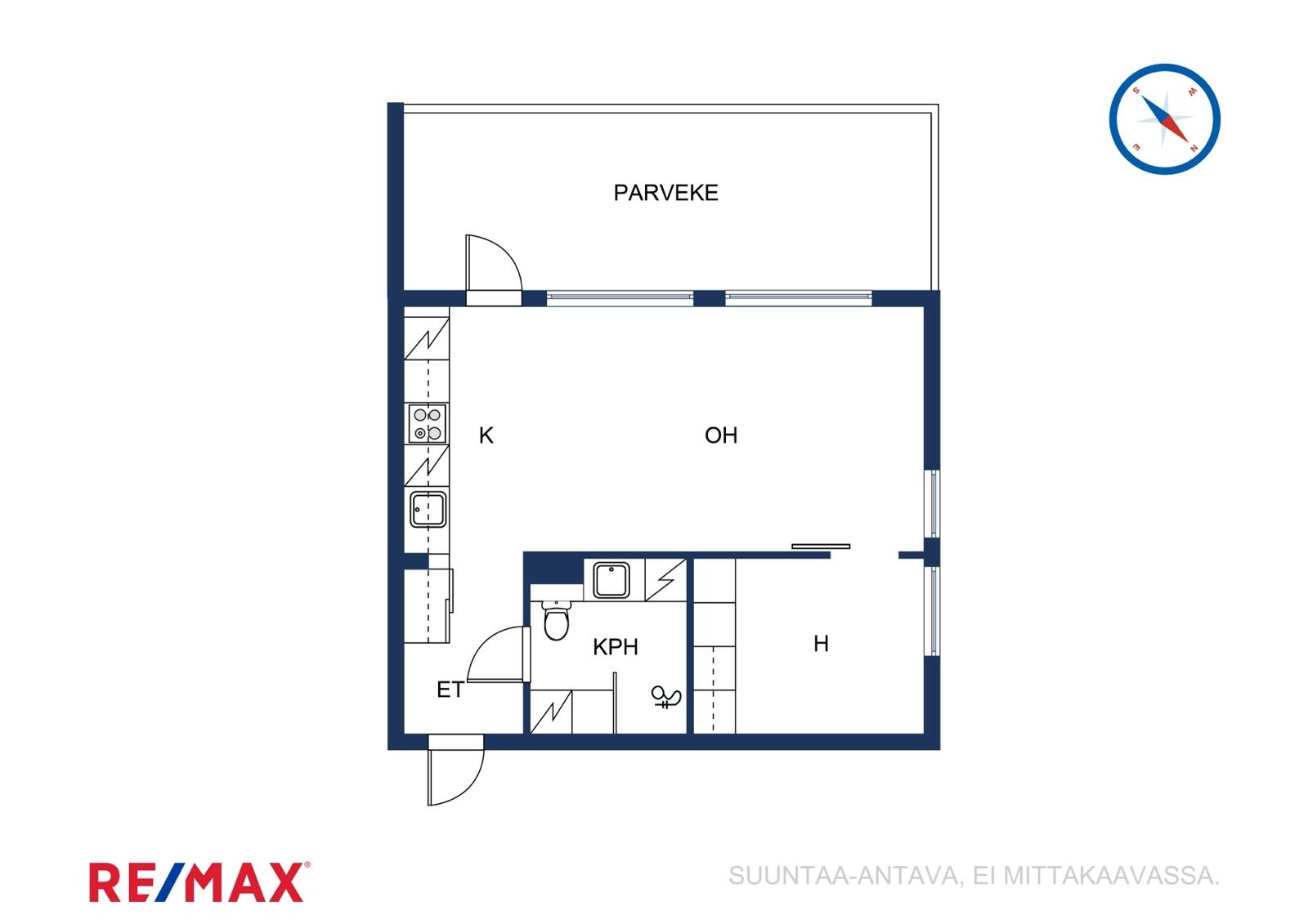 Avokeittiön yhteydessä, käynti parvekkeelle.