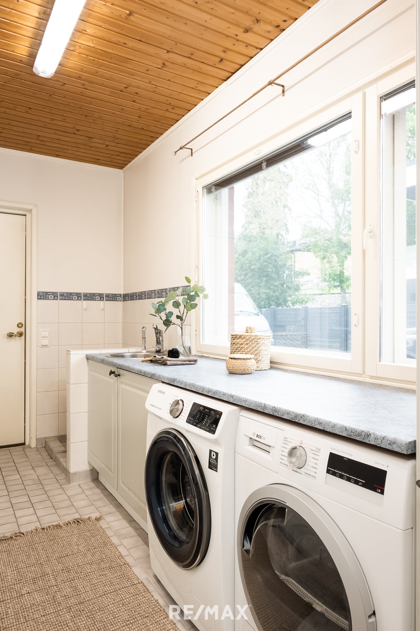 Pöytätaso, pesuallas, kurapiste ja pesukoneliitäntä