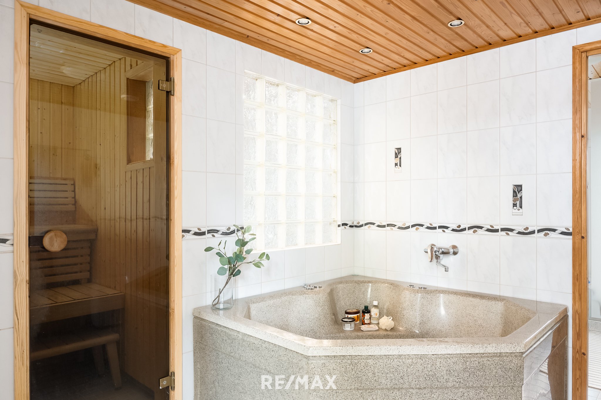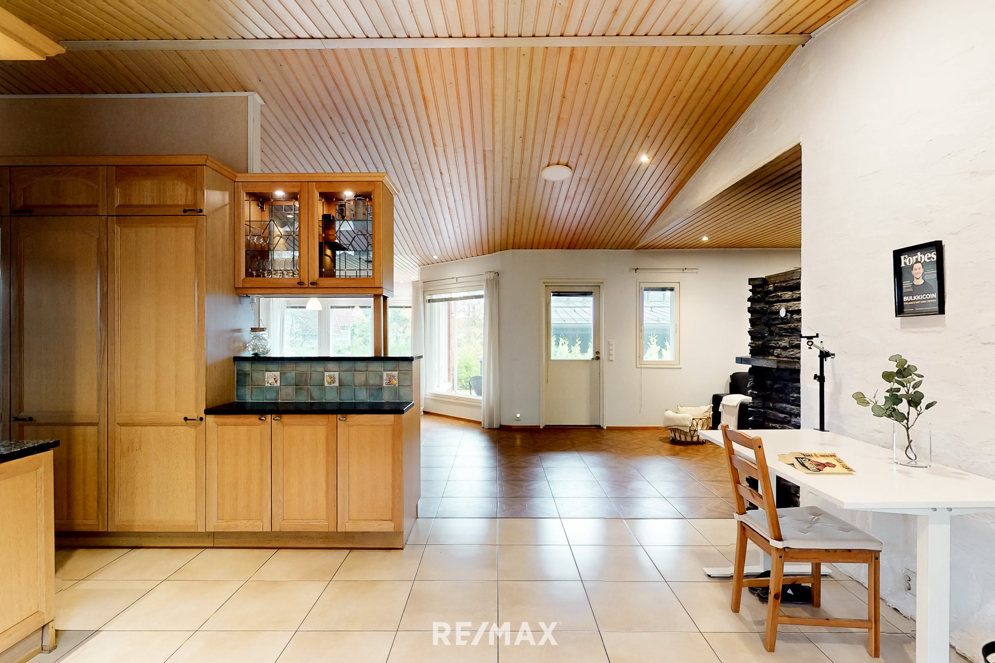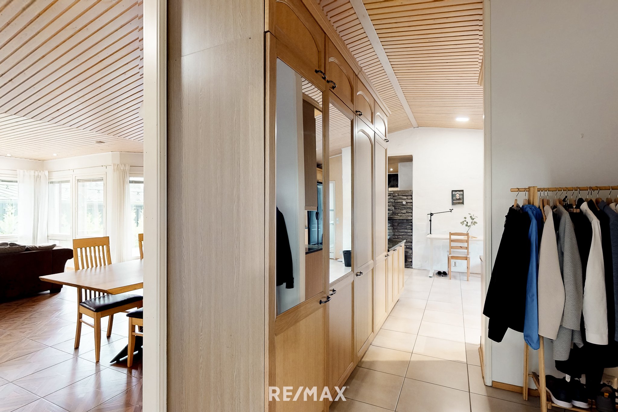 Talo sijaitsee rauhallisella ja vehreällä pientaloalueella Espoon Saunalahdessa, omalla 1004 m2:n suuruisella tonttiosuudella. Suurikokoisella terassilla voit rentoutua kylpypaljussa ja nauttia omasta rauhasta. Etupihalla sijaitsee autokatos ja erillinen varastorakennus, jotka tarjoavat runsaasti säilytystilaa ja käytännöllisyyttä arkeen. Lisäksi talossa on oma autotalli, joka soveltuu erinomaisesti niin auton säilytykseen kuin harrastetilaksi.