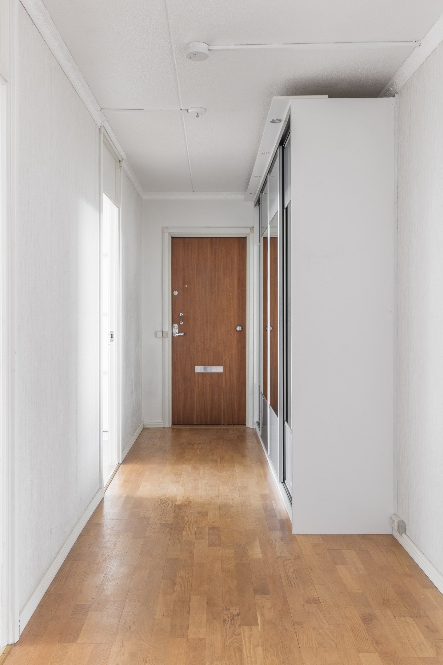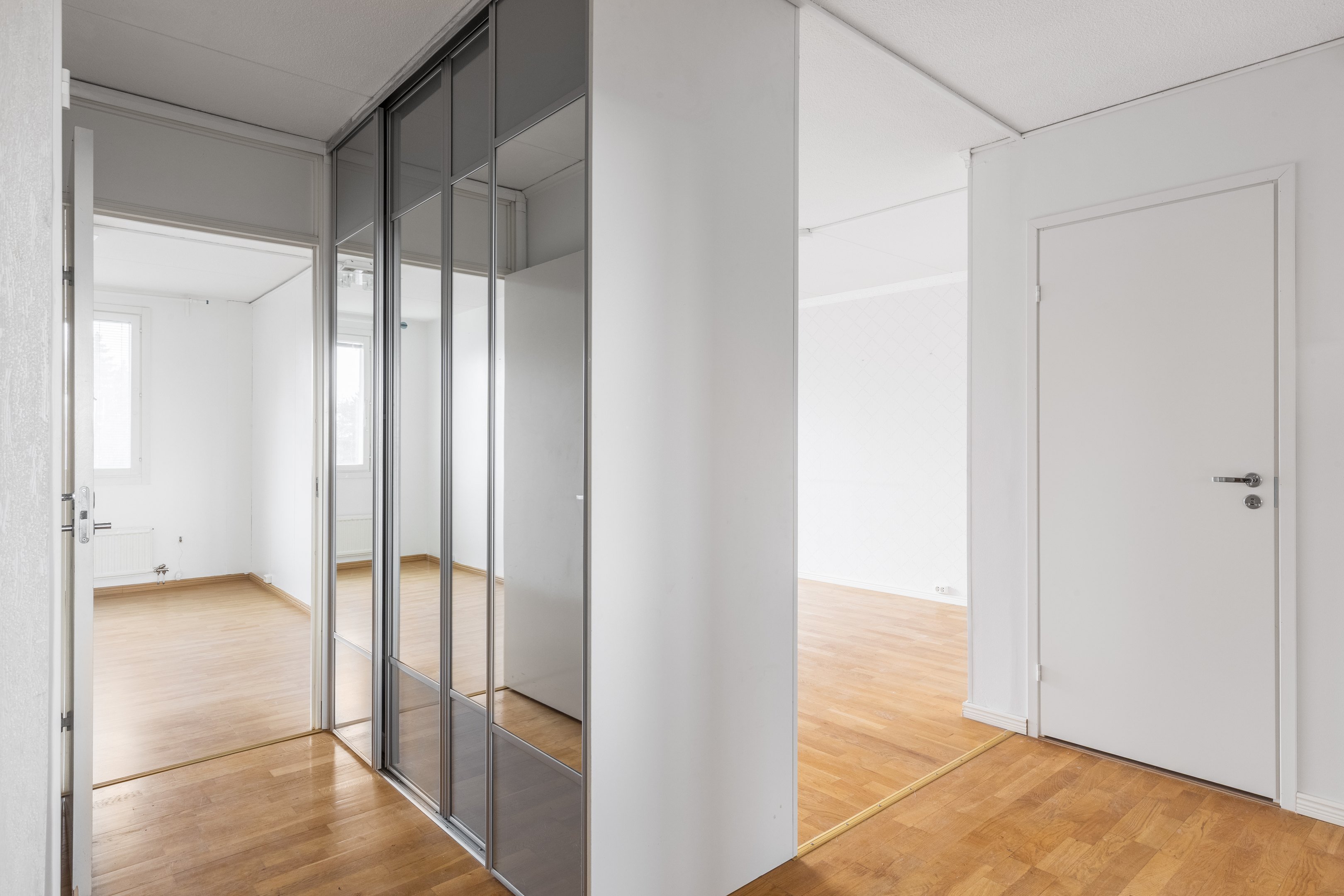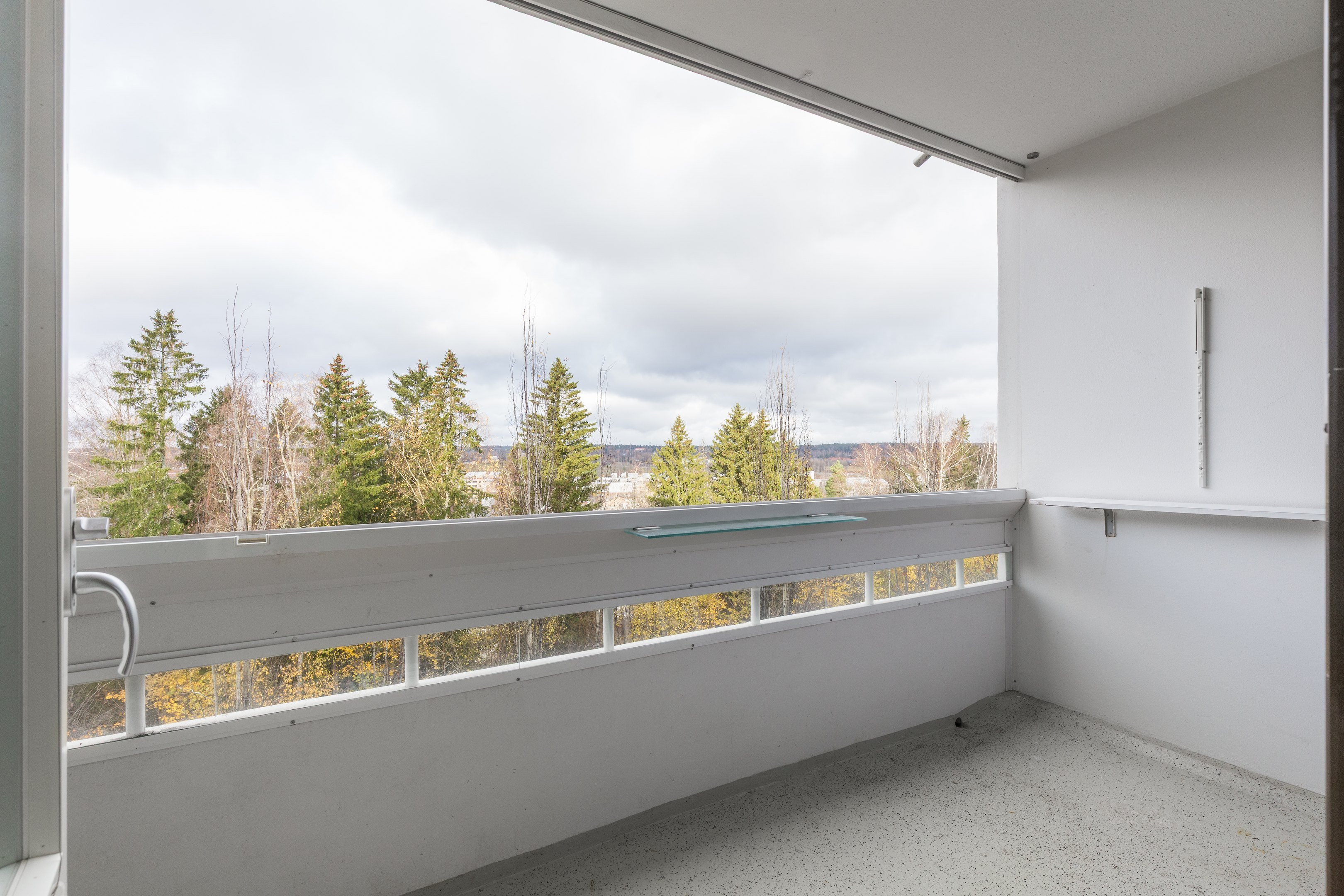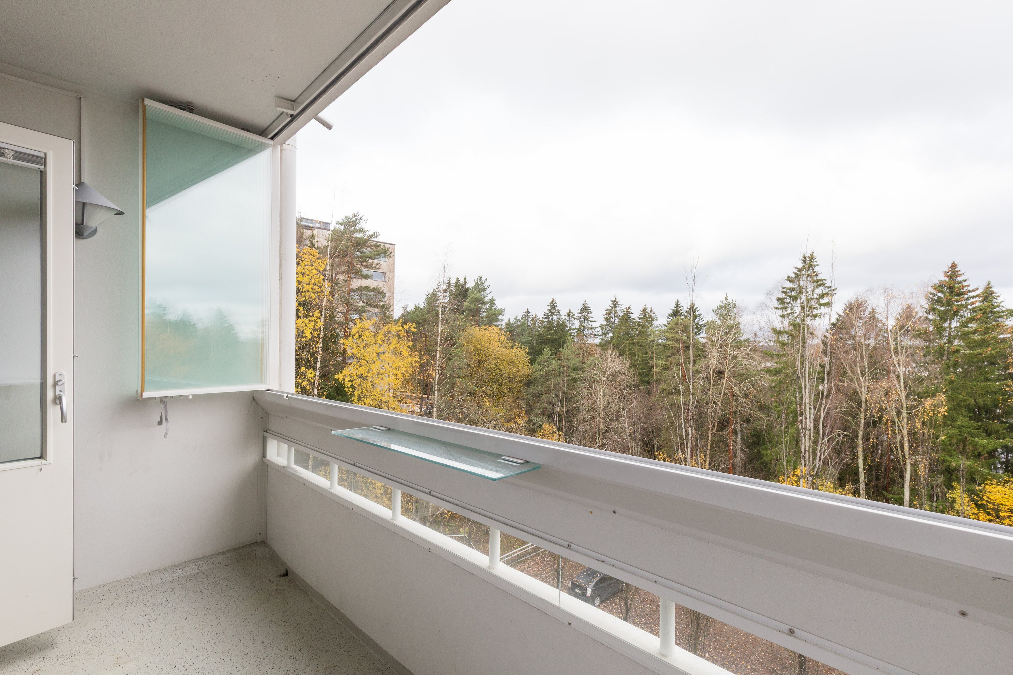 Asunto sijaitsee viidennessä kerroksessa, ja suurista ikkunoista avautuvat kauniit, avarat näkymät yli puiden latvojen – luonnonvalo tulvii sisään aamusta iltaan. Lasitetulla länsiparvekkeella voit nauttia ilta-auringosta ja rauhallisesta näkymästä ympäri vuoden.