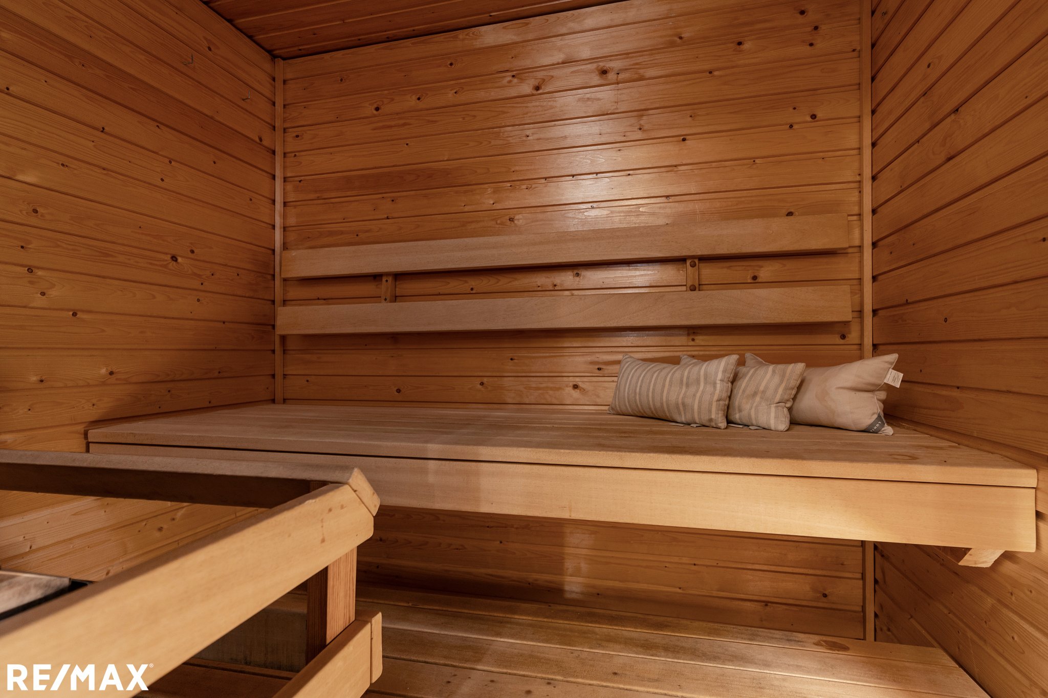 Yläkerrasta löytyvät kaksi makuuhuonetta, joista toisesta on kulku parvekkeelle. Lisäksi yläkerrassa sijaitsevat kylpyhuone ja oma sauna, jotka tuovat asumiseen mukavuutta ja arjen luksusta.