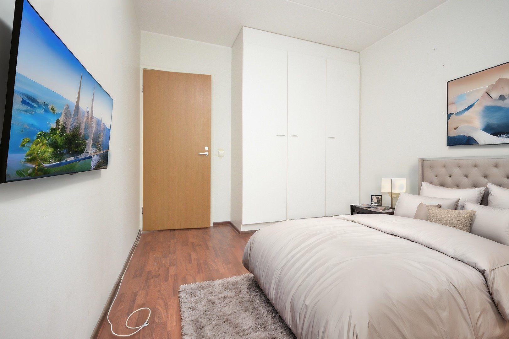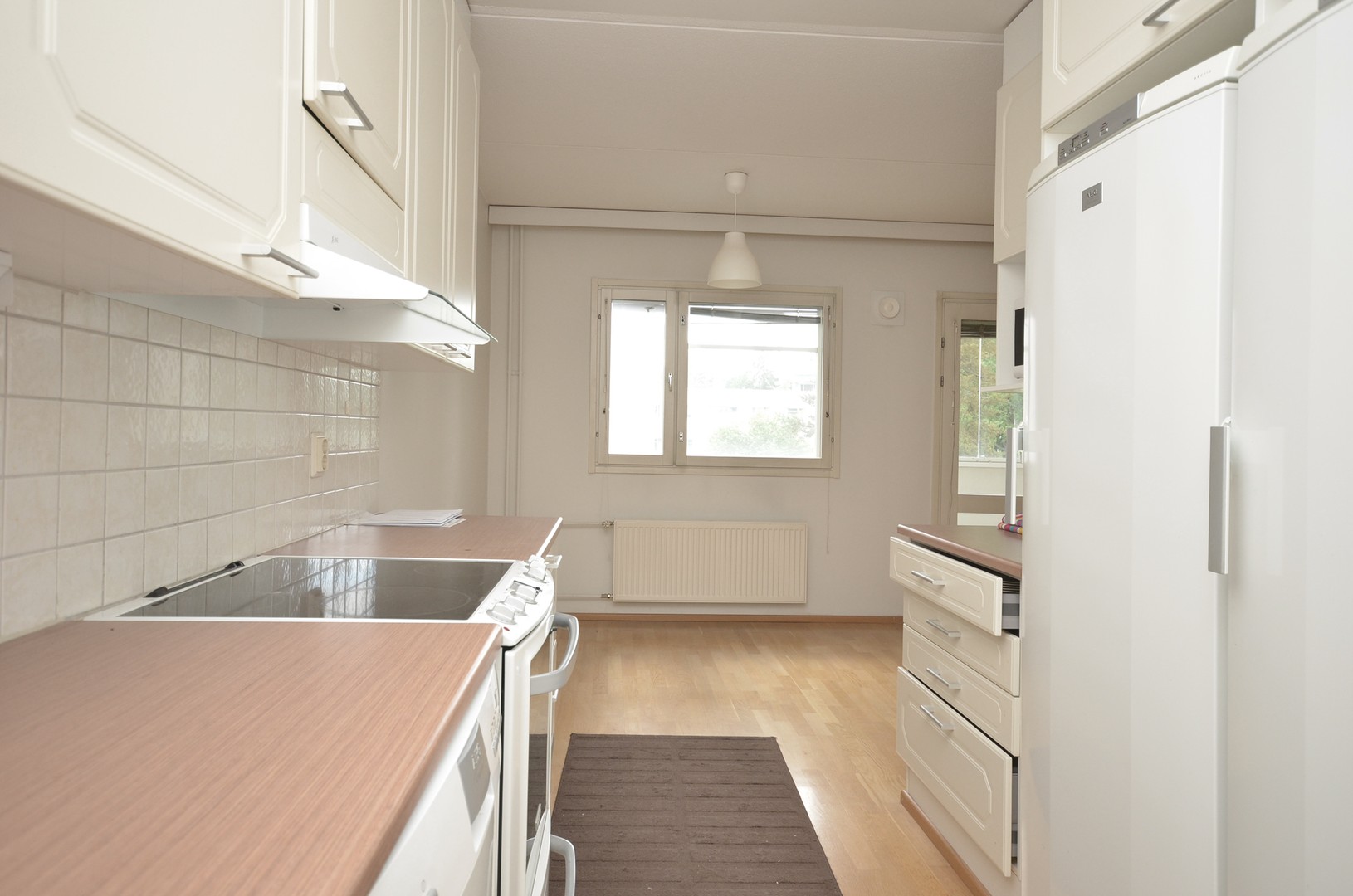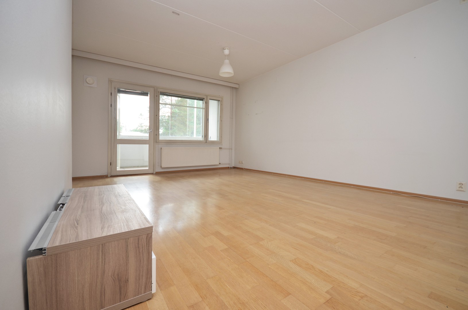 Bright spacious home with a large living room and half open kitchen. Own sauna and separate toilet. Peaceful living environment.
