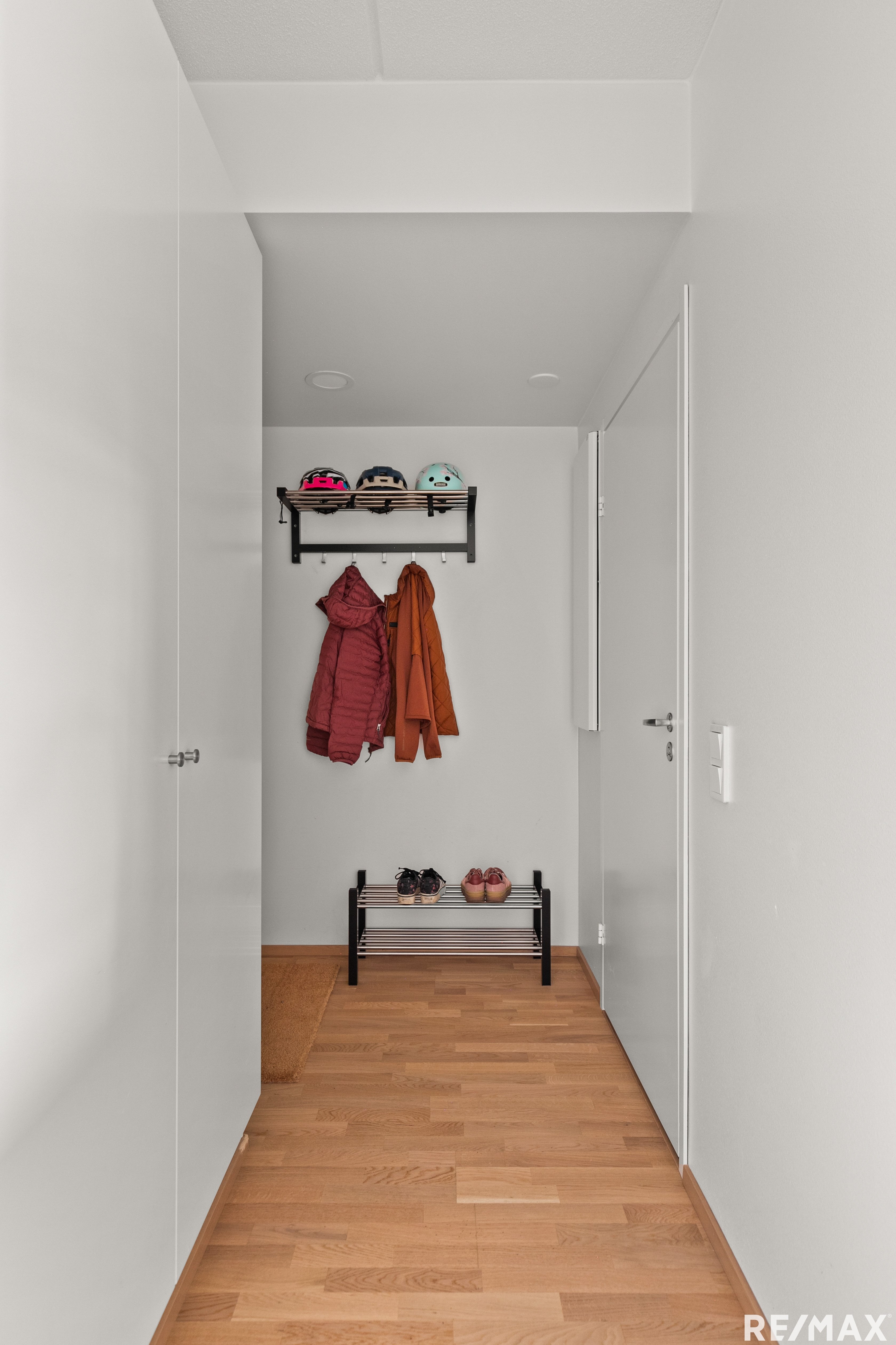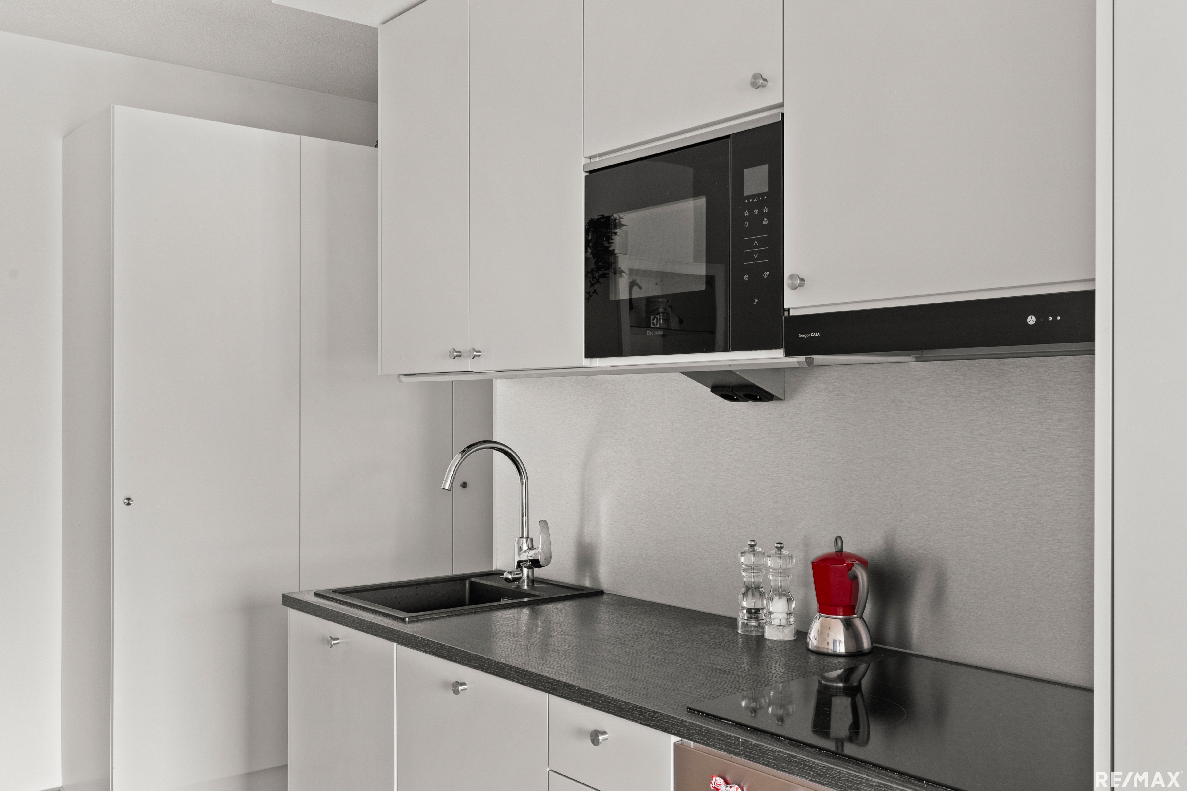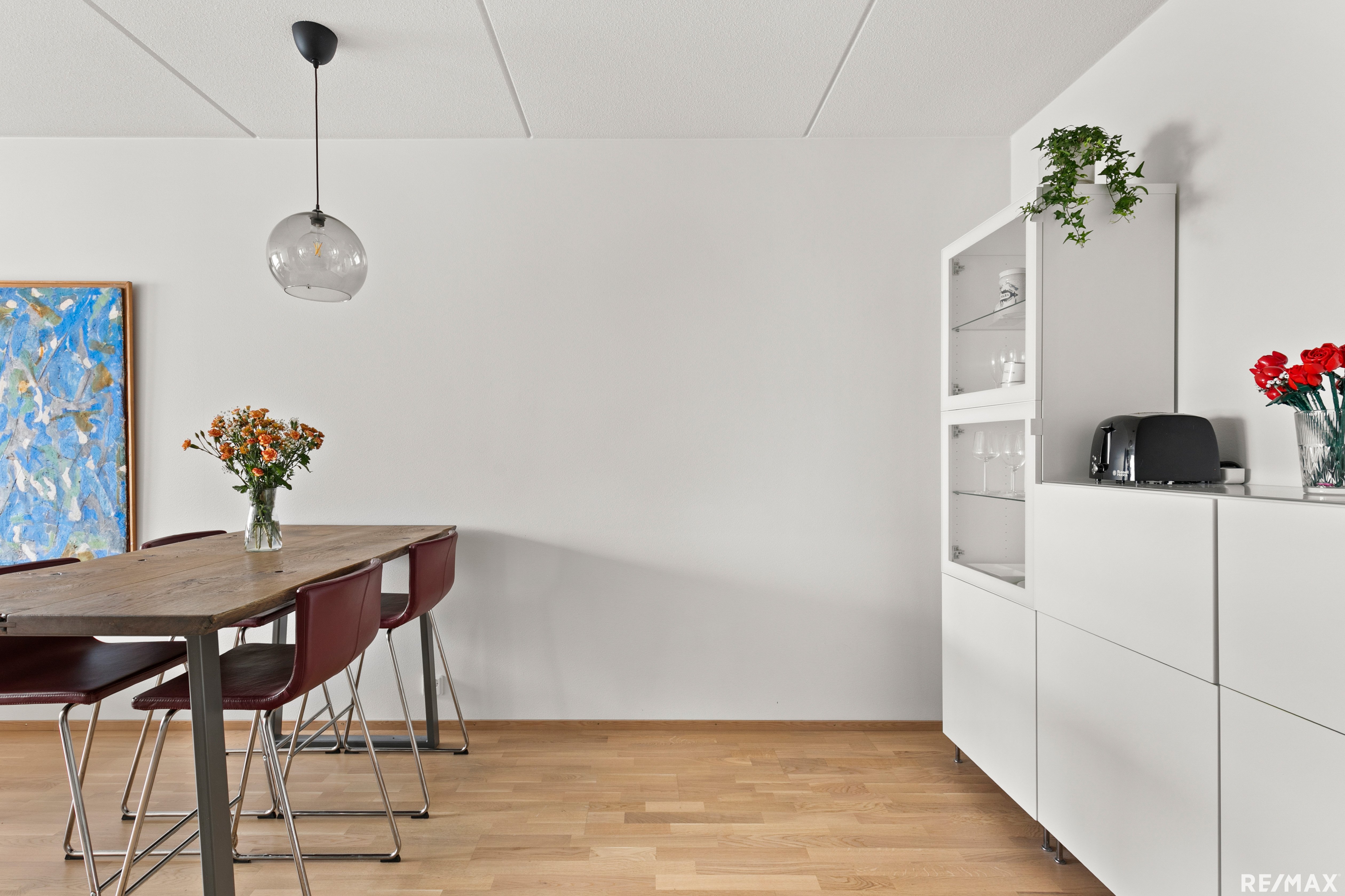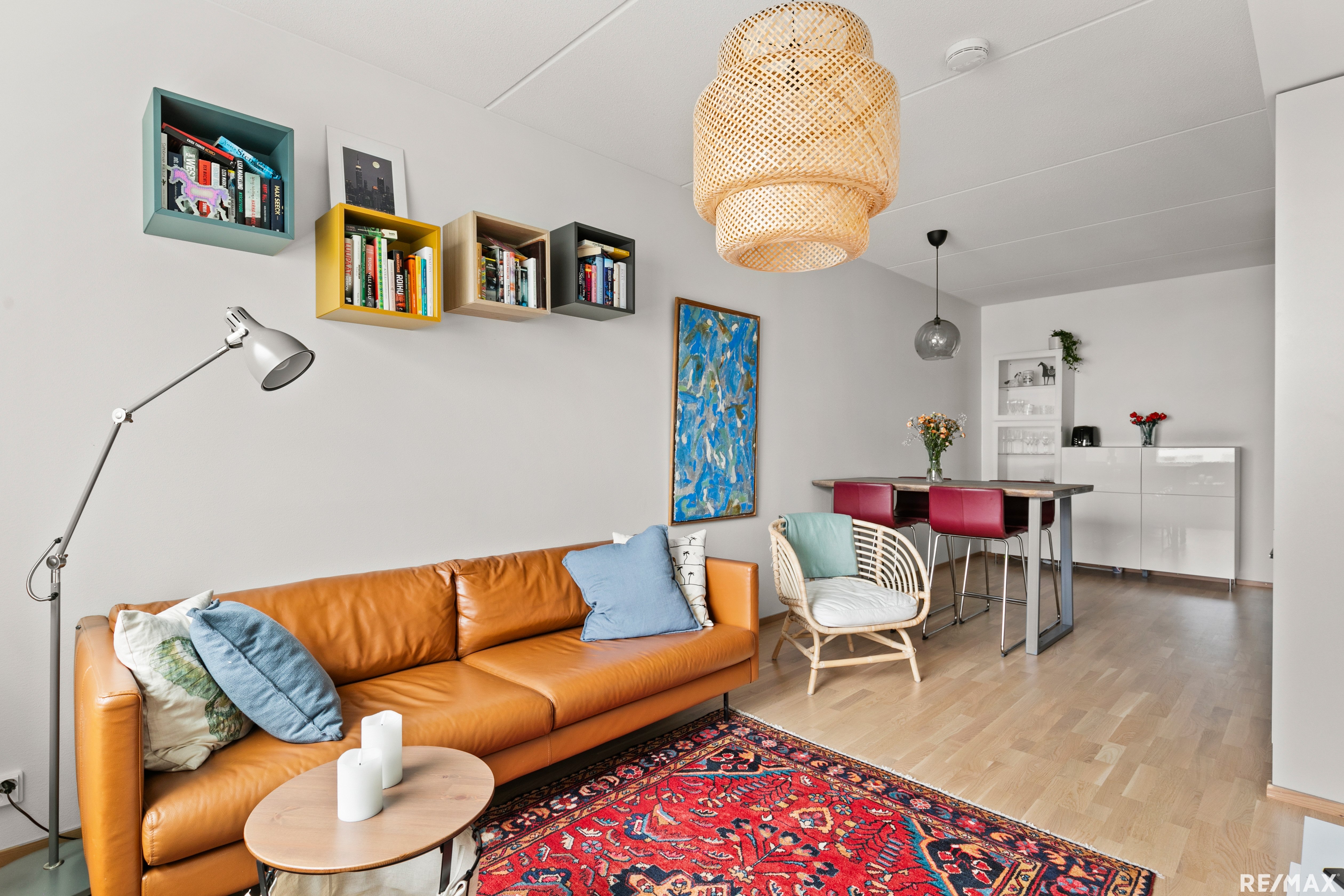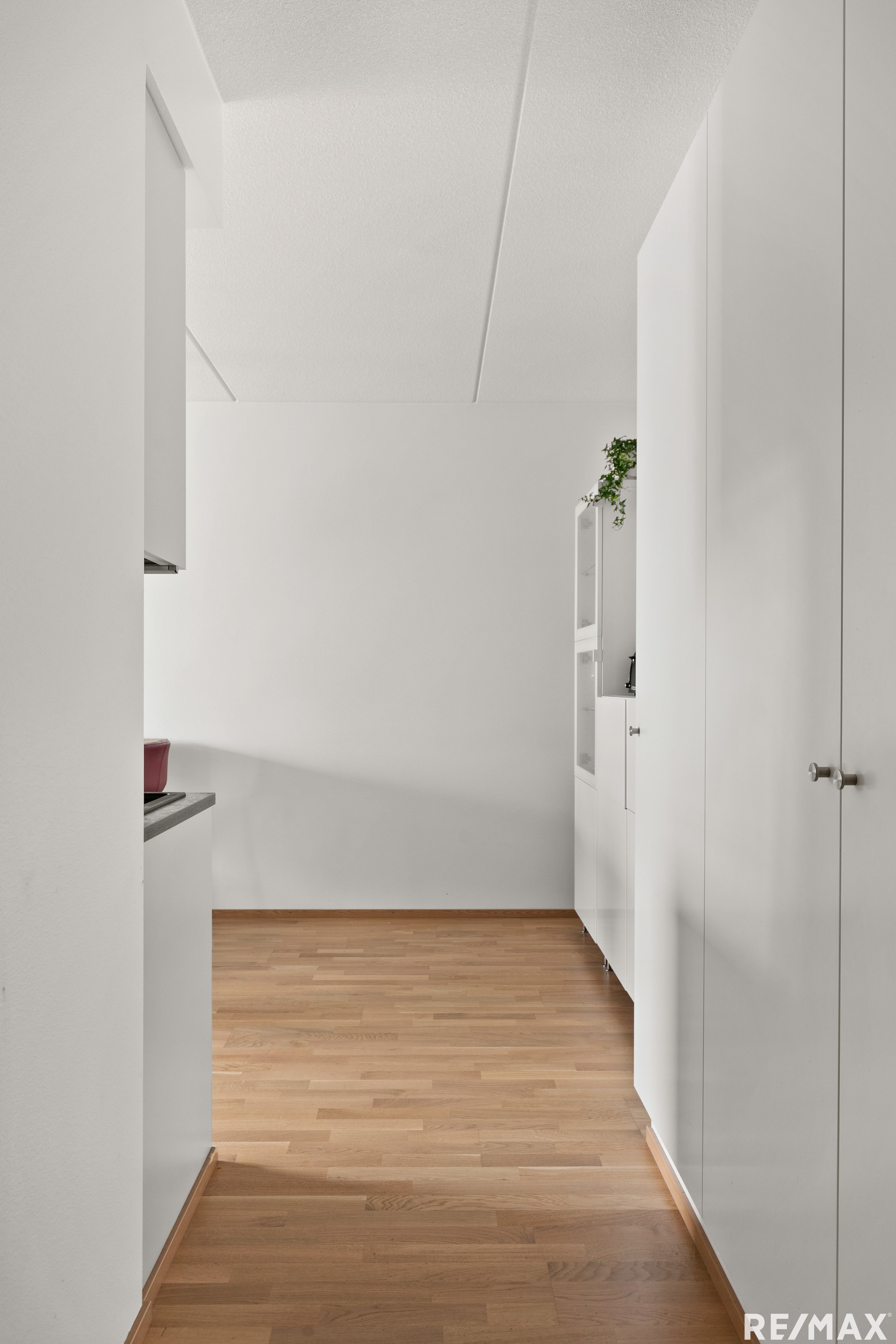 Tämä viidennen kerroksen kaksio tarjoaa modernia ja kodikasta asumista erinomaisella sijainnilla. Asunnon avara pohjaratkaisu tekee tiloista helppokäyttöiset arjessa ja juhlassa, ja laadukkaat materiaalivalinnat näkyvät viimeistelyssä. Tyylikäs avokeittiö integroiduilla kodinkoneilla avautuu sujuvasti olohuonetilaan. Makuuhuoneesta on käynti etelään suuntautuvalle lasitetulle parvekkeelle, jolta avautuu rauhallinen ja näkymä taloyhtiön piha-alueelle. Parveke toimii erinomaisena lisätilana kesästä talveen ja tuo kotiin lisävaloa sekä ulkoilmaelämän tuntua. Lasituksen alaosa on maitolasityyppinen, mikä lisää yksityisyyttä, ja tätä yksityiskohtaa ei ole kaikissa talon asunnoissa. Käytännöllinen kylpyhuone on viimeistelty hillityn harmailla laatoilla, jotka luovat ajattoman ja helppohoitoisen ilmeen. Tilassa on lasinen suihkuseinä, seinään asennettu wc piilotetulla huuhtelusäiliöllä sekä siistit säilytysratkaisut peili- ja allaskaappien muodossa. Huoneistokohtainen ilmanvaihtokone on sijoitettu huomaamattomasti yhtenäisen kiintokalusteen taakse ja sen alapuolelta löytyy sekä varaus pesukoneelle että tilaa pesutornille, mikä tekee pyykinpesusta helppoa ja siistiä