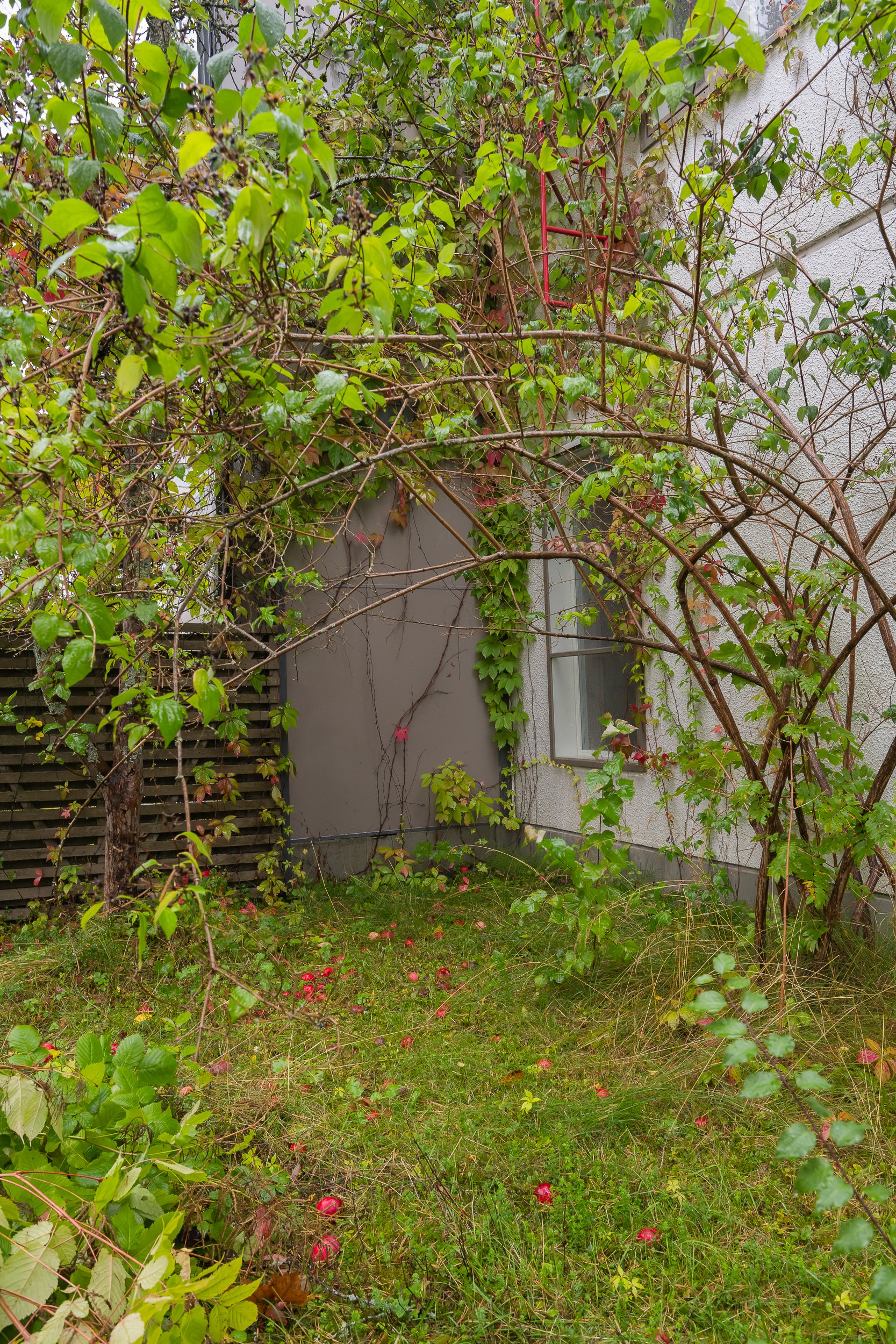 Uusittu Liinasaarenkuja puoleisia aitoja, pergolan puuosat, roskakatosten ja autokatosten puuosat ja stenilevyt
