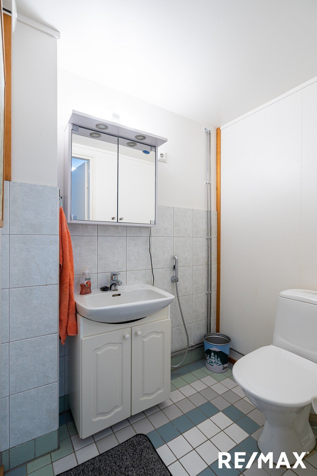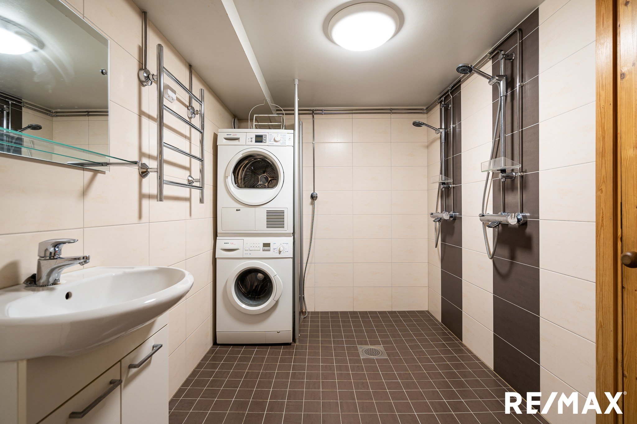 Lattialämmitys, suihku, pesukoneliitäntä ja pesuallas