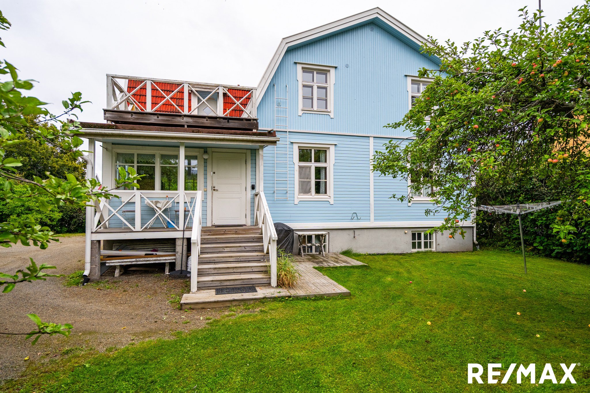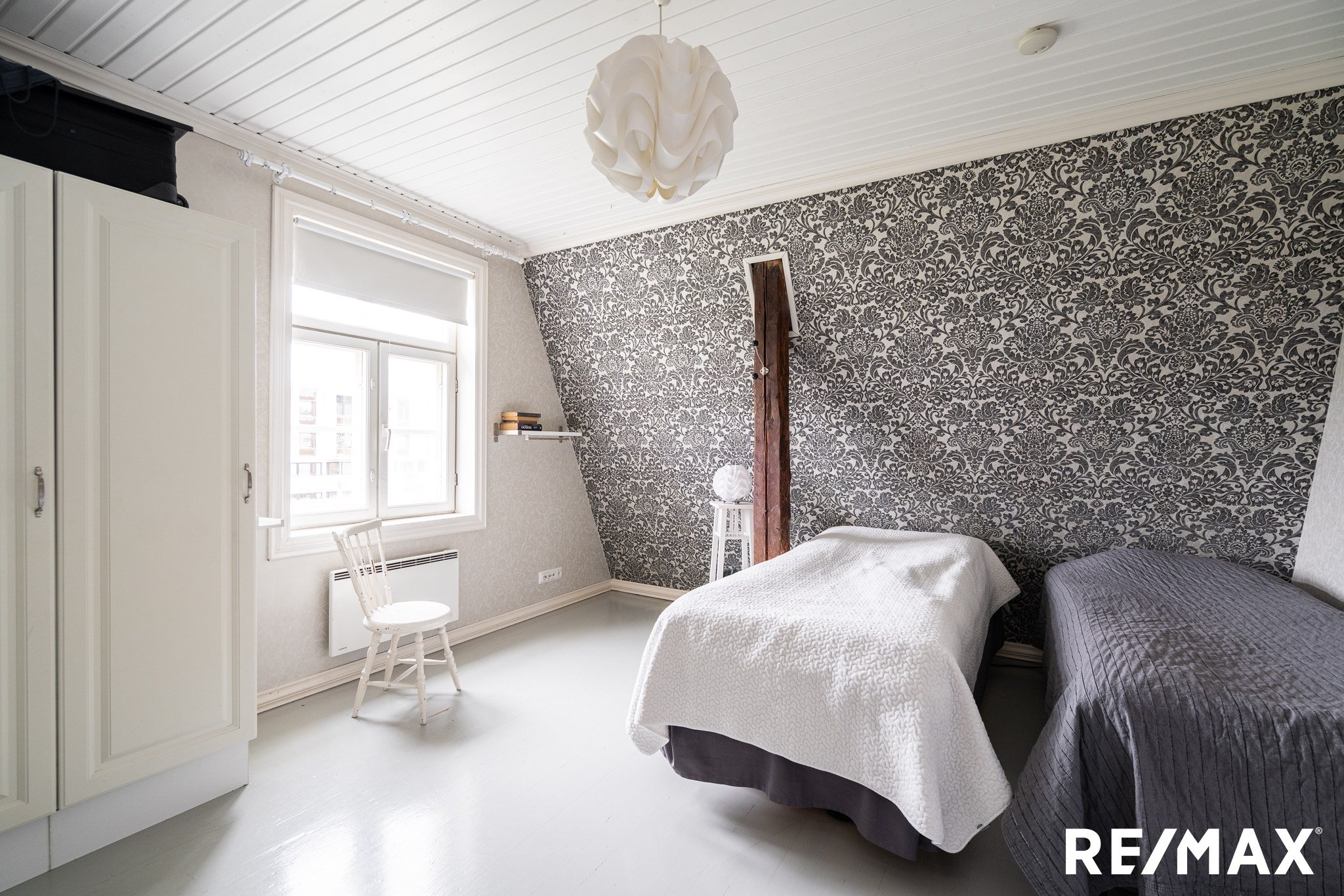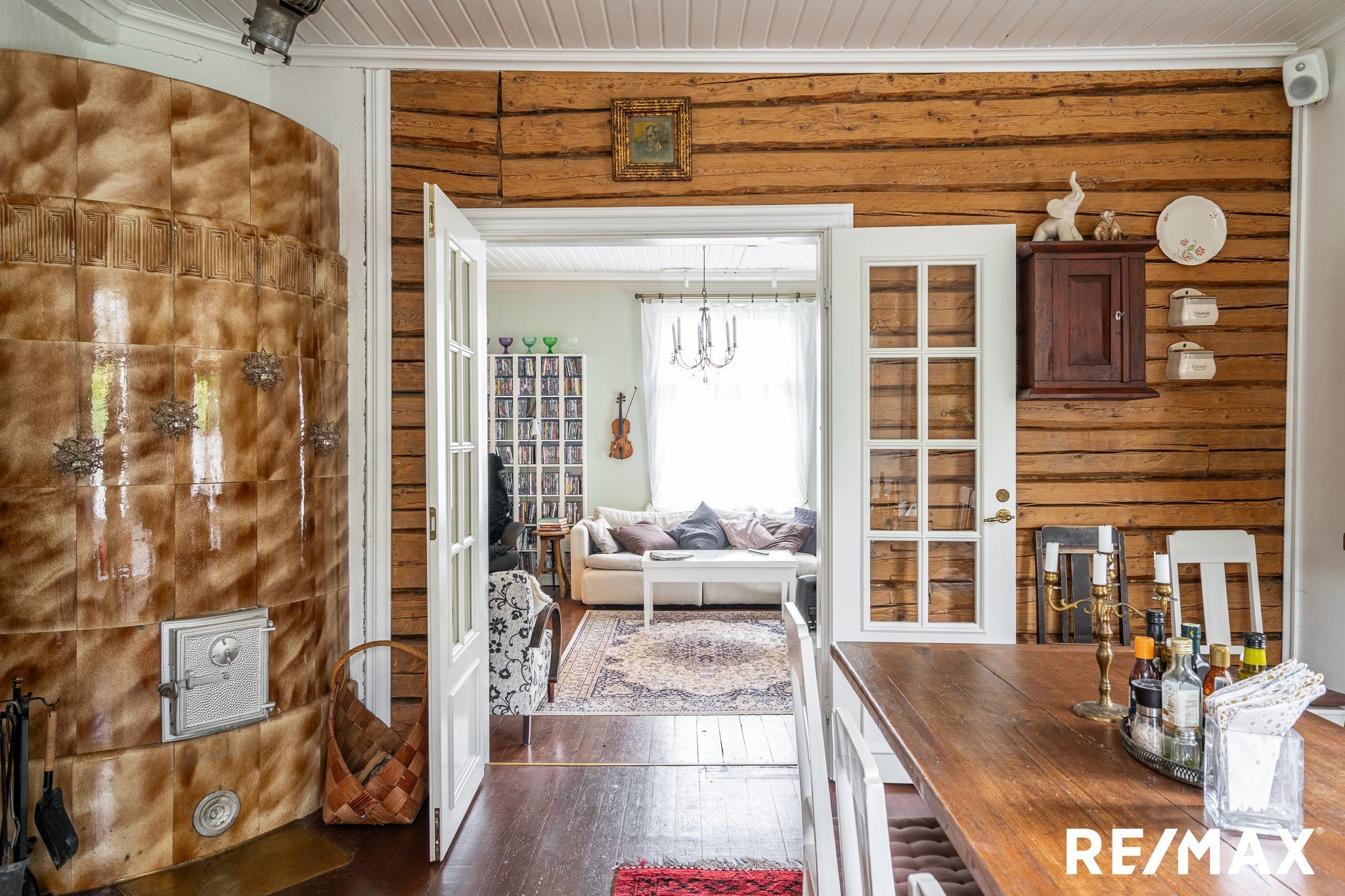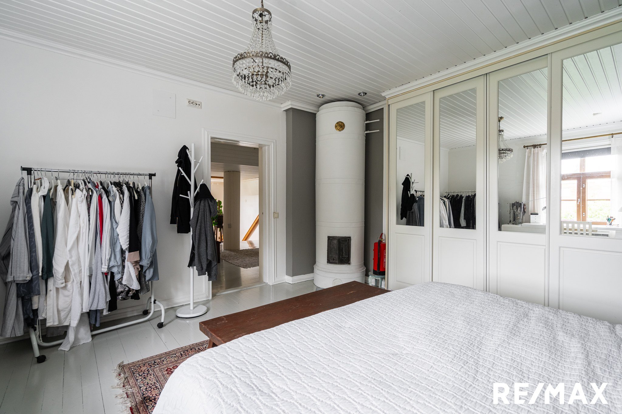 Kolmikerroksinen talo tarjoaa runsaasti tilaa, ja sen korkeat huoneet luovat avaran ja valoisan tunnelman. Keskikerroksen keittiössä on leivinuuni, joka tuo lämpöä ja kodikkuutta. Yläkerran parveke avautuu lounaaseen, tarjoten kauniit näkymät ja iltapäivän auringon. Alakerrassa on sauna, jossa voi rentoutua puukiukaan lämmössä.