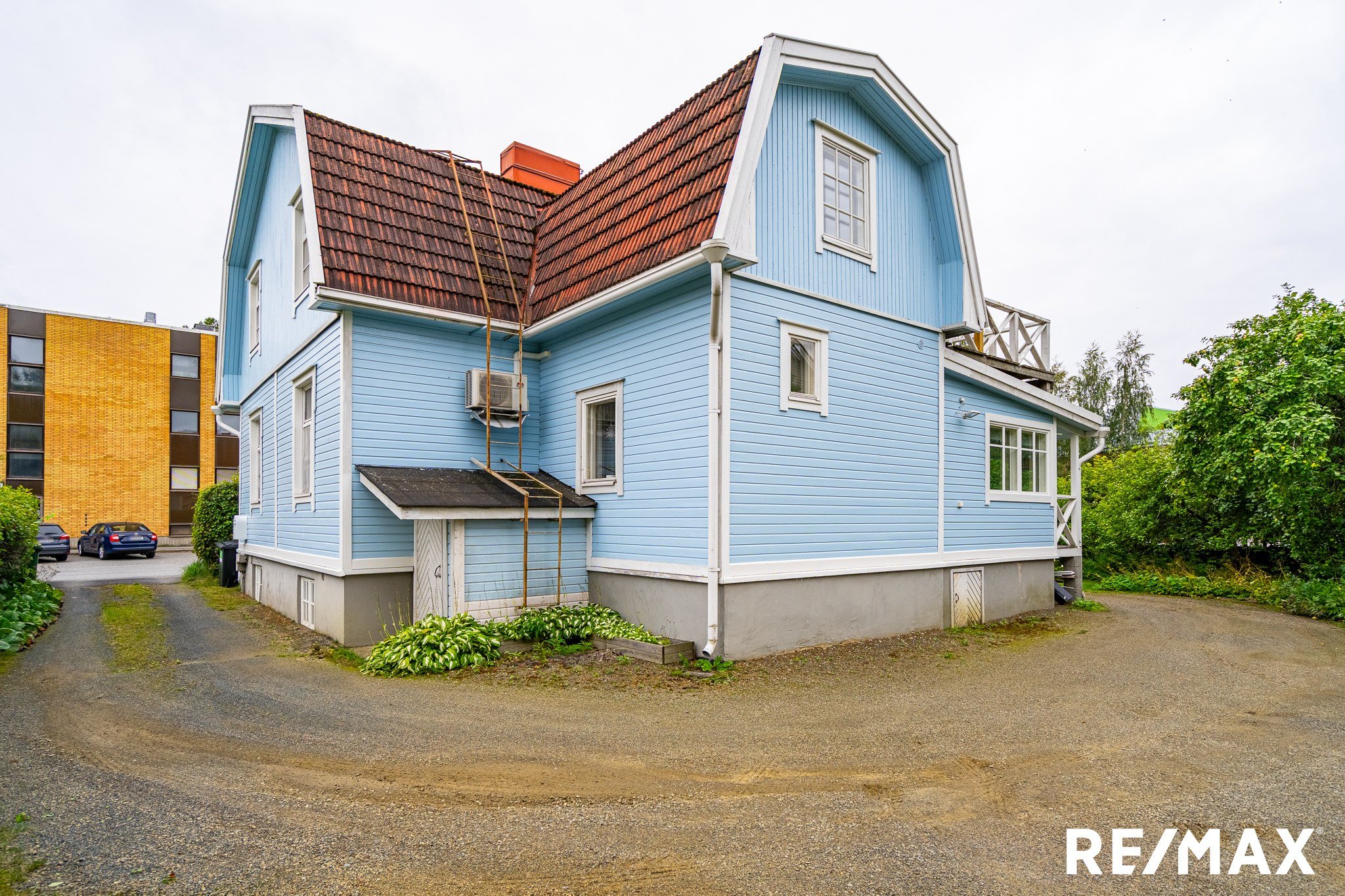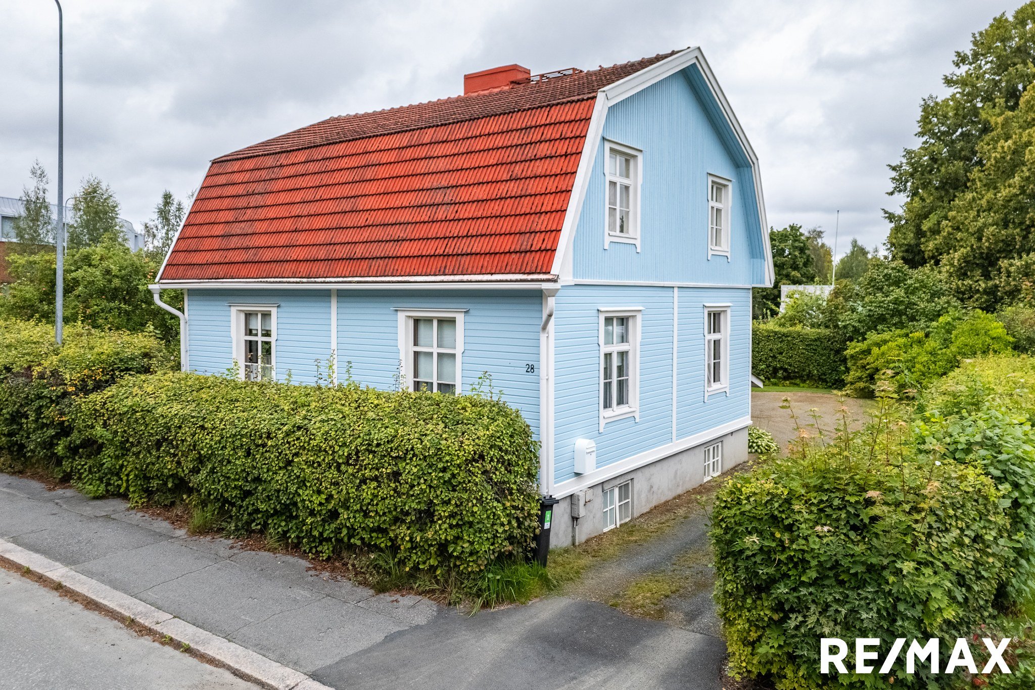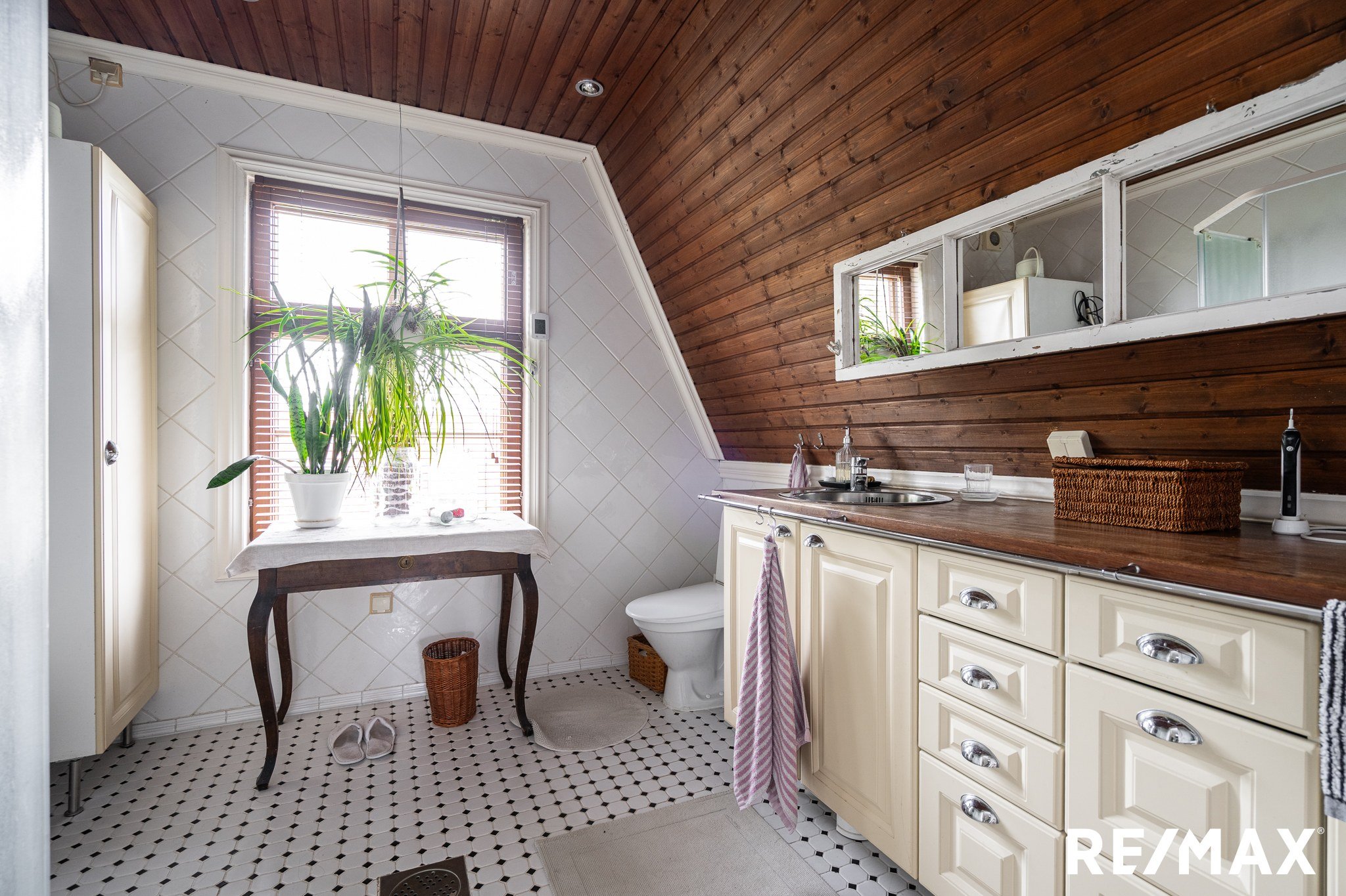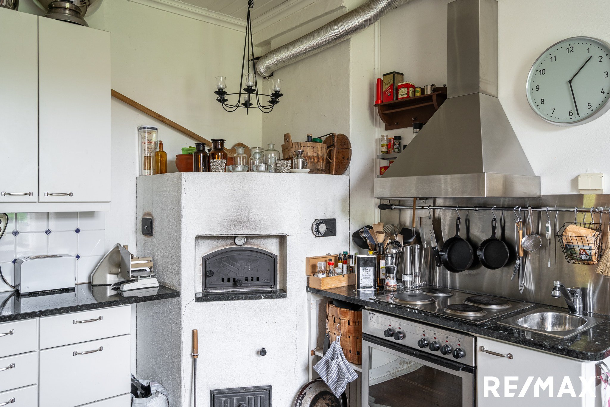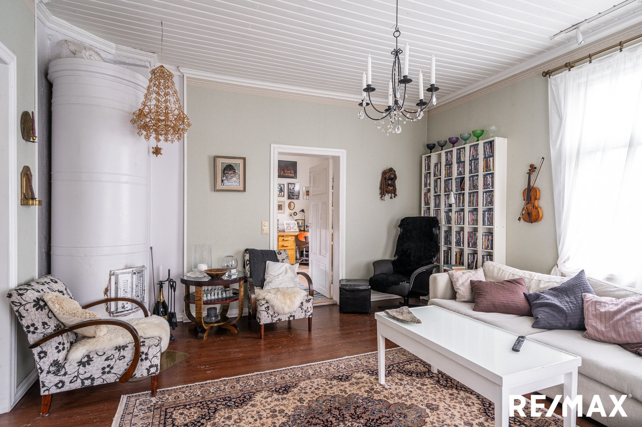 Kolmikerroksinen talo tarjoaa runsaasti tilaa, ja sen korkeat huoneet luovat avaran ja valoisan tunnelman. Keskikerroksen keittiössä on leivinuuni, joka tuo lämpöä ja kodikkuutta. Yläkerran parveke avautuu lounaaseen, tarjoten kauniit näkymät ja iltapäivän auringon. Alakerrassa on sauna, jossa voi rentoutua puukiukaan lämmössä.
