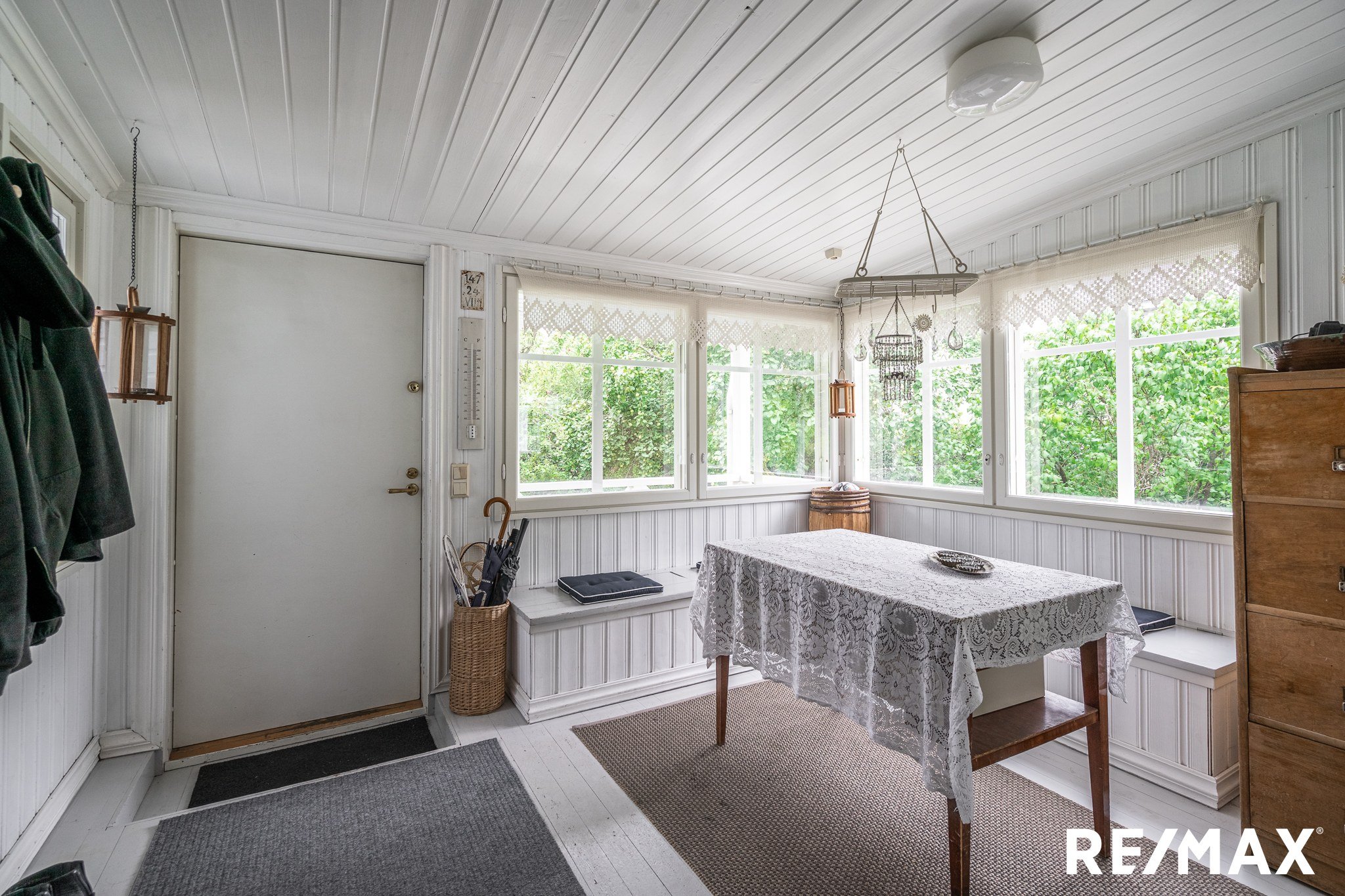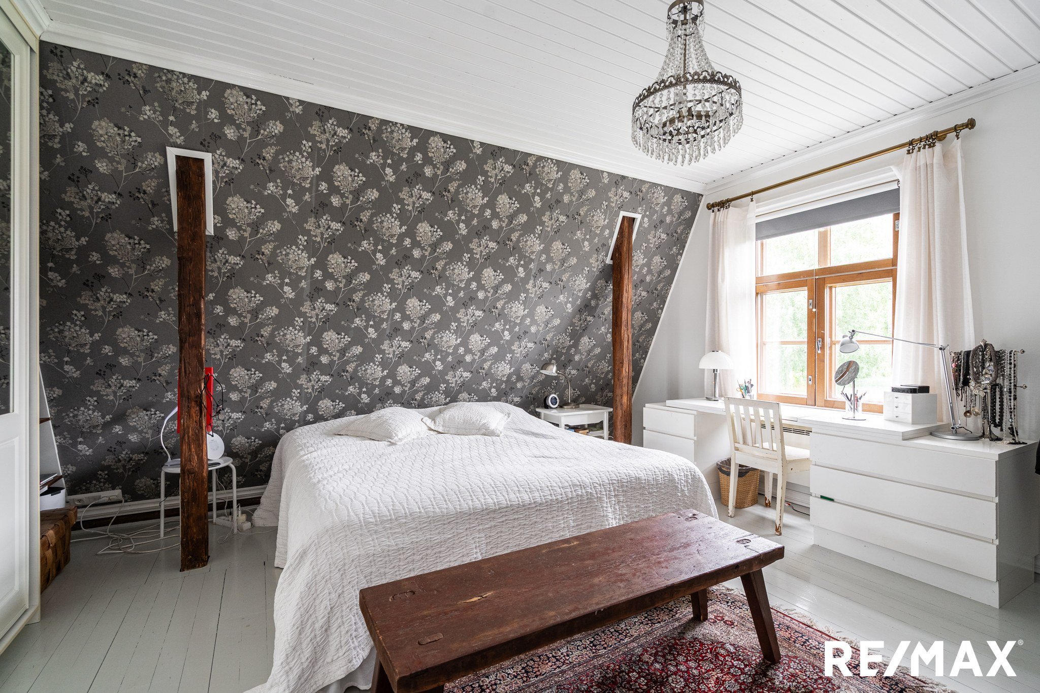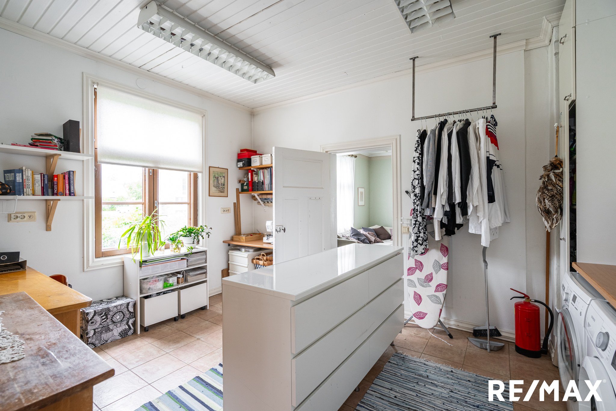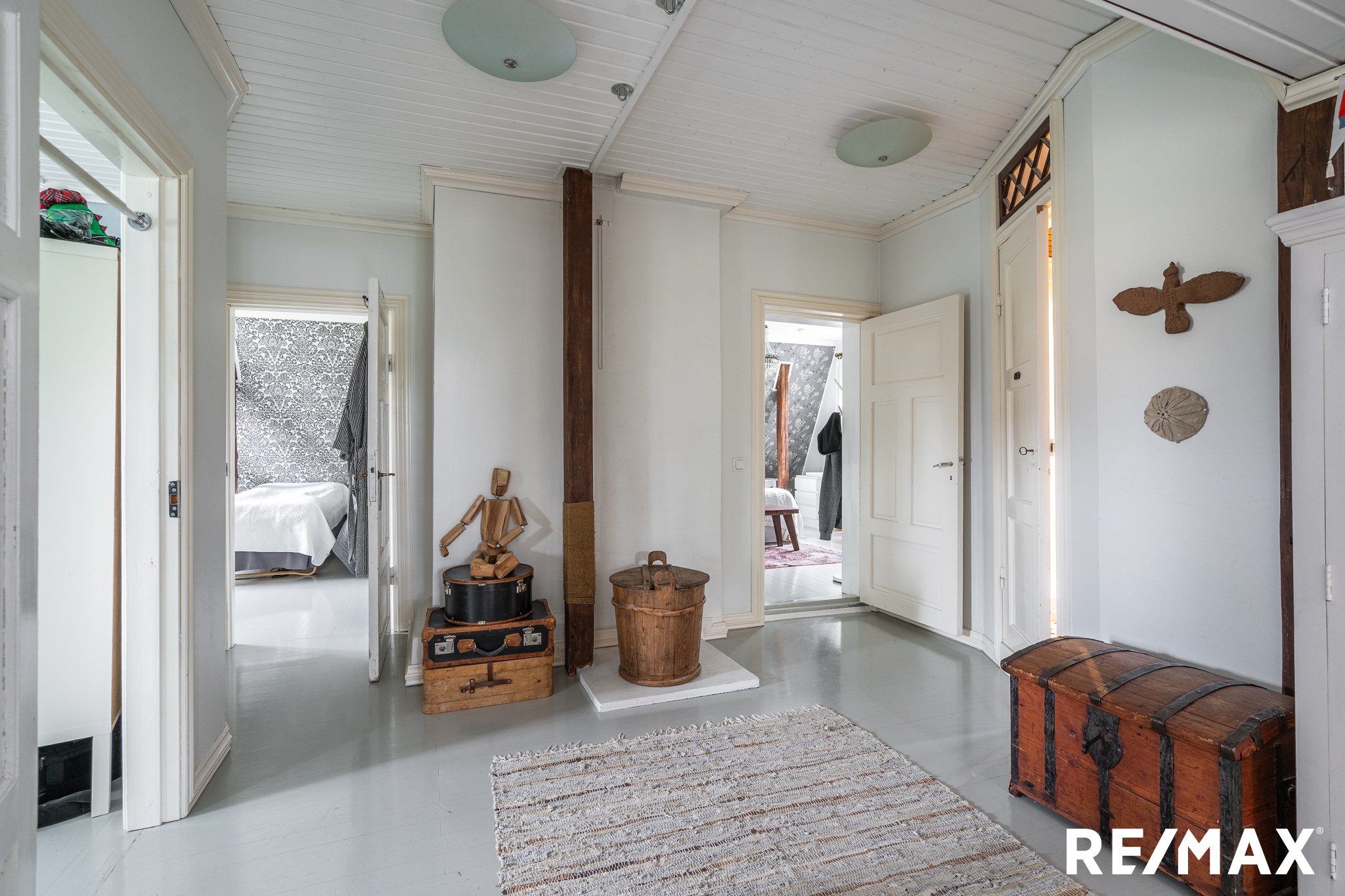 Kolmikerroksinen talo tarjoaa runsaasti tilaa, ja sen korkeat huoneet luovat avaran ja valoisan tunnelman. Keskikerroksen keittiössä on leivinuuni, joka tuo lämpöä ja kodikkuutta. Yläkerran parveke avautuu lounaaseen, tarjoten kauniit näkymät ja iltapäivän auringon. Alakerrassa on sauna, jossa voi rentoutua puukiukaan lämmössä.