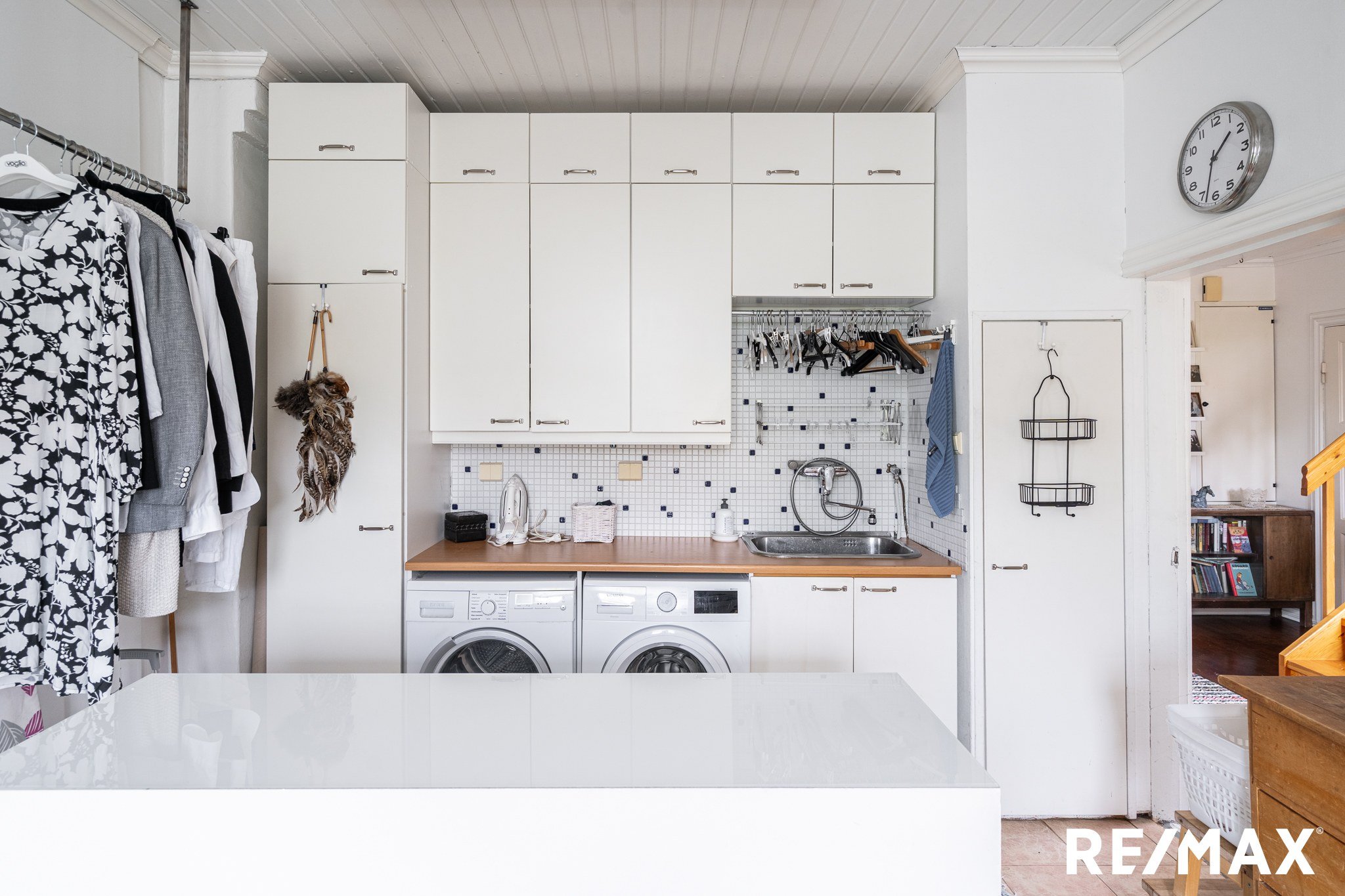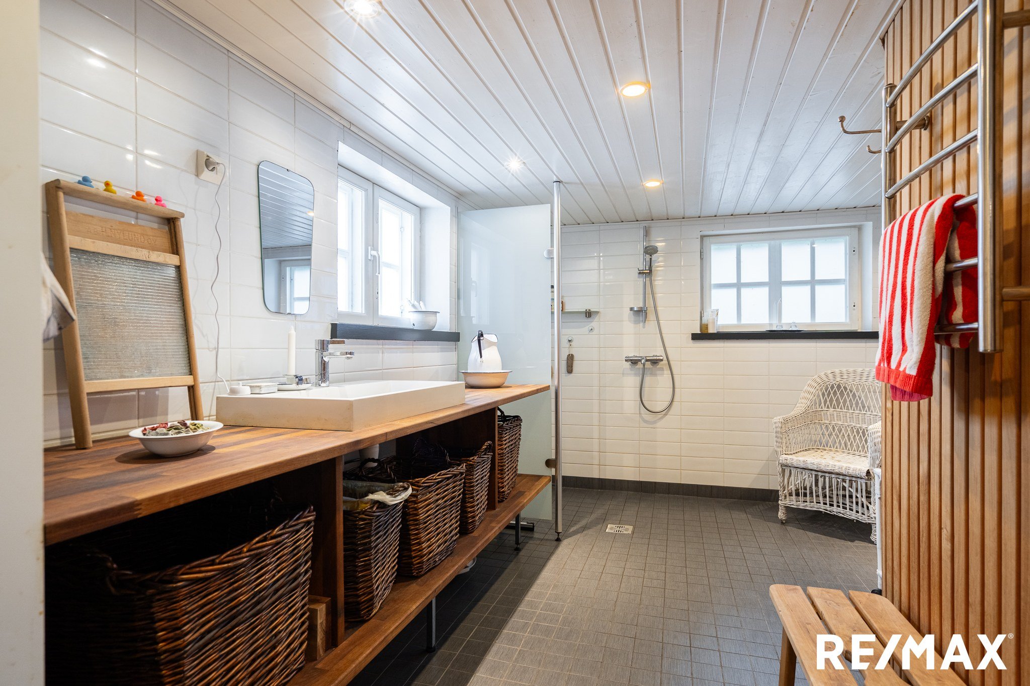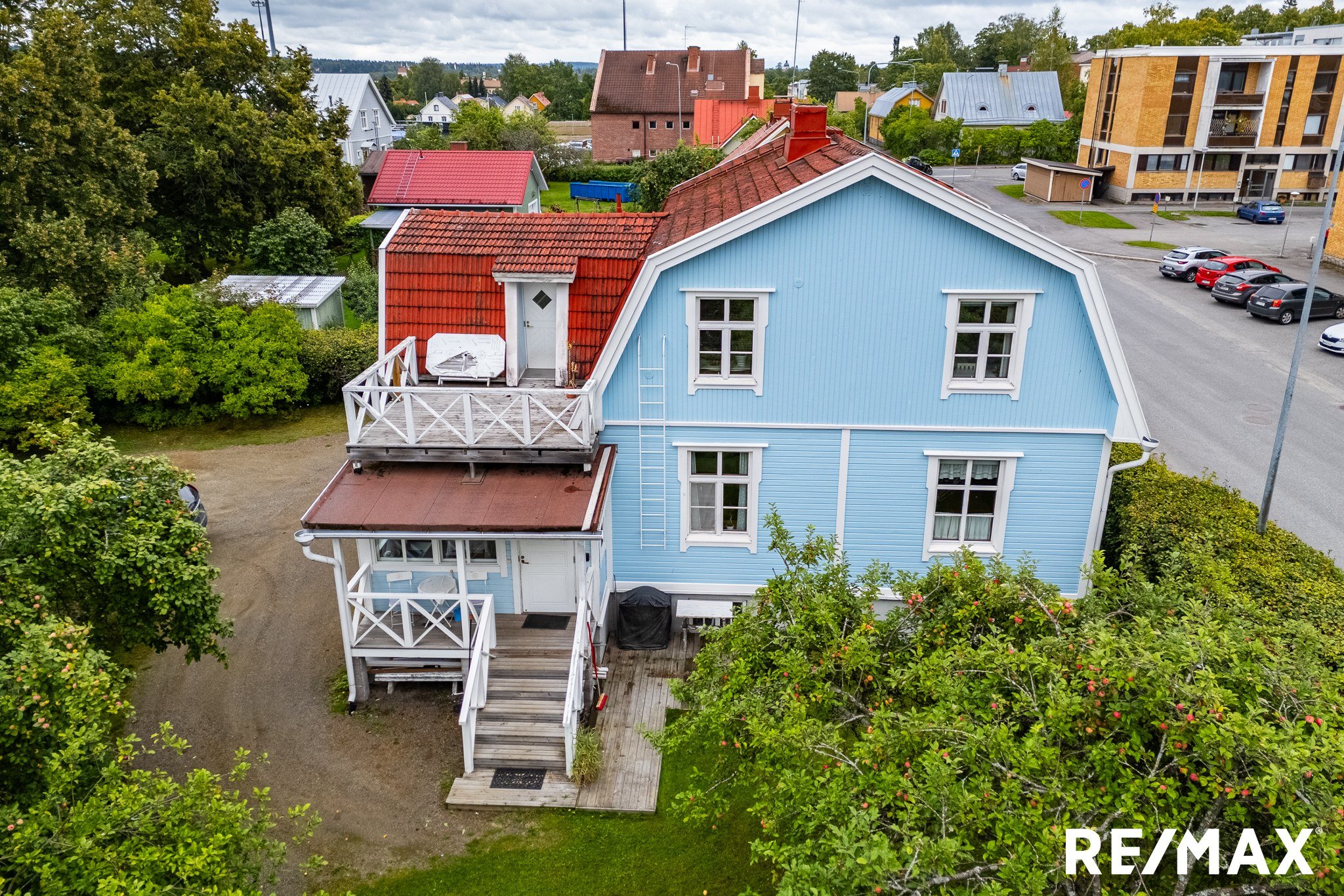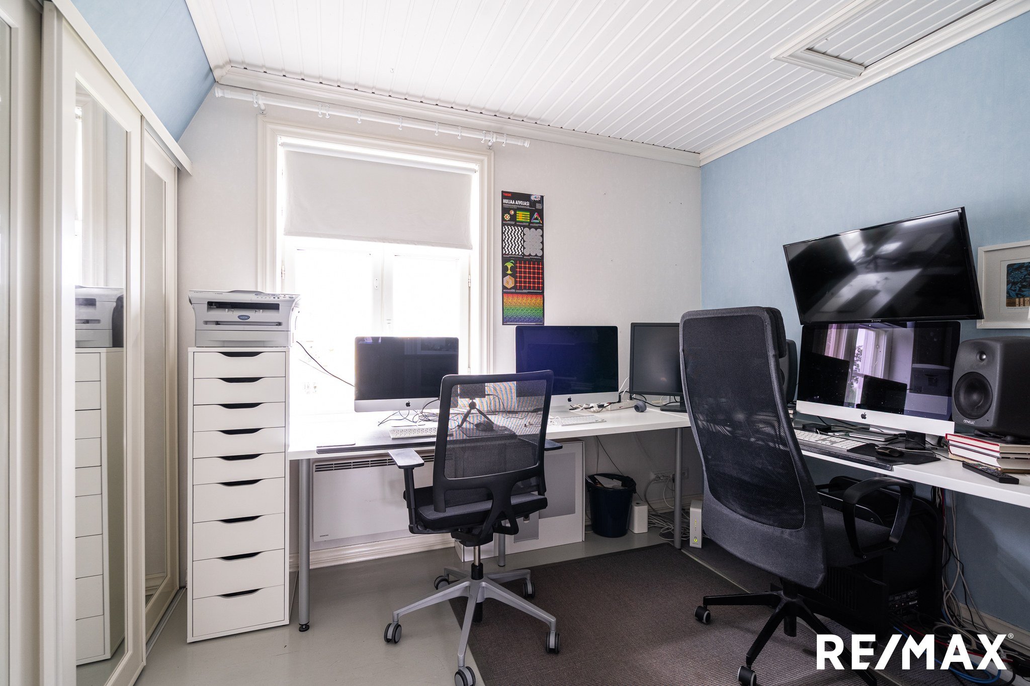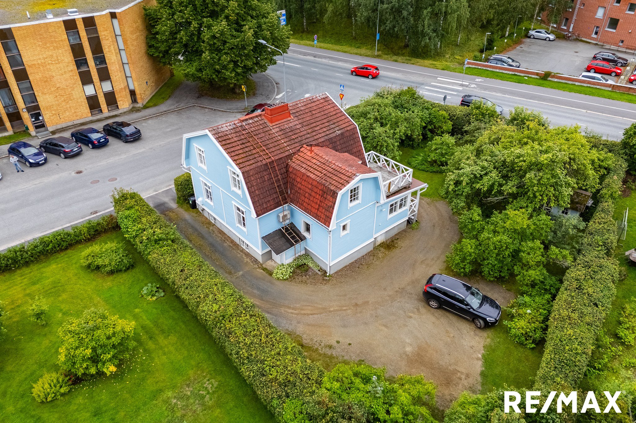Kolmikerroksinen talo tarjoaa runsaasti tilaa, ja sen korkeat huoneet luovat avaran ja valoisan tunnelman. Keskikerroksen keittiössä on leivinuuni, joka tuo lämpöä ja kodikkuutta. Yläkerran parveke avautuu lounaaseen, tarjoten kauniit näkymät ja iltapäivän auringon. Alakerrassa on sauna, jossa voi rentoutua puukiukaan lämmössä.
