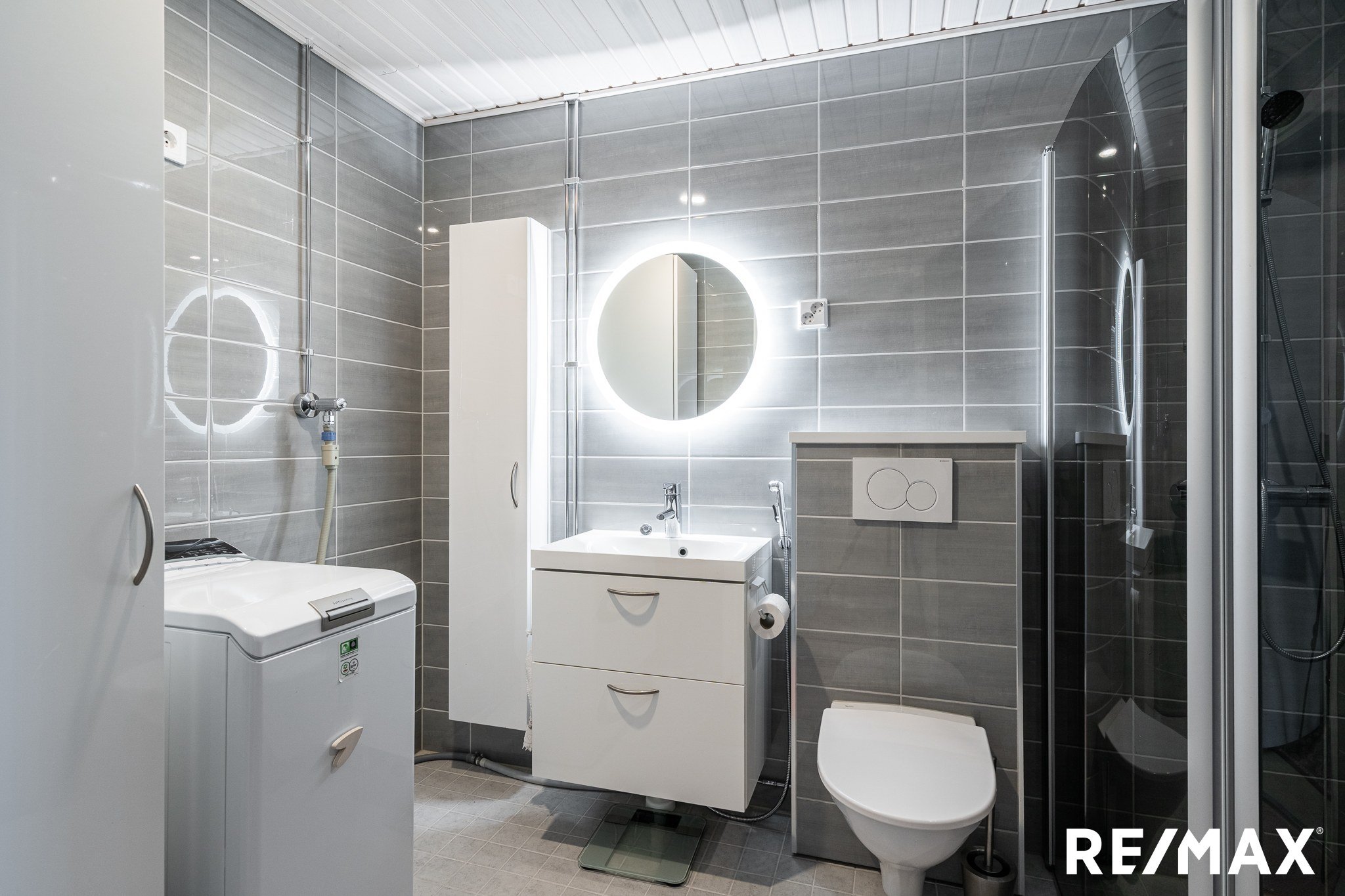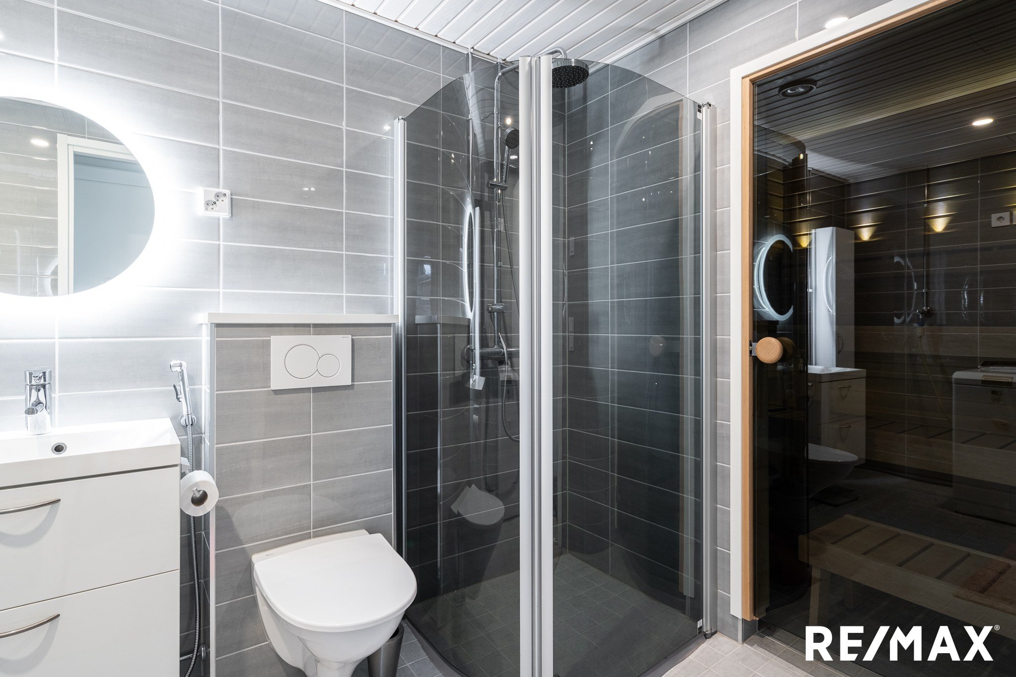 Asunnossa on kaksi makuuhuonetta, olohuone ja moderni keittiö, jossa on laadukkaat kodinkoneet, kuten induktioliesi ja astianpesukone. Oma sauna ja tyylikäs kylpyhuone lattialämmityksellä tarjoavat arjen luksusta. Lisäksi asunnossa on tilava vaatehuone ja runsaasti säilytystilaa.