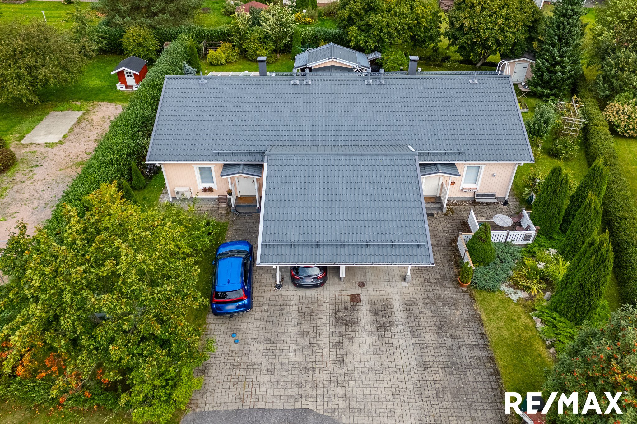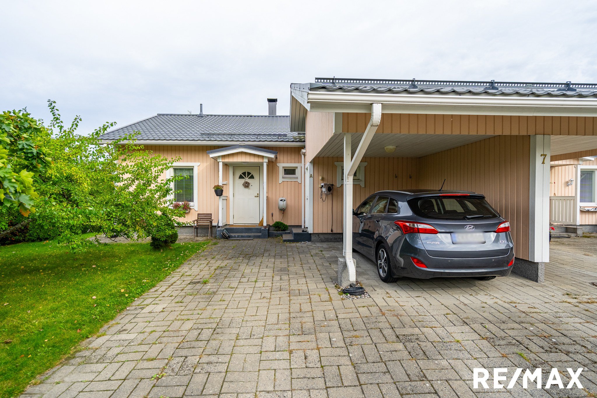 Autokatoksen lisäksi mahtuu 3 autoa etupihalle.