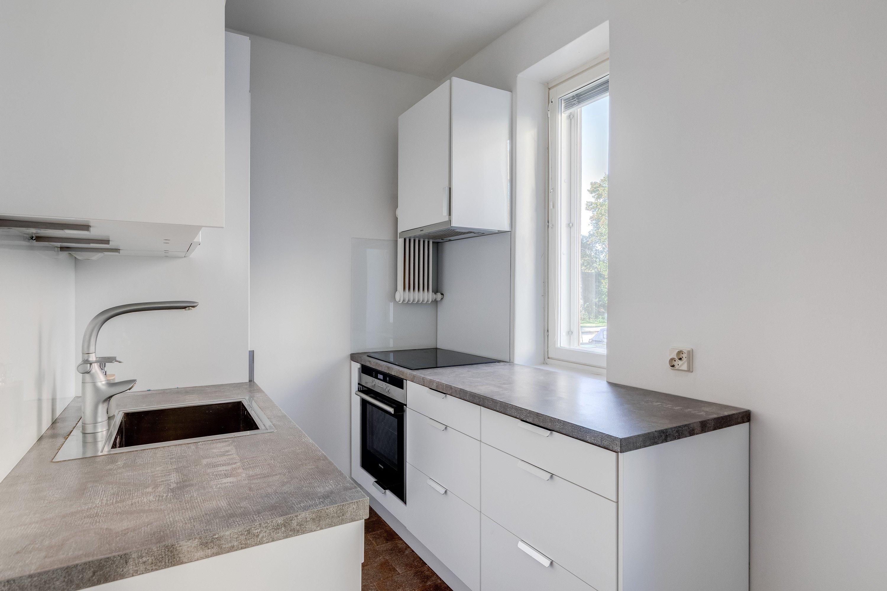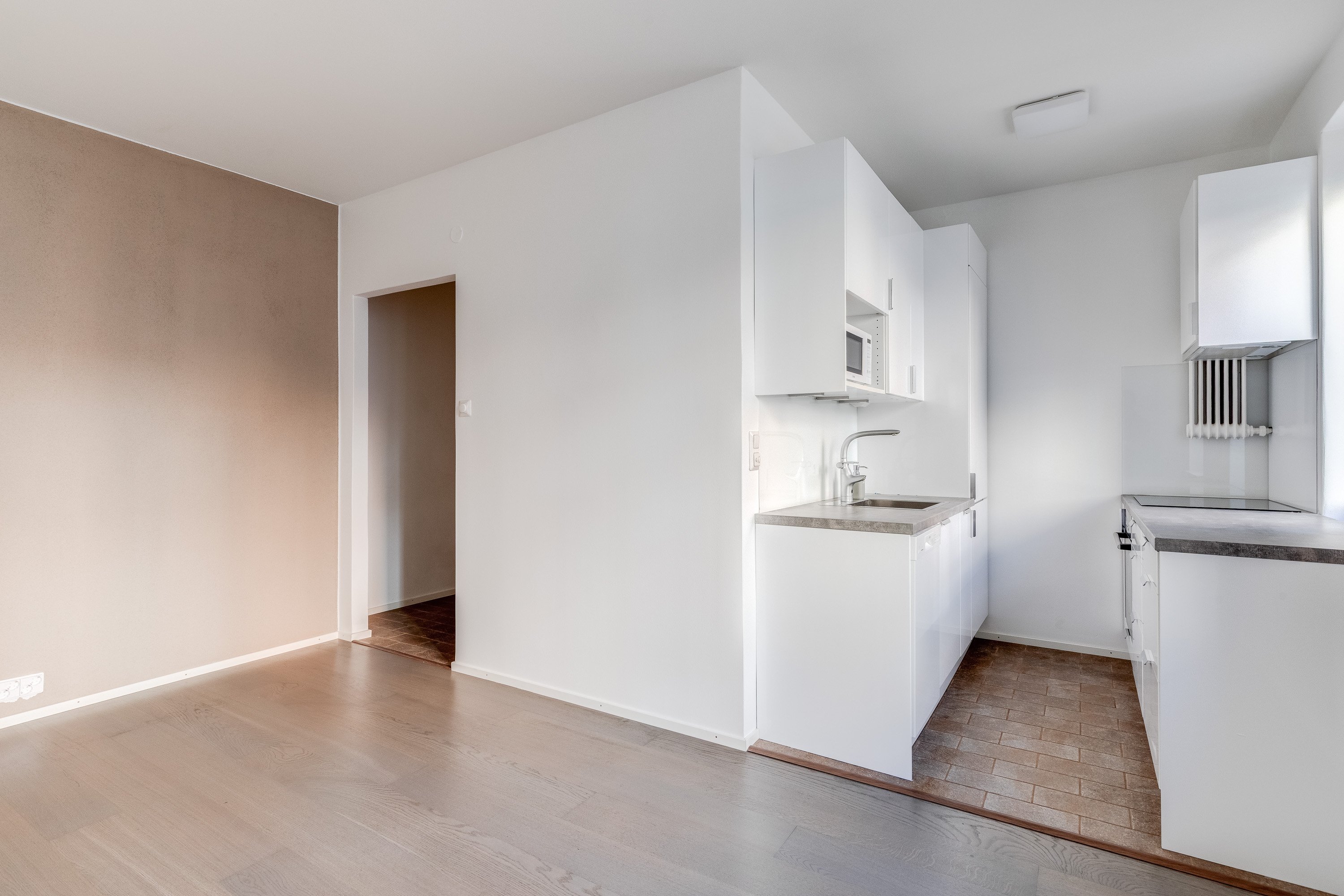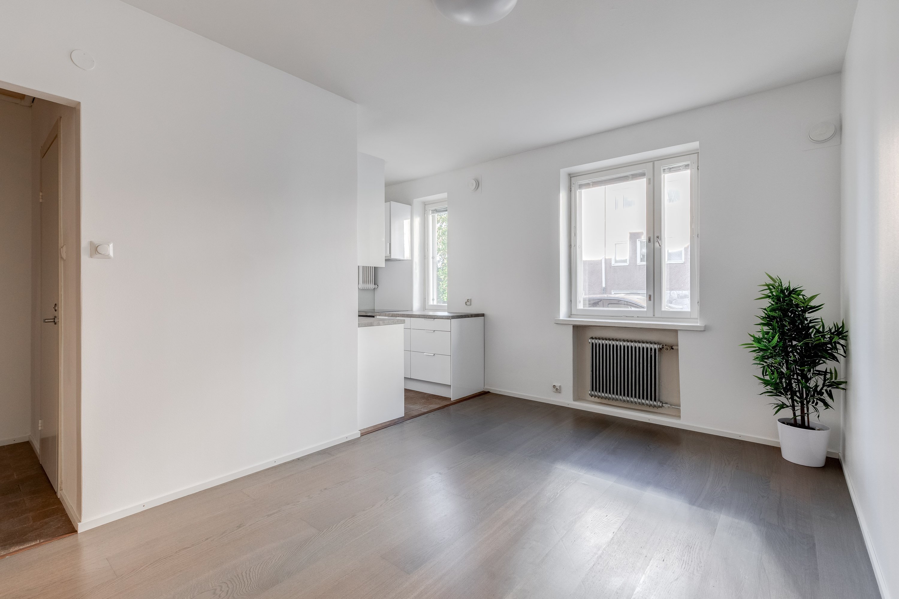 Tässä valoisassa ja todella hyväkuntoisessa kaksiossa on erittäin hienosti käytetyt neliöt. Ikkunallinen avokeittiö yhdistyy saumattomasti tilavaan olohuoneeseen ja reilun kokoiseen makuuhuoneeseen mahtuu mainiosti iso parisänky.