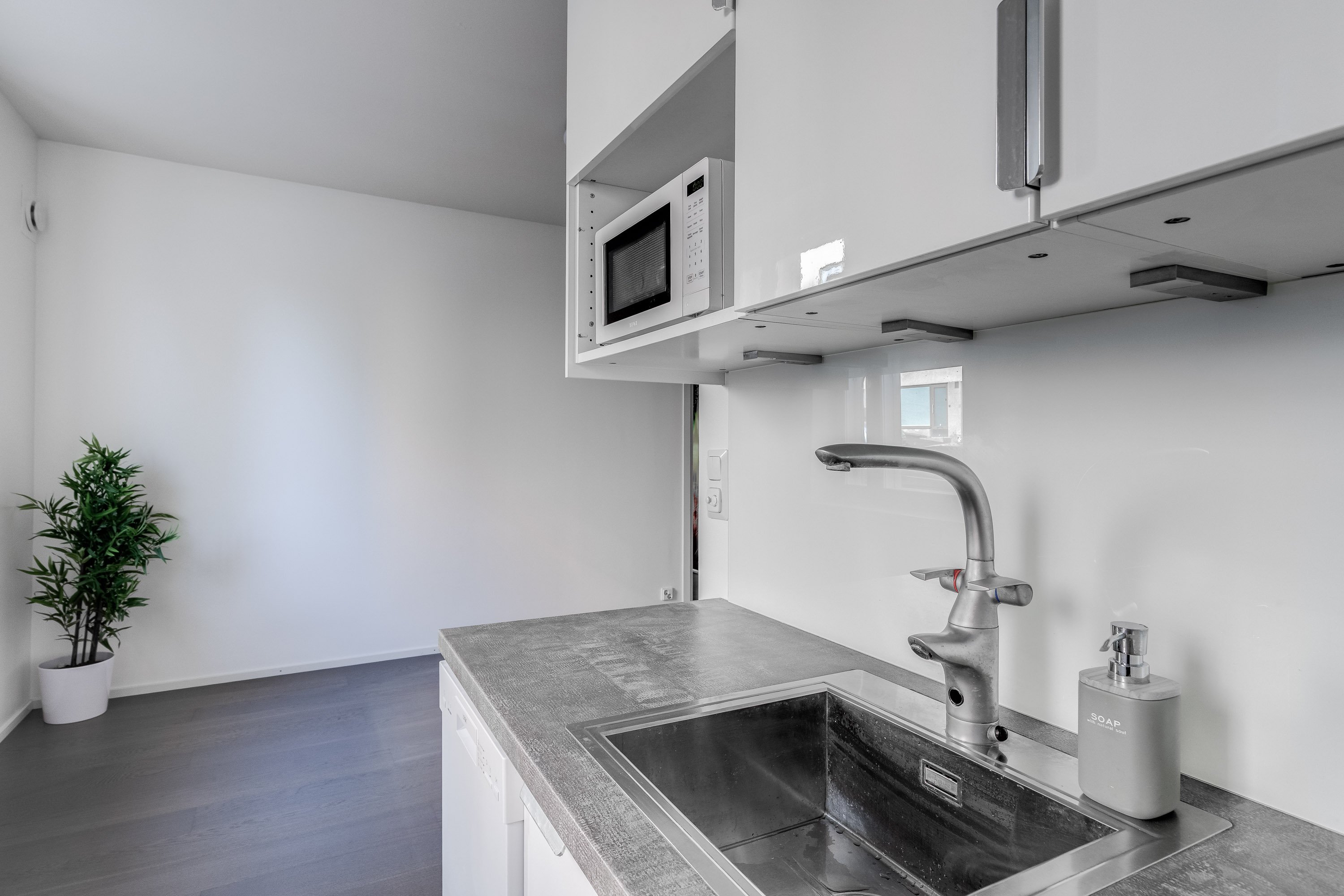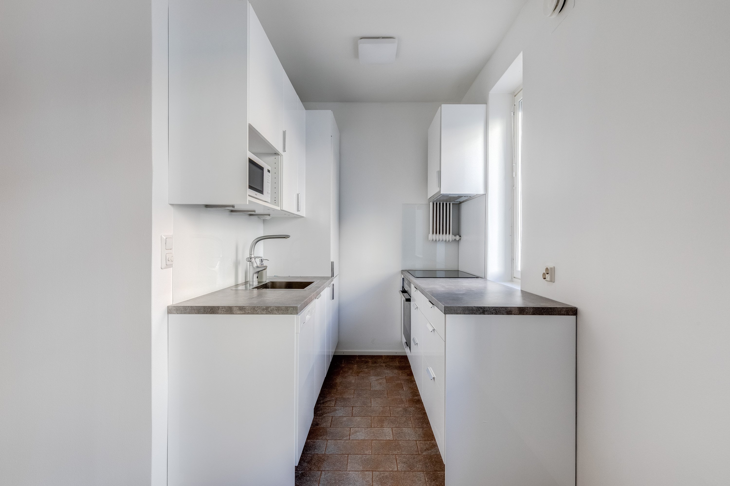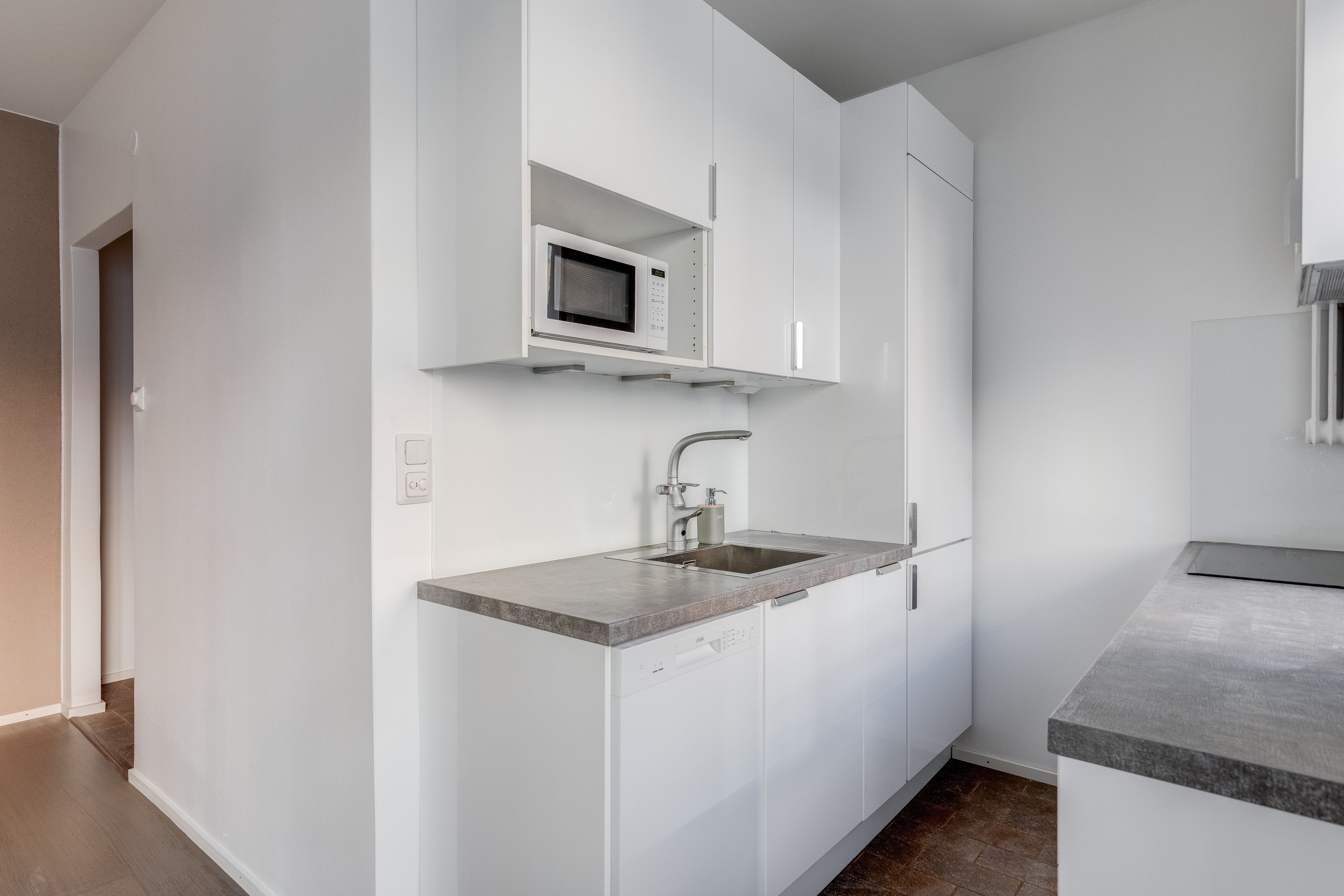 Tässä valoisassa ja todella hyväkuntoisessa kaksiossa on erittäin hienosti käytetyt neliöt. Ikkunallinen avokeittiö yhdistyy saumattomasti tilavaan olohuoneeseen ja reilun kokoiseen makuuhuoneeseen mahtuu mainiosti iso parisänky.