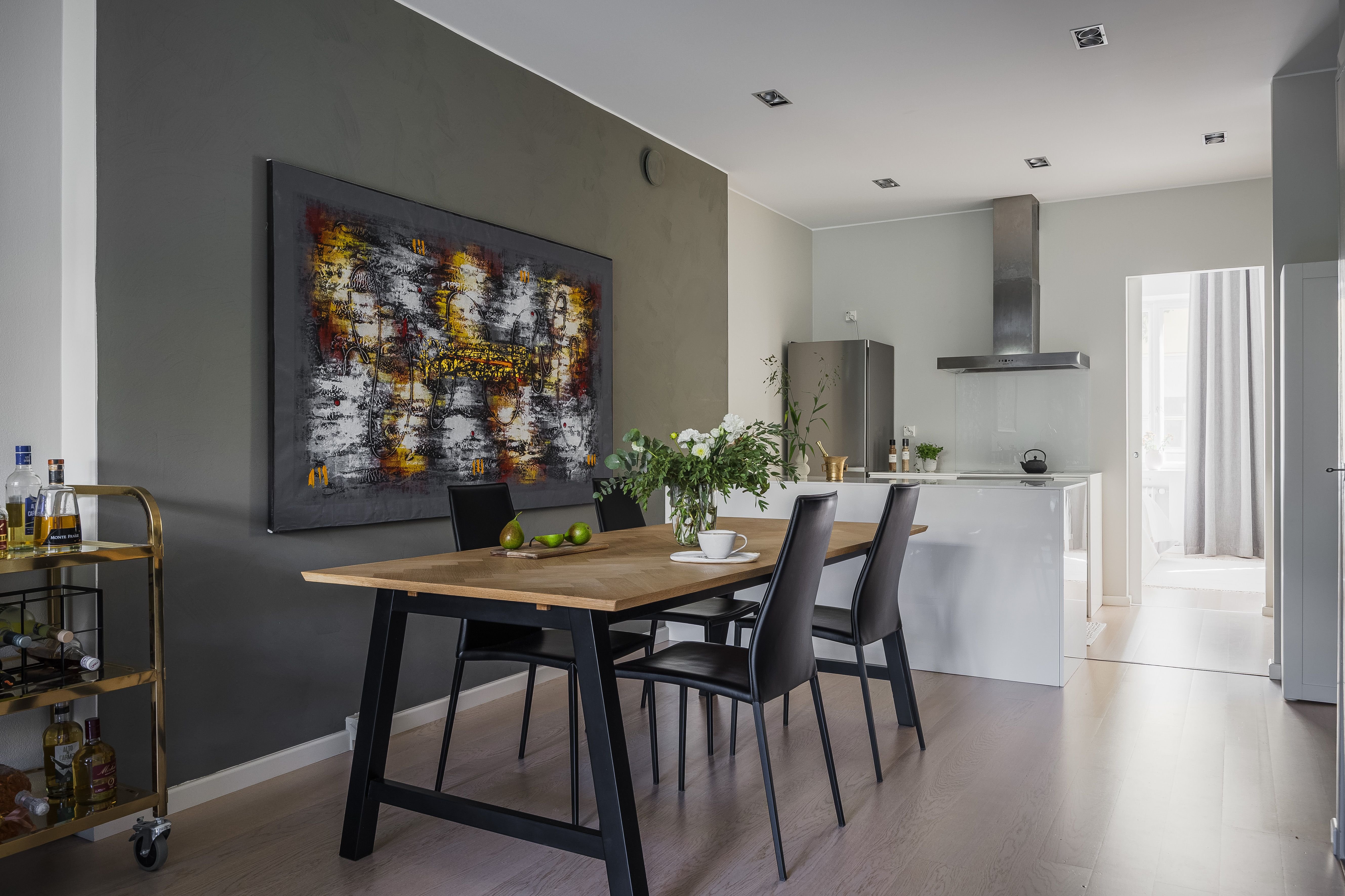 Olohuoneessa on tilaa suurelle ruokailuryhmälle, mikä tekee siitä täydellisen paikan viihtyisiin illanviettoihin perheen ja ystävien kanssa. Tilava makuuhuone sijaitsee rauhallisella sisäpihalla, tarjoten rauhallisen ympäristön lepoon ja työskentelyyn. Kylpyhuoneessa on lattialämmitys, joka tuo mukavuutta kylmiin talvipäiviin.
