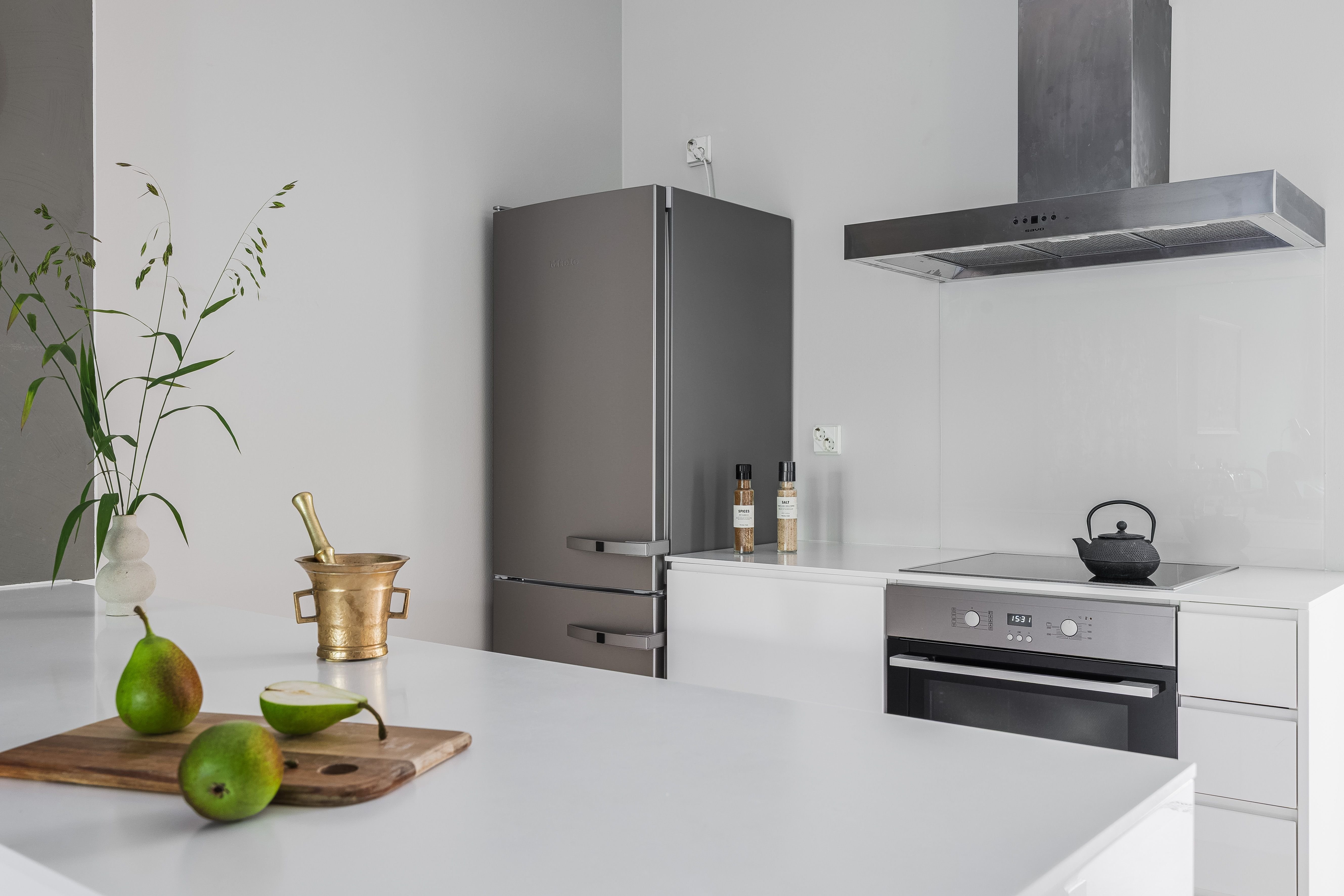 Laadukkaasti remontoidussa avokeittiössä on runsaasti työskentely- ja säilytystilaa ja se on varustettu huippuluokan kodinkoneilla.