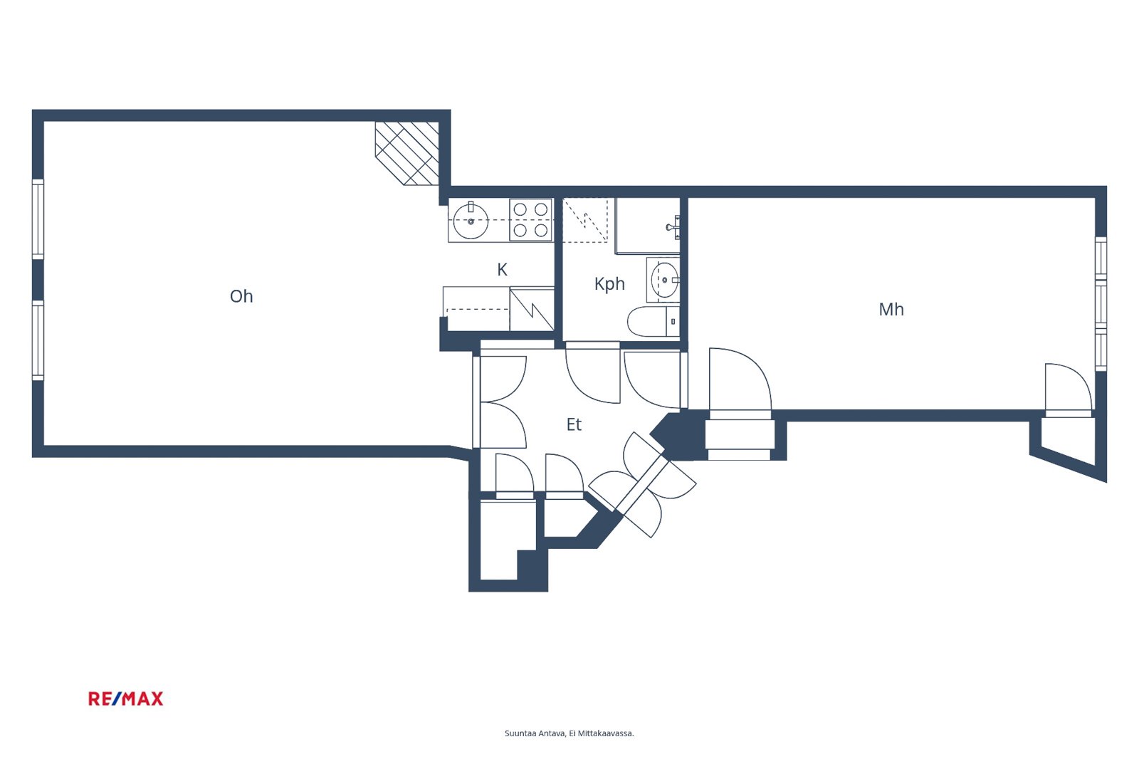 Asunnon olohuoneesta avautuvat näkymät Hämeentielle, kun taas makuuhuone tarjoaa rauhallisen näkymän sisäpihalle. Olohuoneessa on kaunis kakluuni, joka tuo lisälämpöä ja tunnelmaa tilaan. Keittokomero avautuu olohuoneeseen ja siitä saisi uudelleen suunnittelmalla ja remontoimalla helposti vielä toimivamman. Asunnossa on monen arvostamat lautalattiat.