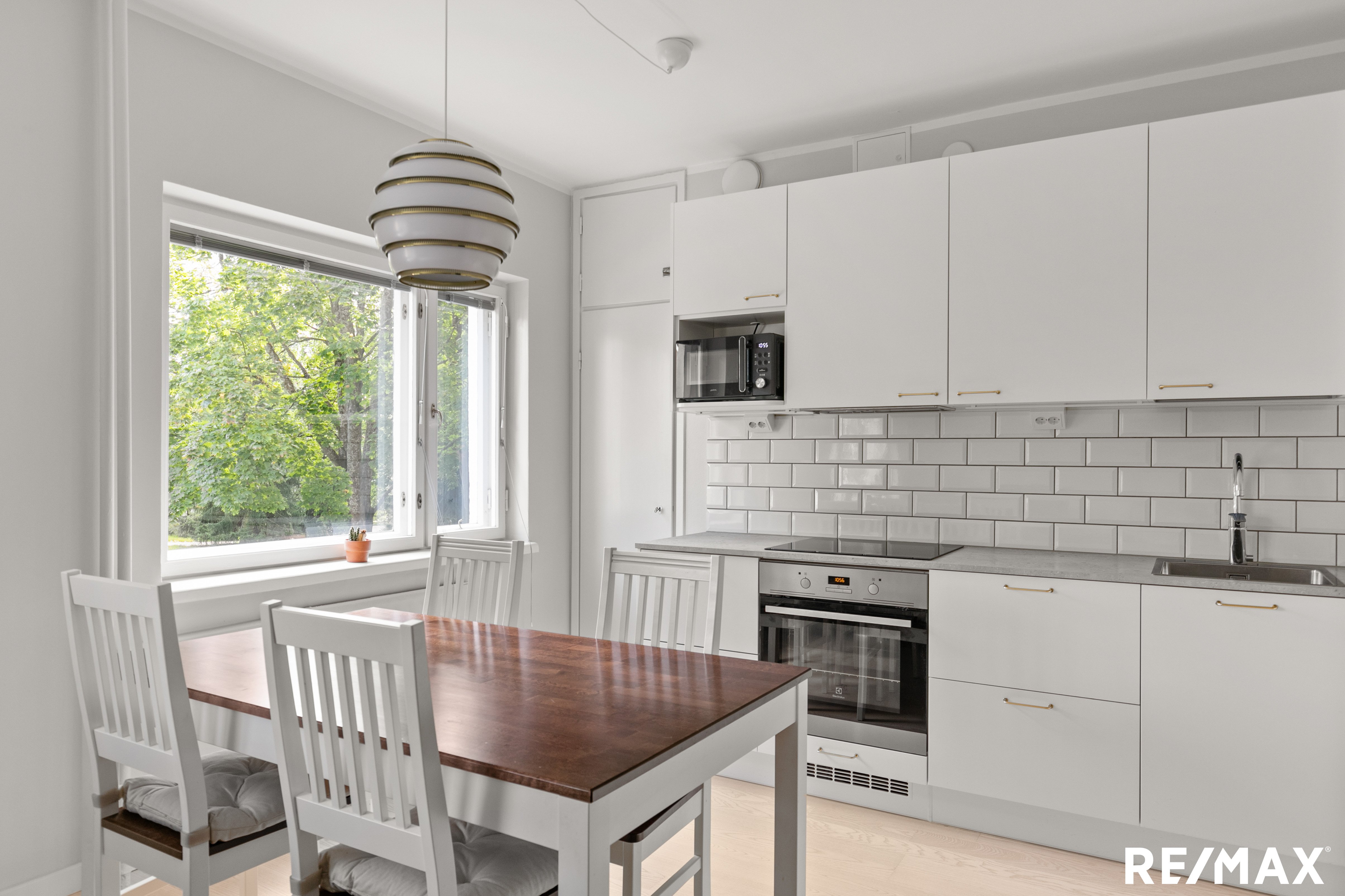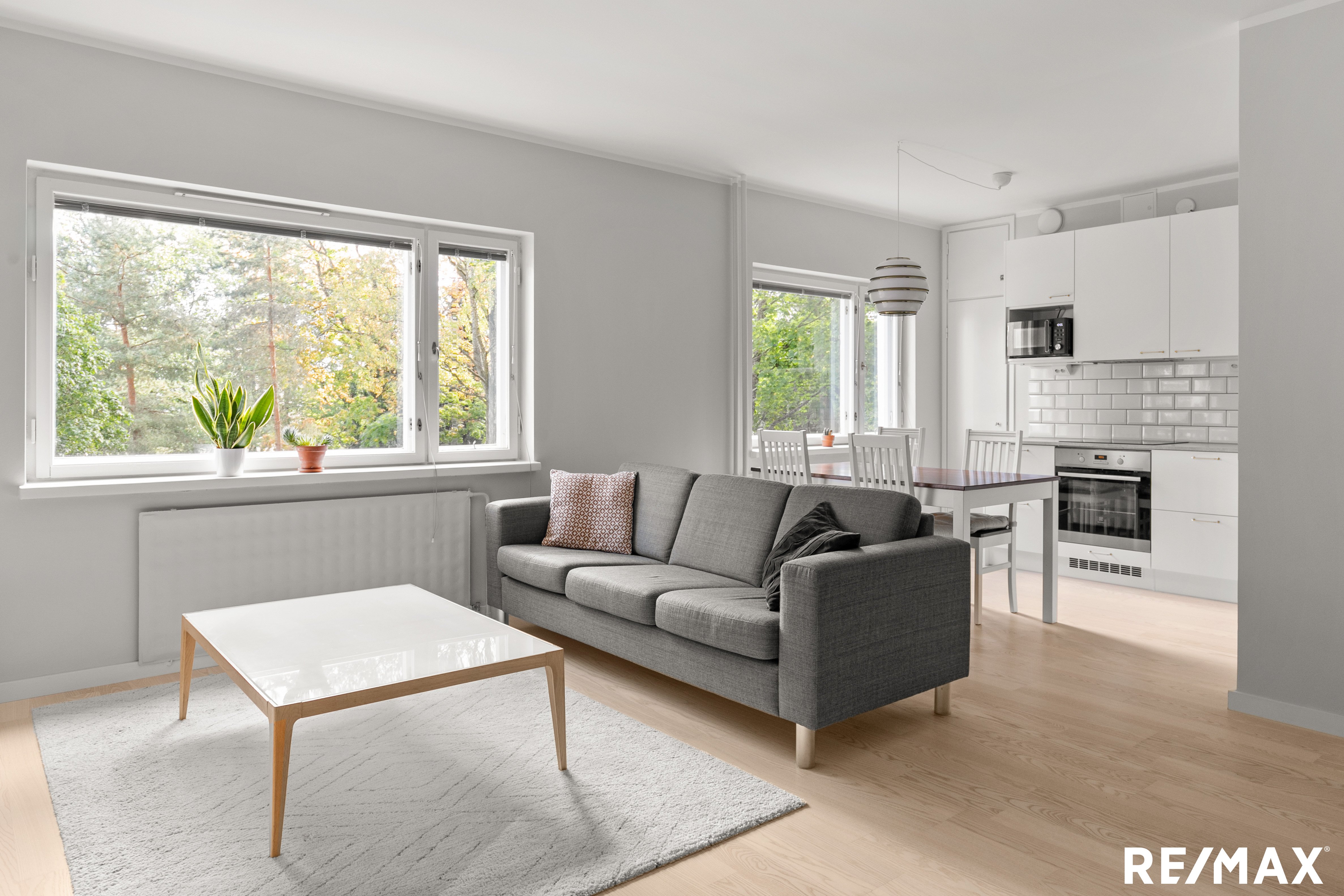 Valoisa ja avara asunto hurmaa heti ensisilmäyksellä. Suuret ikkunat tulvivat luonnonvaloa ja avautuvat vehreisiin näkymiin Violanpuistoon. Kaunis parkettilattia ja leveät ikkunapenkit viimeistelevät harmonisen ja kodikkaan kokonaisuuden. Iso, moderni ja uusittu avokeittiö tarjoaa erinomaiset puitteet ruoanlaittoon. Runsaasti kaappi- ja laskutilaa sekä laadukkaat integroidut kodinkoneet tekevät arjesta ja juhlahetkistä inspiroivia. Vaalea avokeittiö sulautuu saumattomasti olohuoneeseen ja ruokailutilaan, jossa on tilaa myös suuremmalle ruokailuryhmälle.
